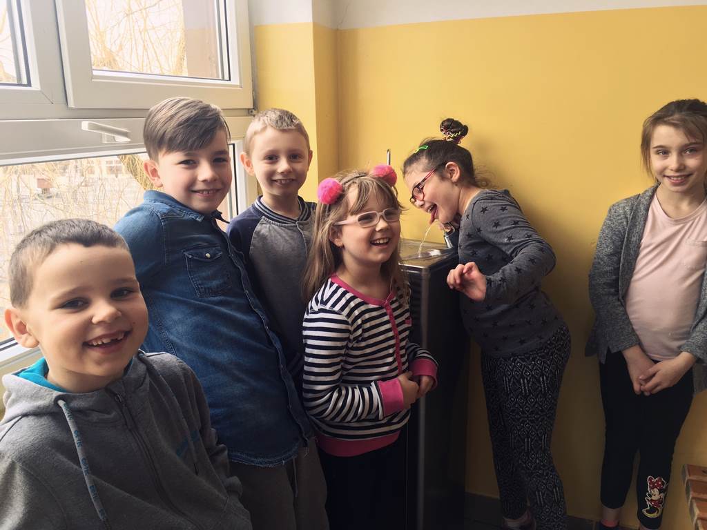 Umożliwienie bezpośredniego korzystania z wody daje wiele korzyści zdrowotnych (odpowiednie nawodnienie organizmu) oraz pomaga w kształtowaniu postaw ekologicznych (zmniejszenie zużycia plastikowych butelek). W szkole znajdują się trzy takie źródła: na parterze, I i II piętrze. Dwa z nich zostały zamontowane w czasie ferii, a trzeci w połowie marca bieżącego roku. Wodę pitną ma zapewniony każdy uczeń „Czwórki”.
