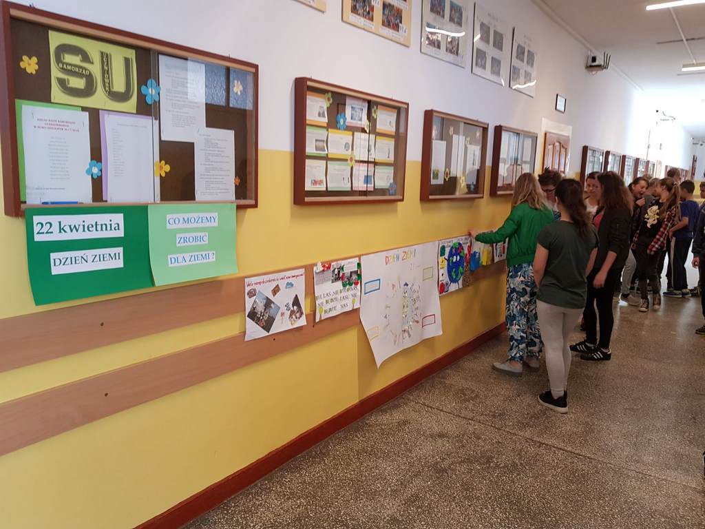 Uczniowie klasy 6d przygotowali wystawę prac poruszających kwestie ochrony naszej planety. Plakaty zostały wykonane przez uczniów klas 5 na lekcjach techniki pod bacznym okiem p. Edyty Portjanko. Już od pierwszej przerwy wzbudziły ogólne zainteresowanie, gdyż dobro Ziemi zależy od naszych działań w najbliższym otoczeniu. Zastanówmy się – Co możemy jeszcze zrobić dla Ziemi? Powodzenia i zapraszamy wszystkich, którym leży na sercu czyste środowisko.