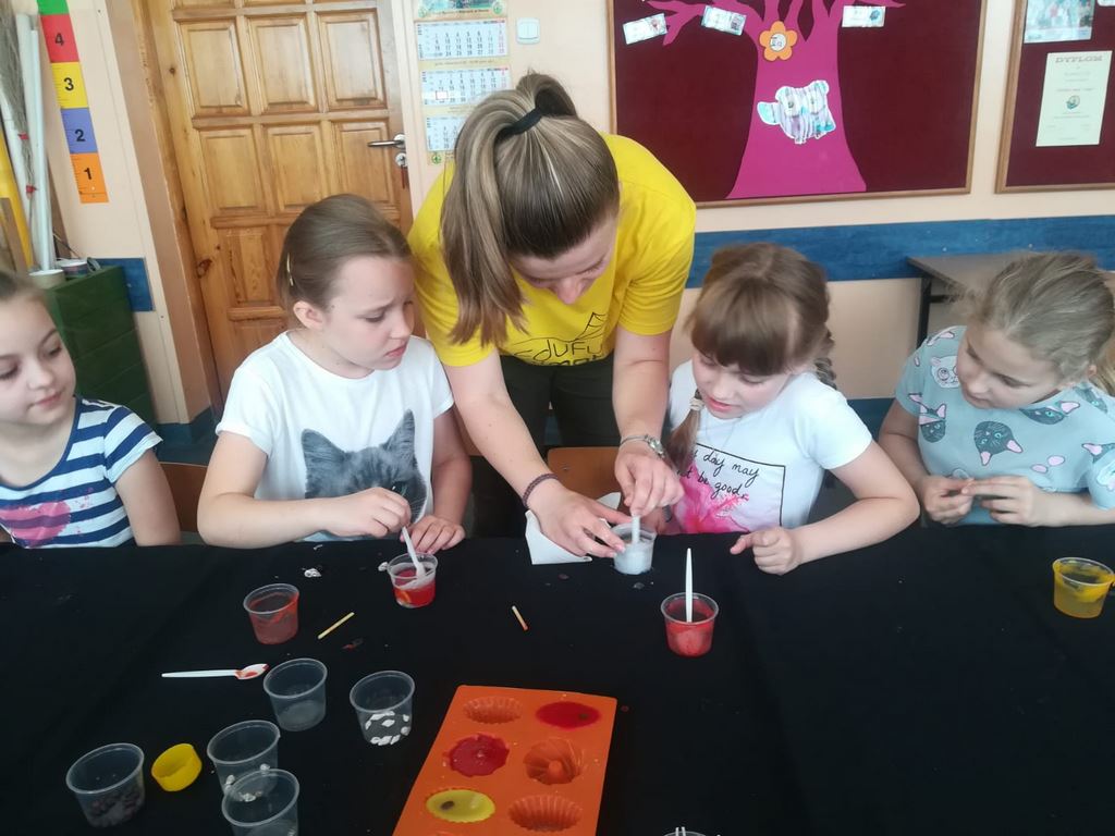 Uczniowie klas I-III oraz klasy VIb połączyli naukę i zabawę w jedną interaktywną całość. W czasie warsztatów prowadzonych przez naukowców z EduFun z Gdyni własnoręcznie wykonali świeczki oraz hologramy w 3D. Ten wyjątkowy dzień dzieci z pewnością zapamiętają na długo.