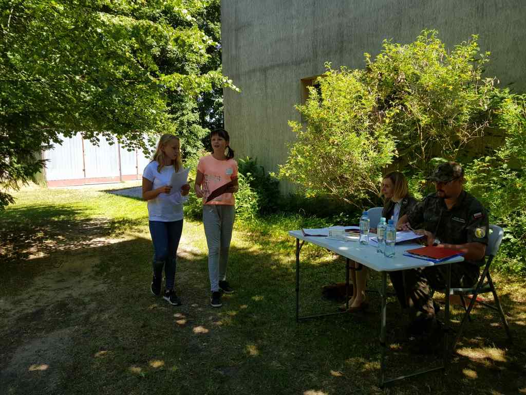 Sprawnie odpowiadały na trudne pytania dotyczące życia i zajmowanych siedlisk przez 20 przedstawicieli ptaków szponiastych jak: orły, orliki, myszołowy, trzmielojady, pustułki, gadożery i inne. Elementem dodatkowym był bieg terenowy wokół siedziby parku i w ogrodzie dydaktycznym, gdzie należało odpowiedzieć na pytania, aby pasowały do krzyżówki z rozwiązaniem – „grubodzioby”. W oczekiwaniu na wyniki wszyscy uczestnicy spotkali się przy ognisku. Wróciłyśmy pełne nowych doświadczeń i wrażeń ze wspaniałymi nagrodami .