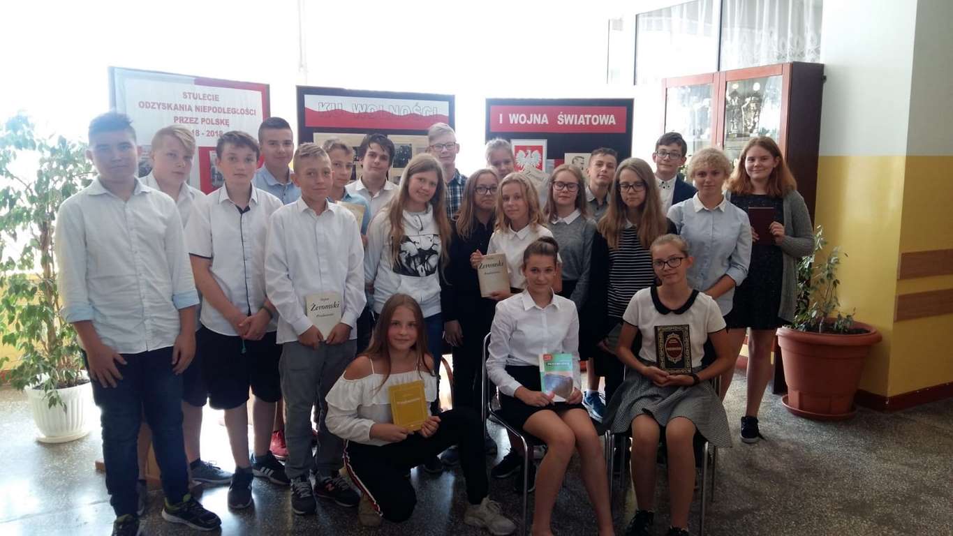 7 września br., czyli w przededniu ogólnopolskiej akcji „Narodowe Czytanie”, uczniowie klas: 7a, 7b oraz 8c zapoznali swoich kolegów i koleżanki z fragmentami powieści Stefana Żeromskiego „Przedwiośnie”. Niezwykłe spotkanie z lekturą poprzedziły działania mające na celu przybliżenie wychowankom SP4 sylwetki i twórczości prozaika. Chętni chłopcy i dziewczęta przygotowali prezentacje multimedialne, opracowali referaty i podzielili się swoją wiedzą z rówieśnikami, a następnie dla uwiecznienia wydarzenia opatrzyli swoje egzemplarze dzieła pamiątkową pieczęcią nadesłaną w tym celu z Kancelarii Prezydenta RP.