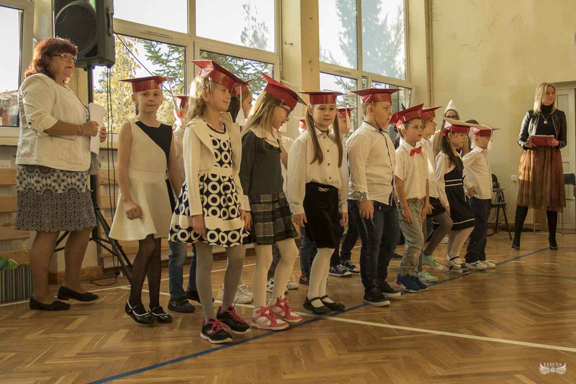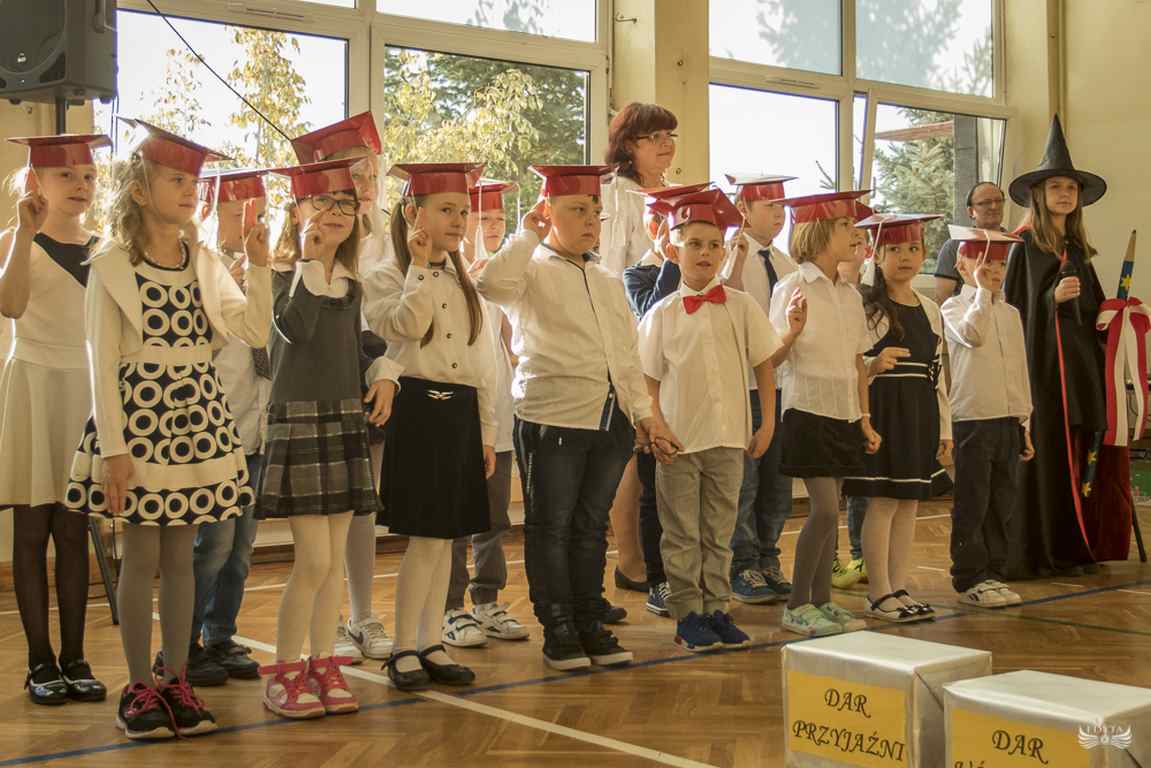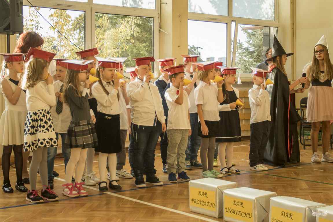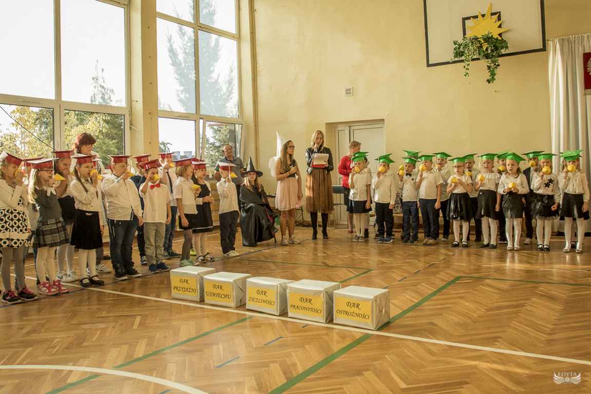 12 października 2018 r. odbyła się w naszej szkole uroczystość ślubowania i pasowania na ucznia pierwszej klasy. Dzieci, aby dostąpić tego zaszczytu musiały odbyć daleką podróż, przez różne krainy i wykazać się wieloma umiejętnościami. Uczniom towarzyszyła Dobra Wróżka, której udało się zapobiec złym czarom Czarnej Wróżki. Dzięki temu dzieci mogły zrzucić żółte dzioby i szczęśliwie dotrzeć do celu, gdzie bez przeszkód złożyły ślubowanie na ucznia pierwszej klasy.
