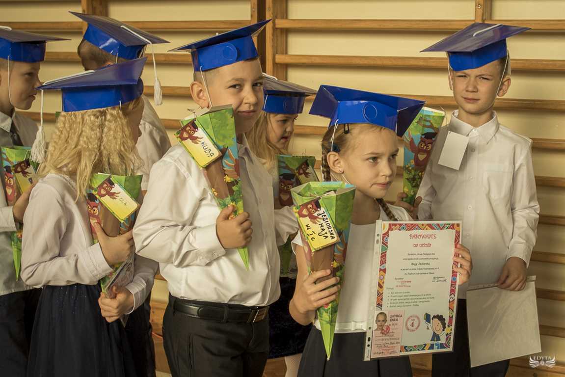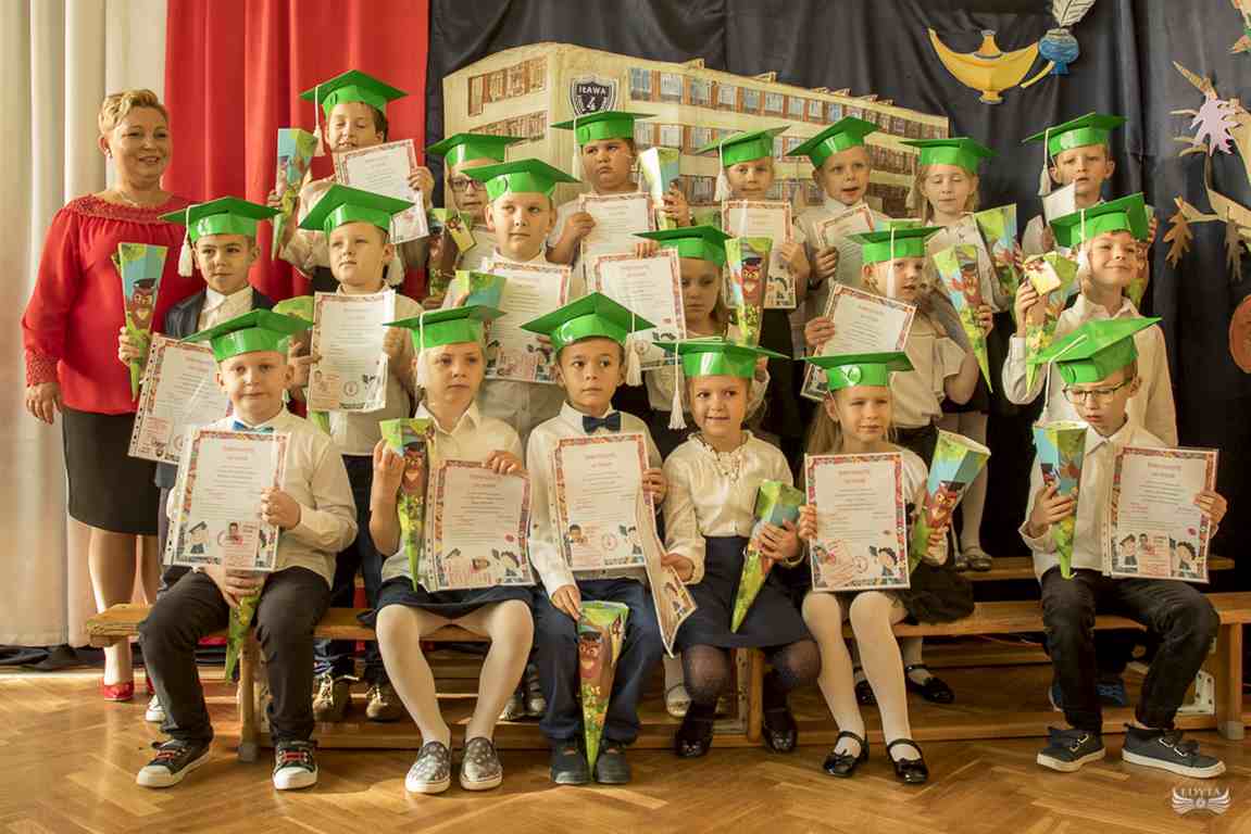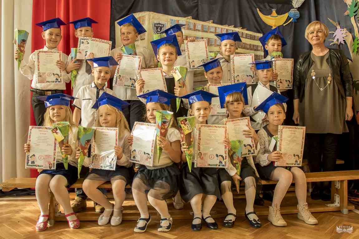 Następnie pani dyrektor odebrała z rąk Czarnej Wróżki zaczarowany ołówek, którym pasowała każde dziecko na ucznia Szkoły Podstawowej nr 4 im. Polskich Podróżników w Iławie. Wychowawczynie nowym uczniom wręczyły szkolne legitymacje, pamiątkowe dyplomy oraz piękne rożki ze słodyczami. Licznie zgromadzeni rodzice mieli okazję zrobić pierwsze klasowe zdjęcie swojego dziecka. Mamy nadzieję, że te niezapomniane chwile na zawsze pozostaną w pamięci pierwszoklasistów.