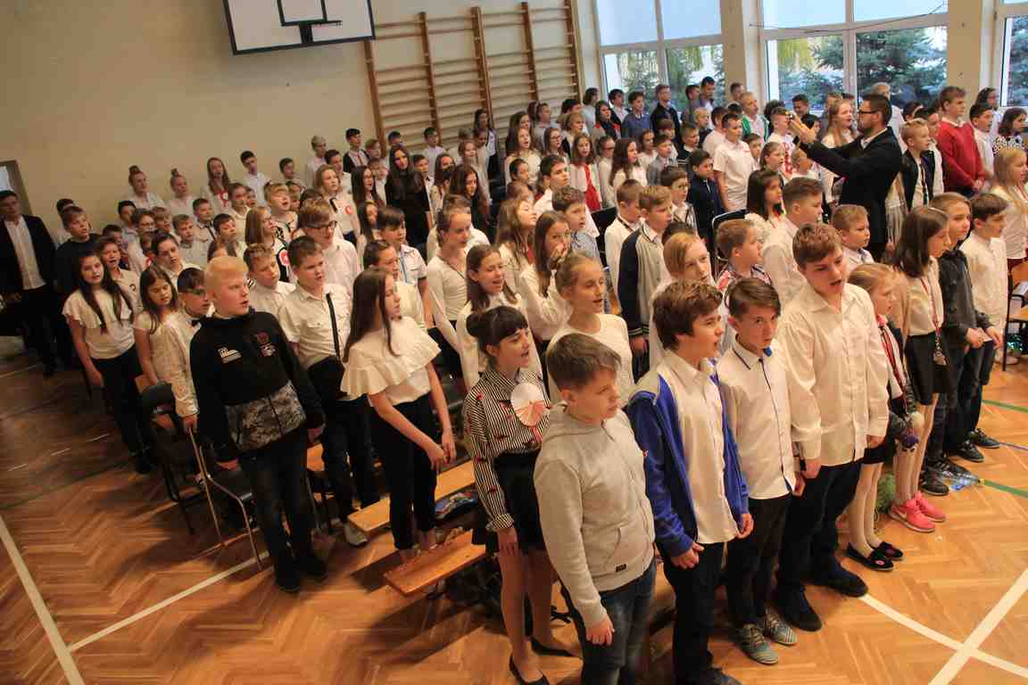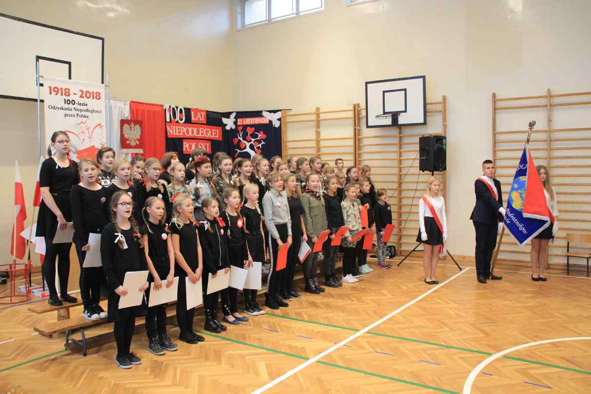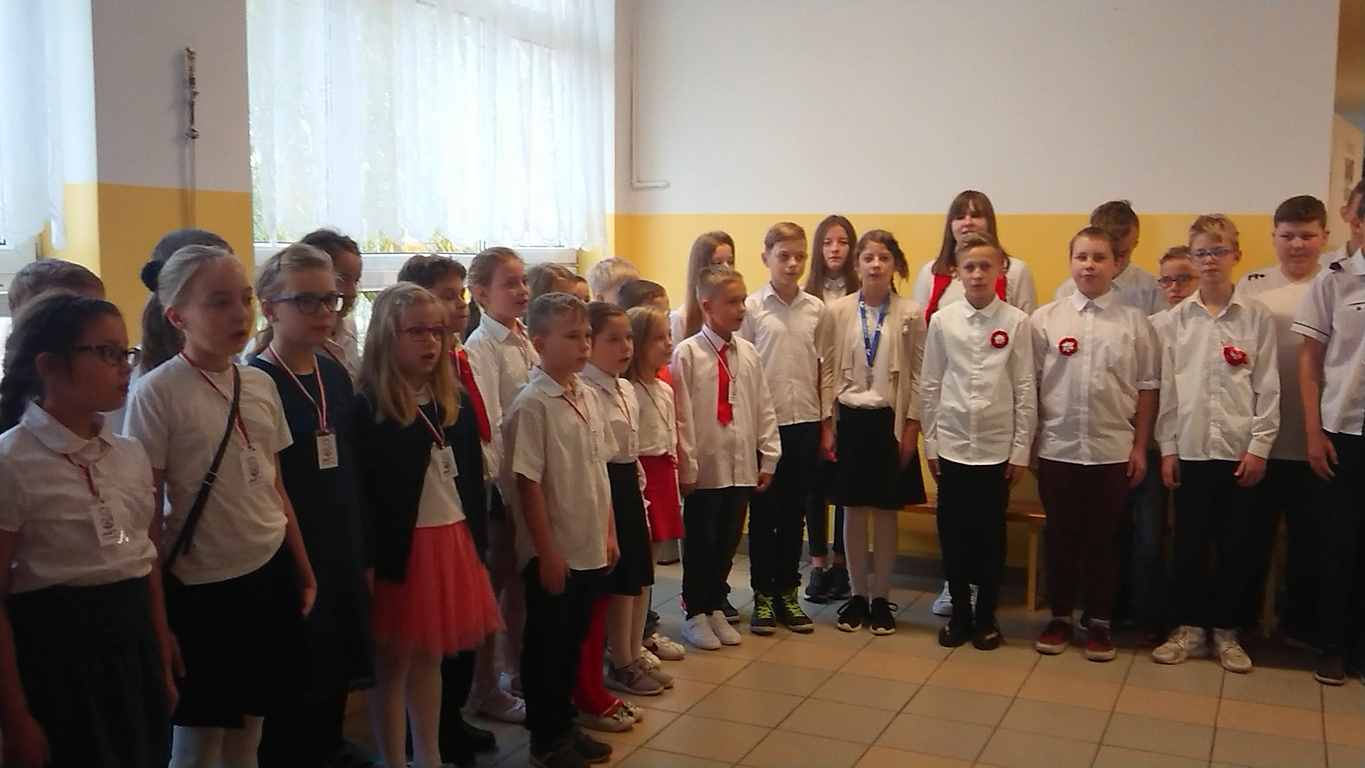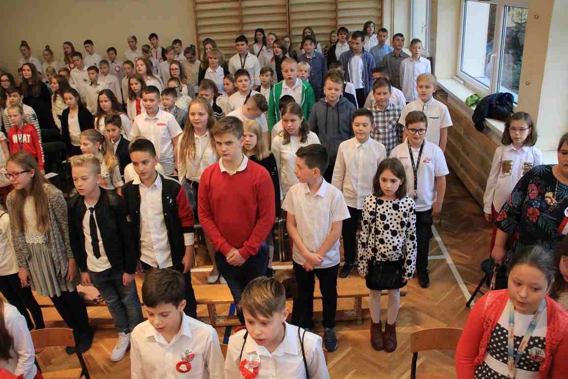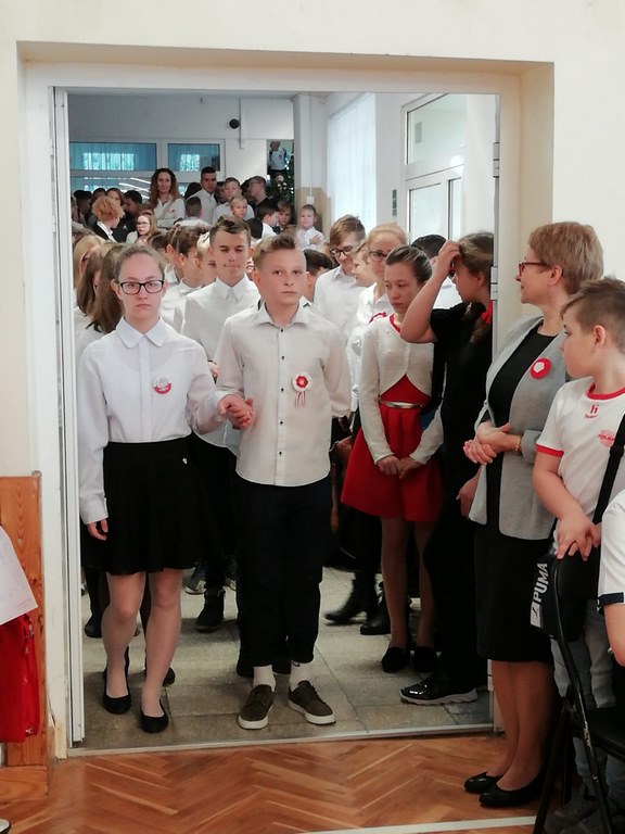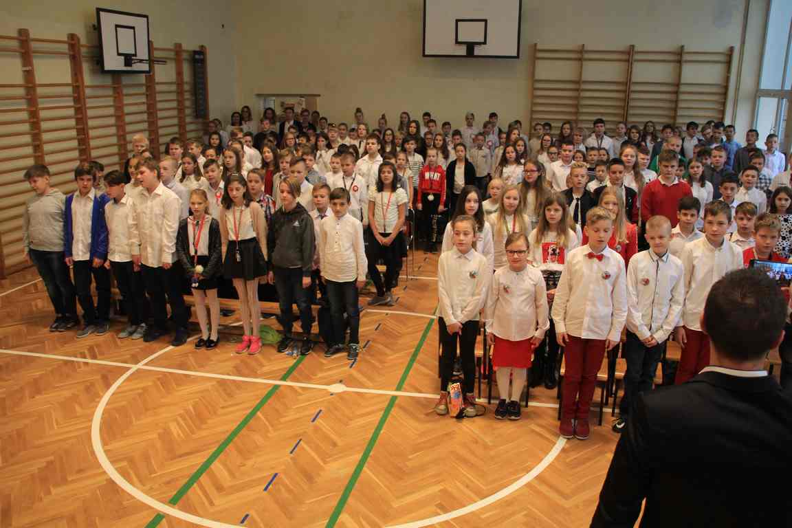 Kolejnym punktem szkolnych uroczystości było wspólne odśpiewanie hymnu. W ramach inicjatywy MEN uczniowie oraz wszyscy pracownicy szkoły zgromadzili się na szkolnych korytarzach, by punktualnie o 11.11 z dumą i powagą na twarzach oraz radością w sercach uczcić najważniejsze święto państwowe czterema zwrotkami „Mazurka Dąbrowskiego”.