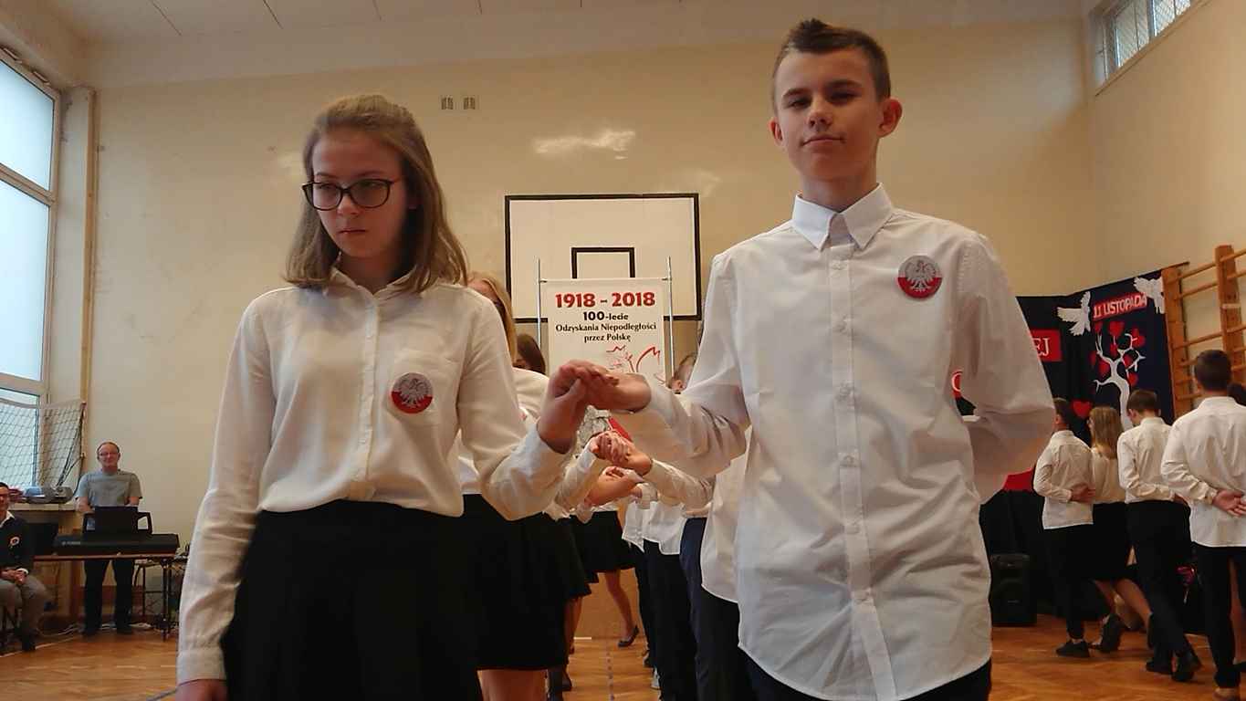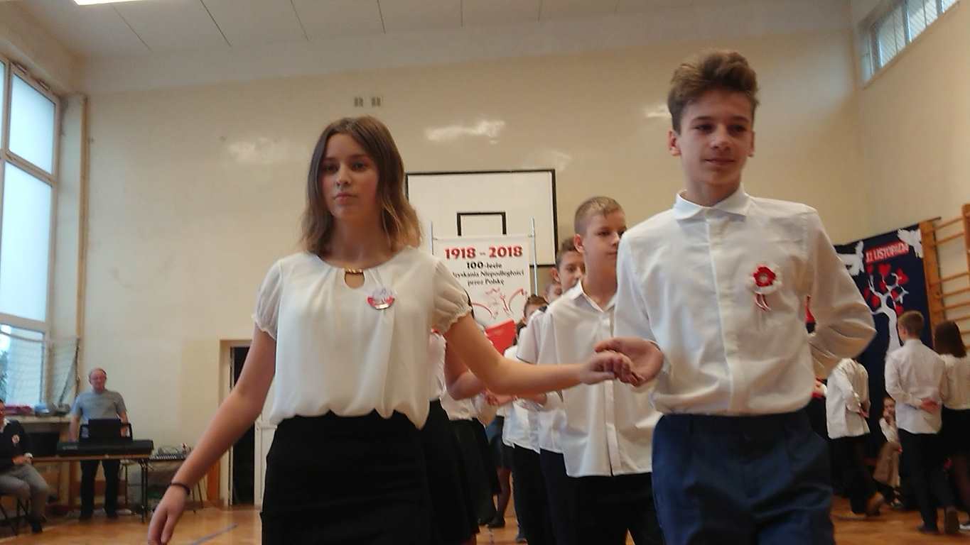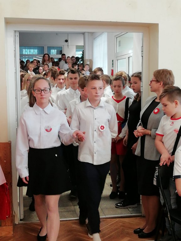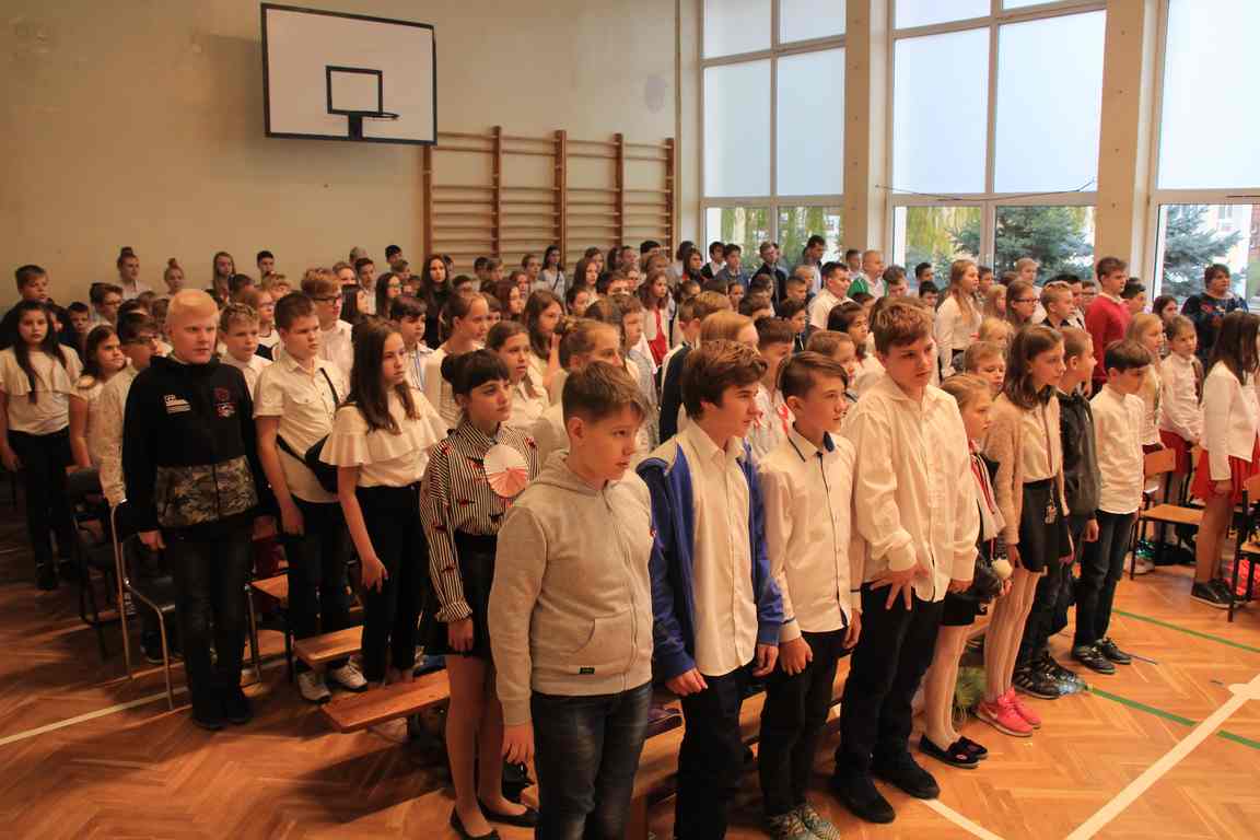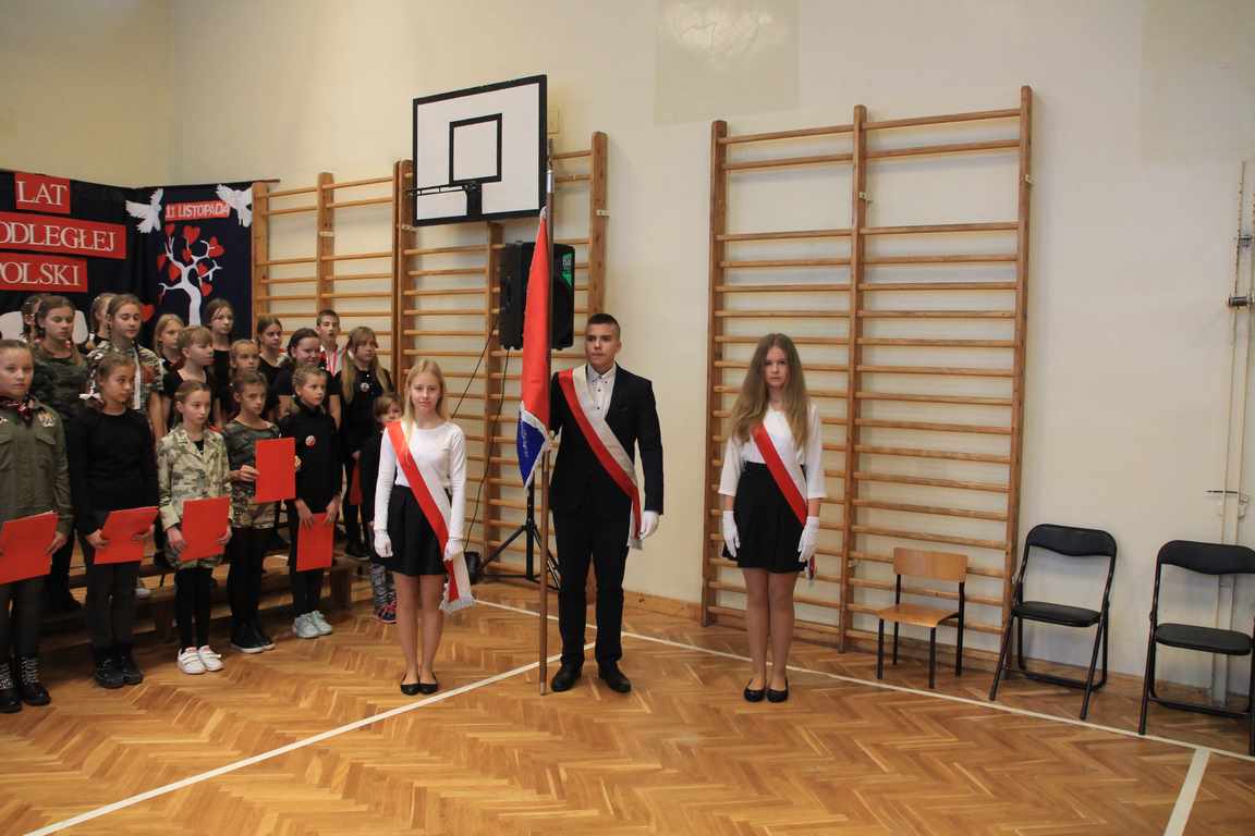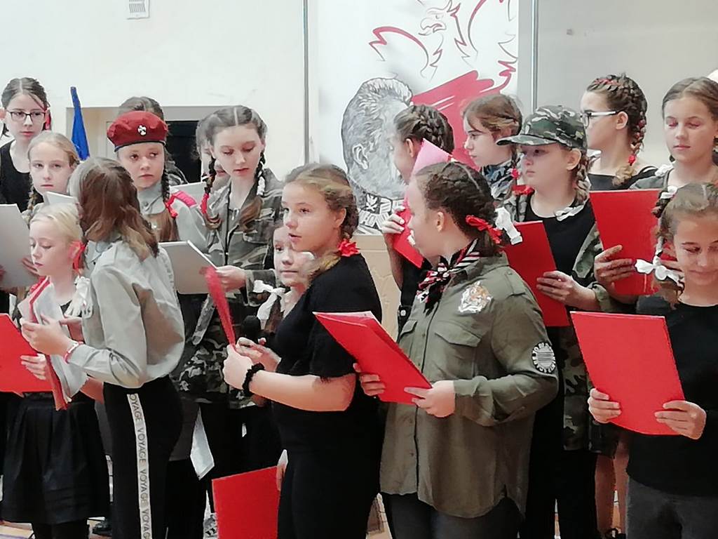 Kolejnym punktem szkolnych uroczystości było wspólne odśpiewanie hymnu. W ramach inicjatywy MEN uczniowie oraz wszyscy pracownicy szkoły zgromadzili się na szkolnych korytarzach, by punktualnie o 11.11 z dumą i powagą na twarzach oraz radością w sercach uczcić najważniejsze święto państwowe czterema zwrotkami „Mazurka Dąbrowskiego”.