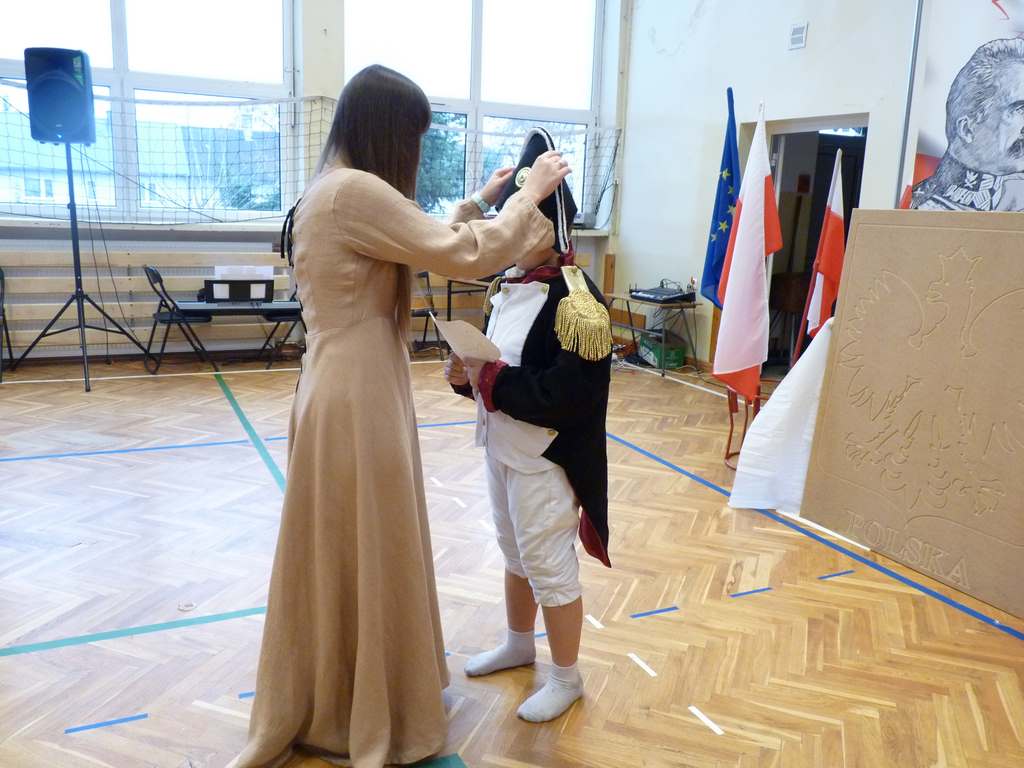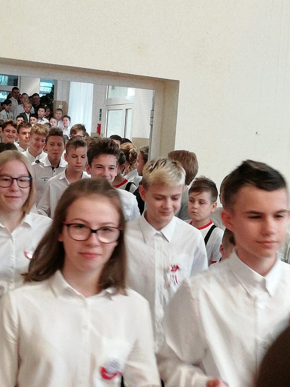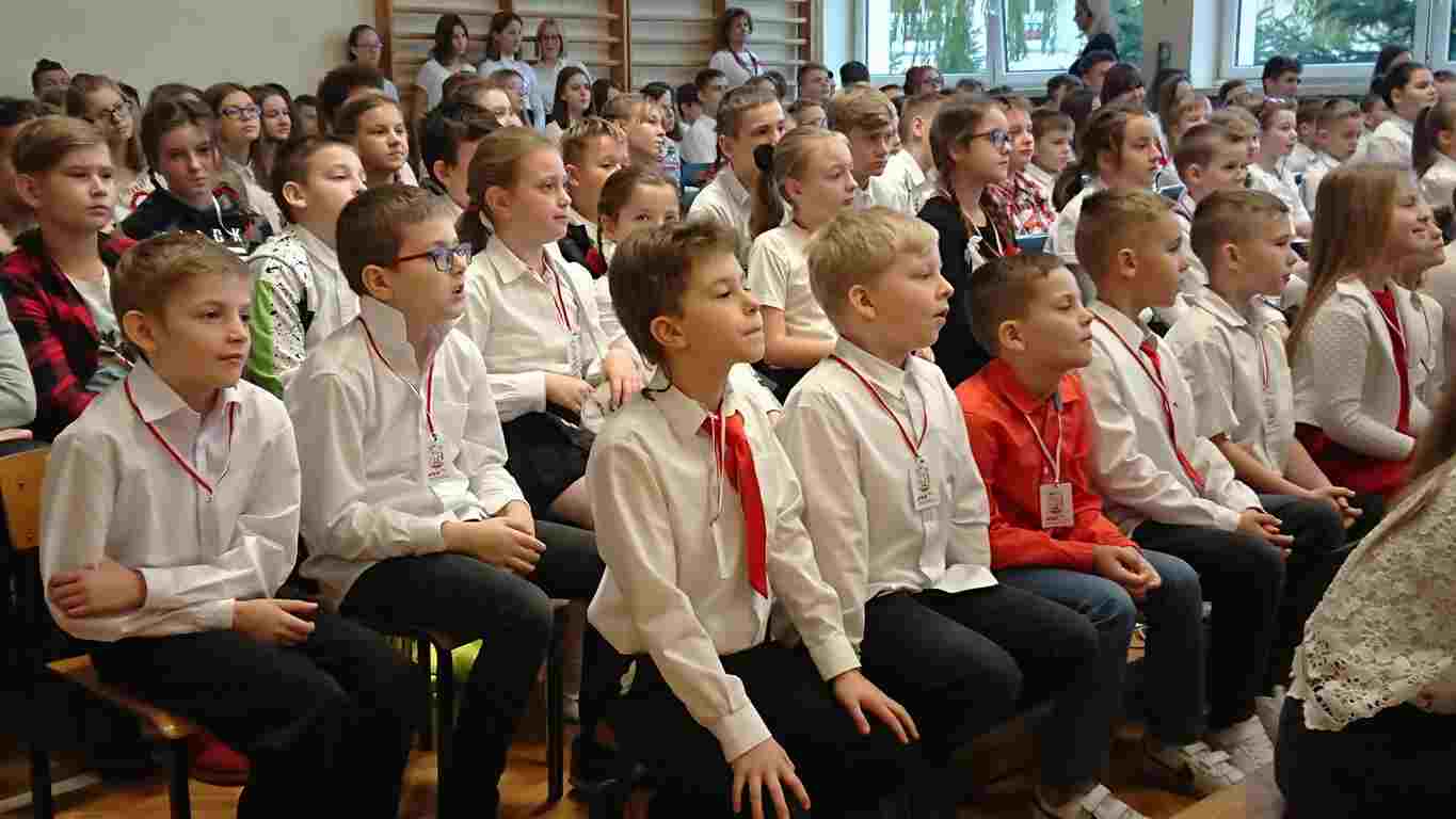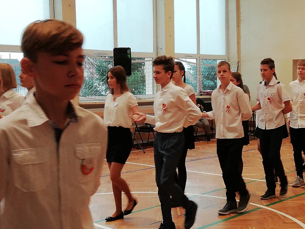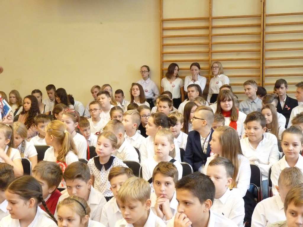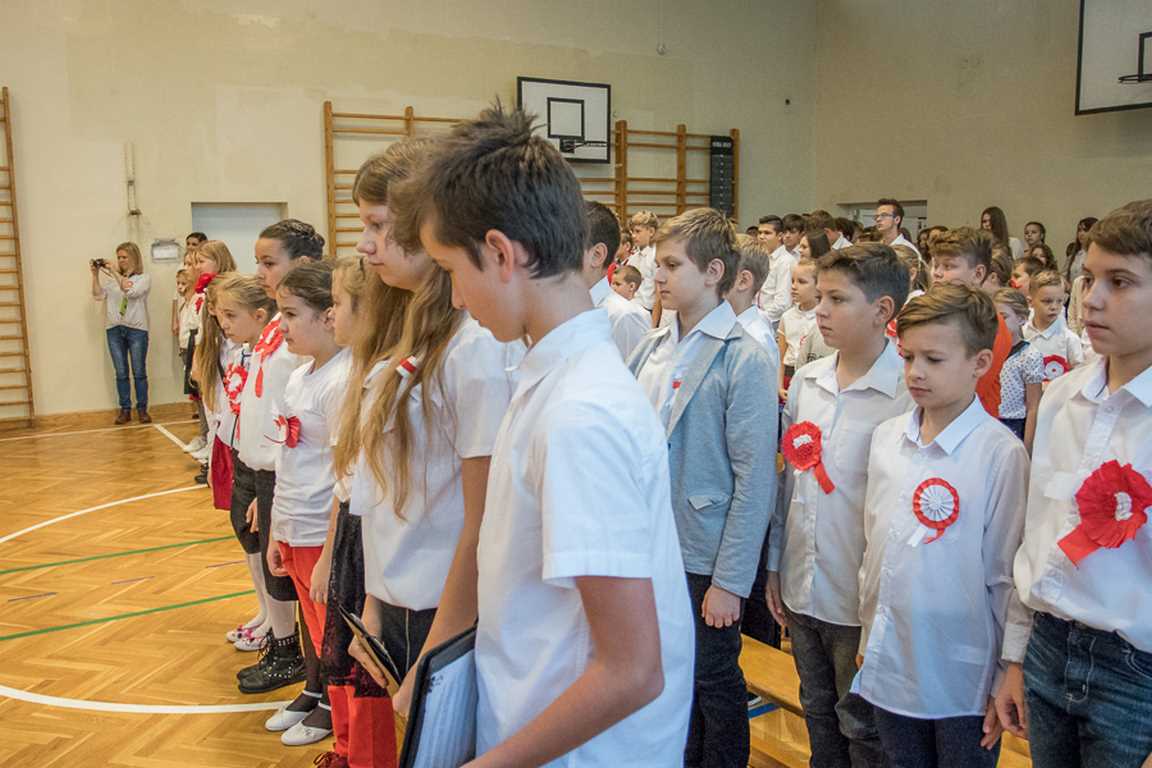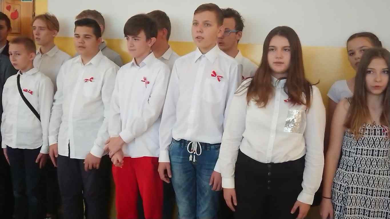 Kolejnym punktem szkolnych uroczystości było wspólne odśpiewanie hymnu. W ramach inicjatywy MEN uczniowie oraz wszyscy pracownicy szkoły zgromadzili się na szkolnych korytarzach, by punktualnie o 11.11 z dumą i powagą na twarzach oraz radością w sercach uczcić najważniejsze święto państwowe czterema zwrotkami „Mazurka Dąbrowskiego”.