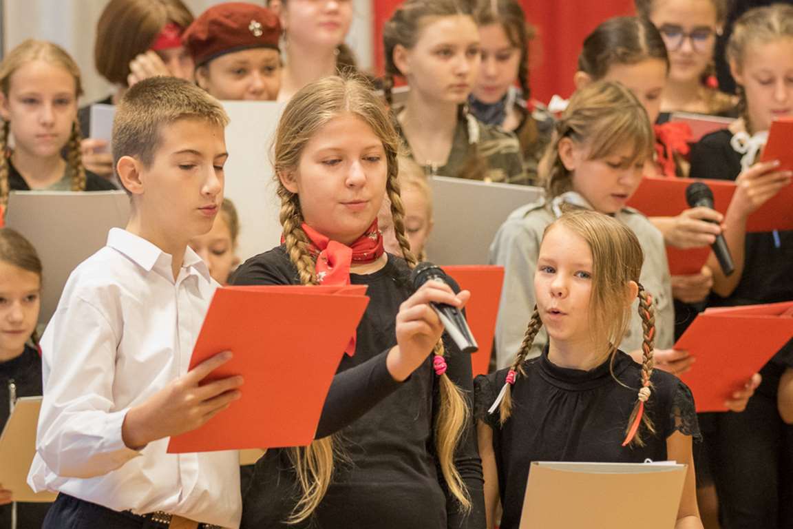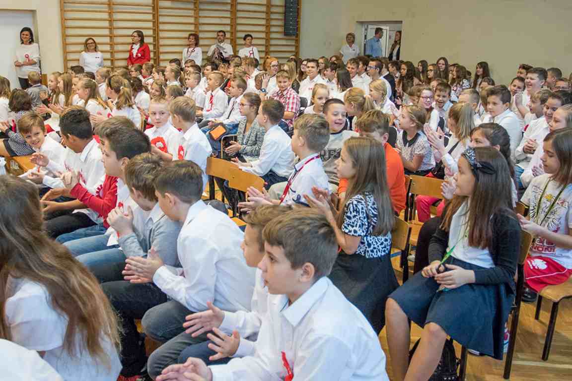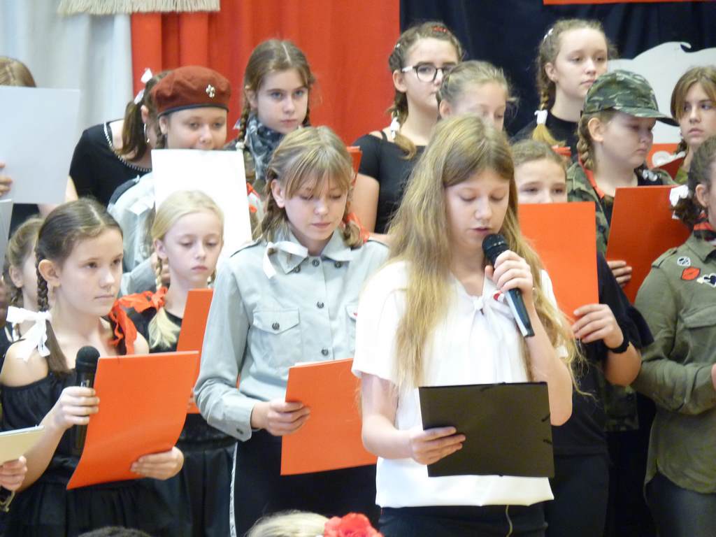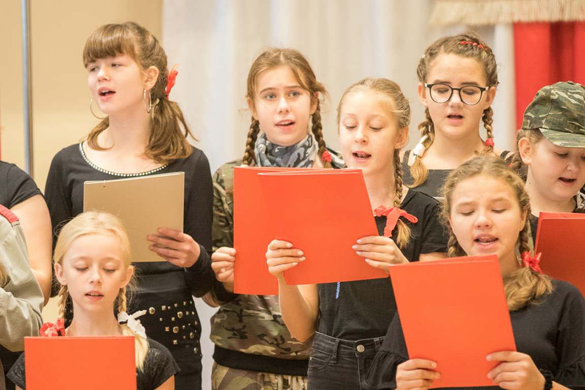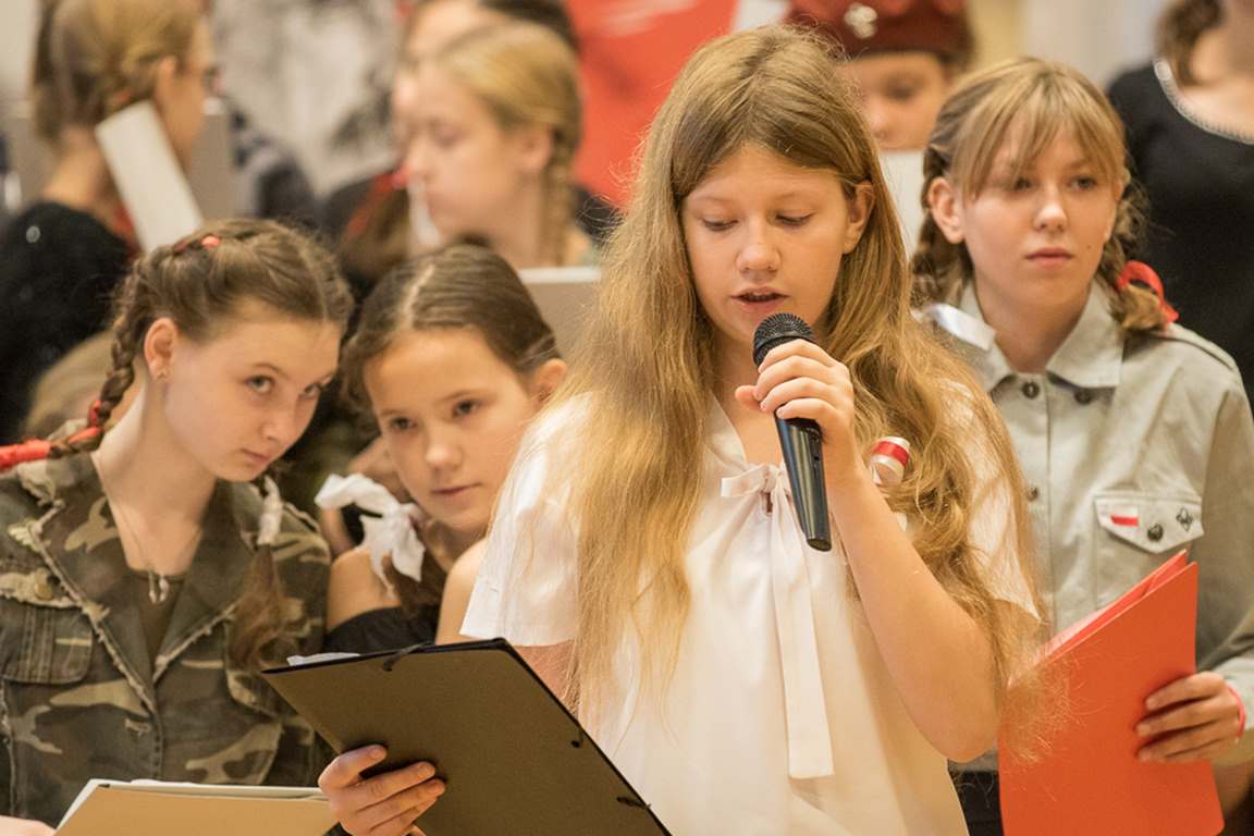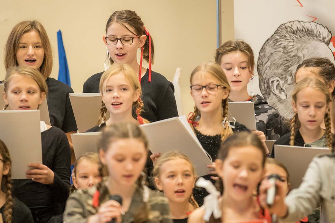 Kolejnym punktem szkolnych uroczystości było wspólne odśpiewanie hymnu. W ramach inicjatywy MEN uczniowie oraz wszyscy pracownicy szkoły zgromadzili się na szkolnych korytarzach, by punktualnie o 11.11 z dumą i powagą na twarzach oraz radością w sercach uczcić najważniejsze święto państwowe czterema zwrotkami „Mazurka Dąbrowskiego”.
