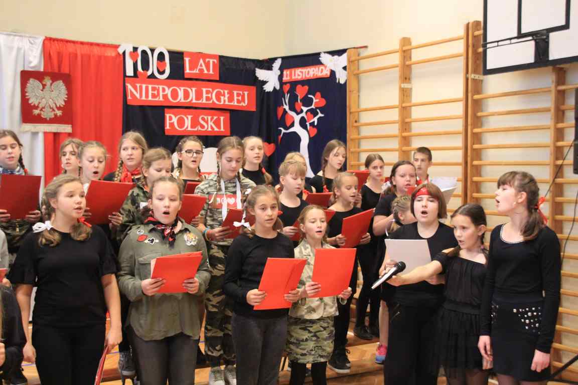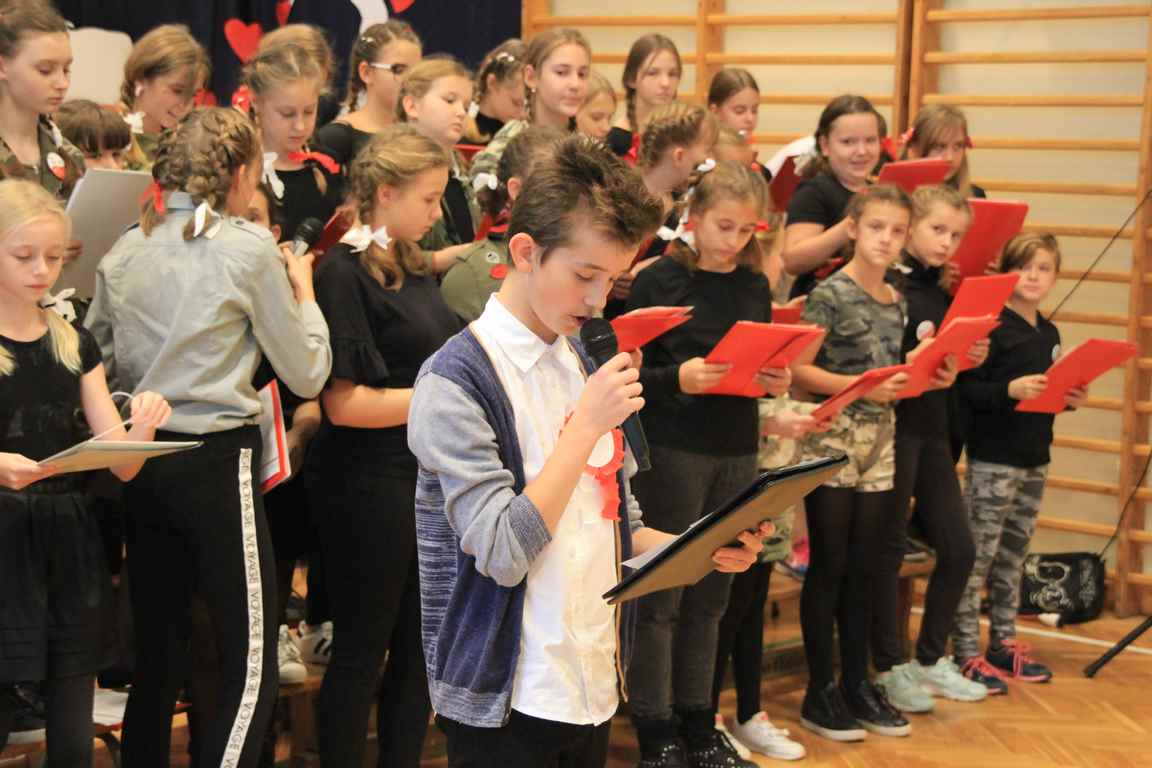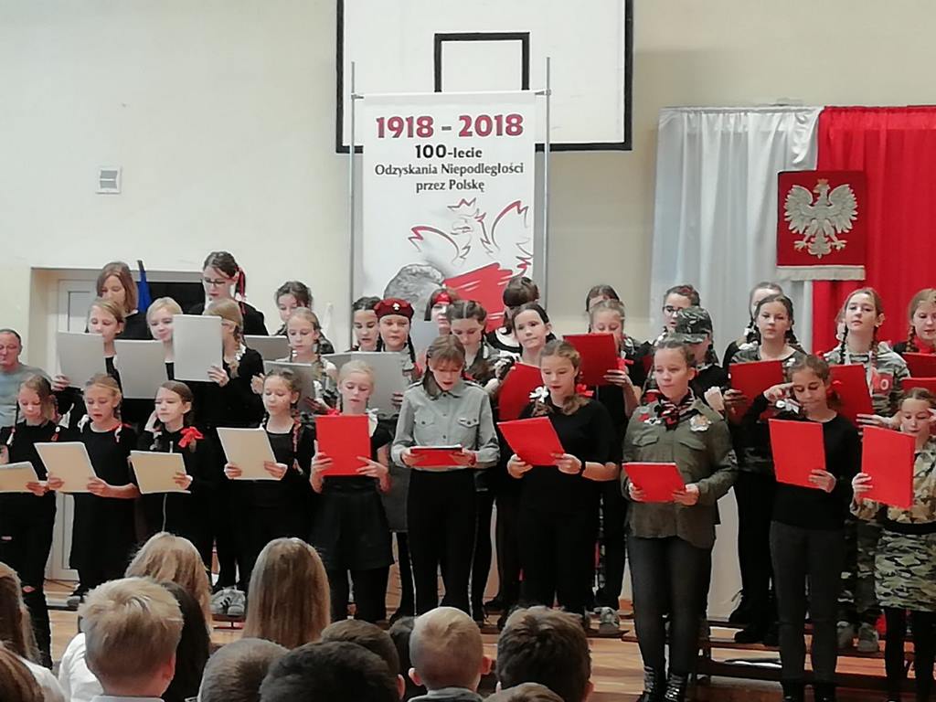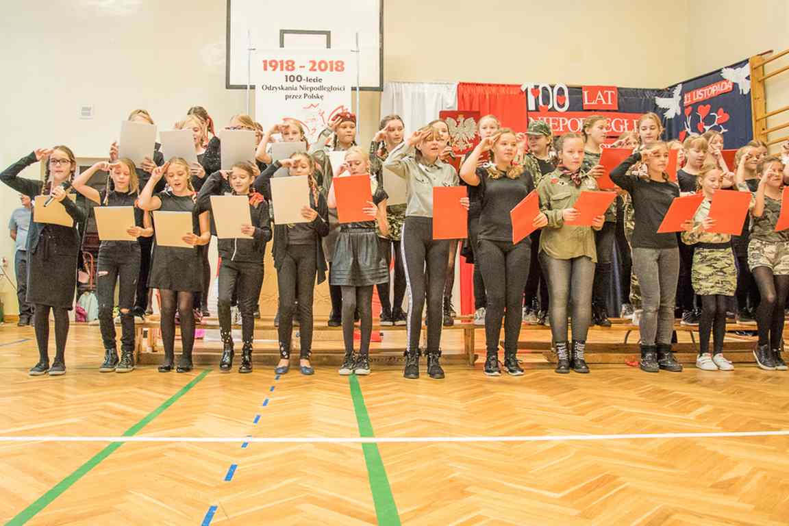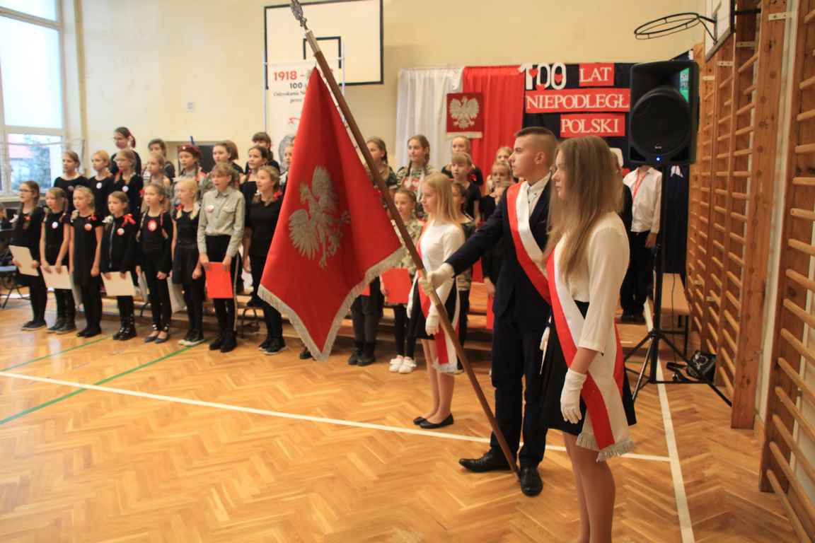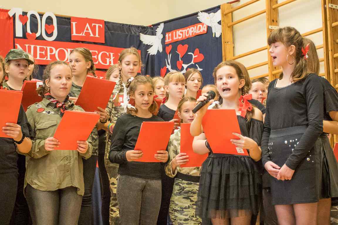 Uwieńczeniem obchodów był koncert „Dla Niepodległej”, podczas którego chór i zespół instrumentalny pod kierunkiem pani Marii Nawrott wykonał sztandarowe pieśni i piosenki patriotyczne, w tym średniowieczne hymny Polski: ”Gaude Mater Polonia” i „Bogurodzicę”. W podniosły nastrój zebranych wprowadzili konferansjerzy i recytatorzy z klasy VIIa. Publiczność zgromadzona na koncercie z wielkim wzruszeniem i zaangażowaniem wtórowała młodym śpiewakom.