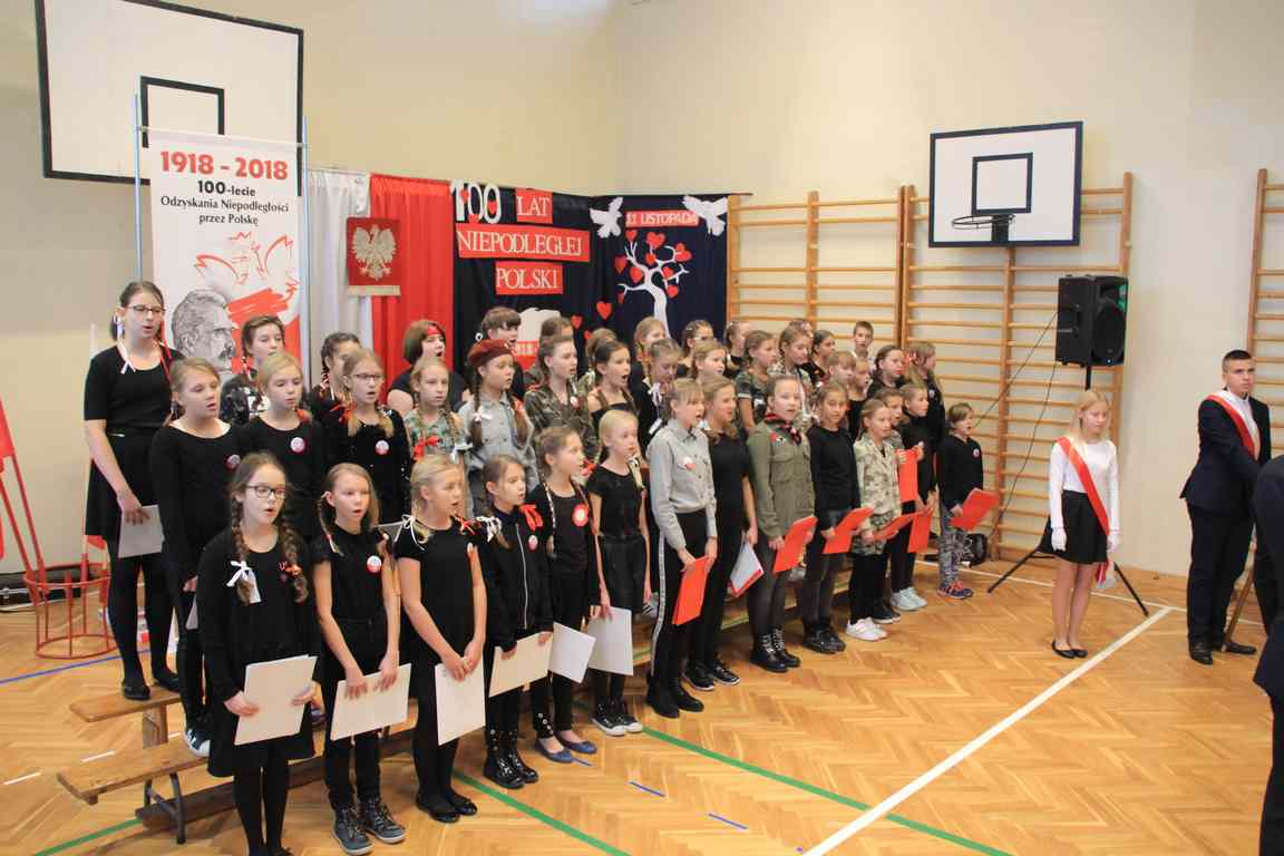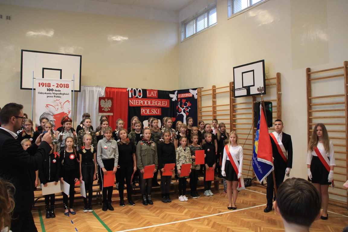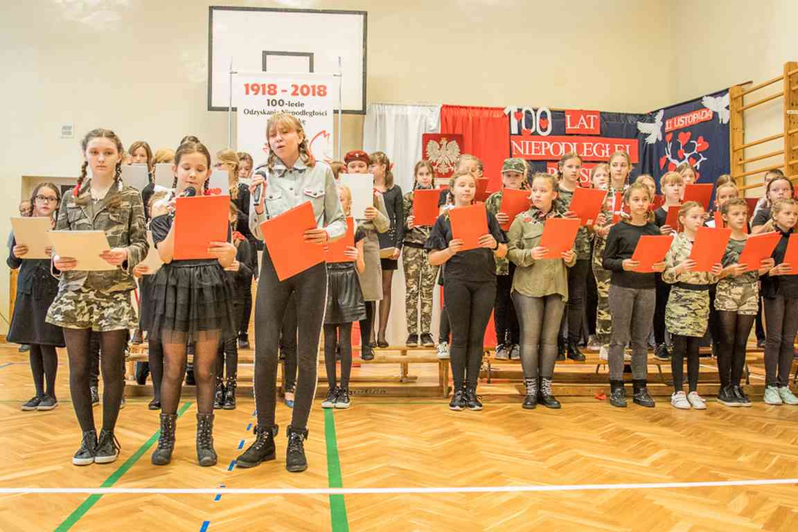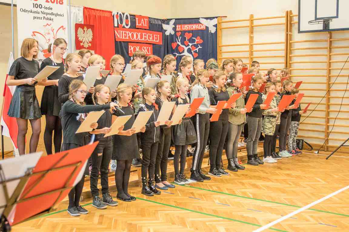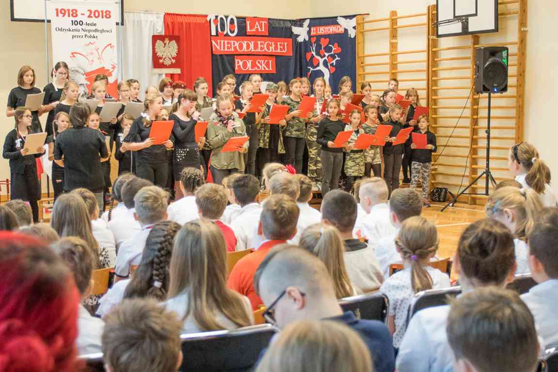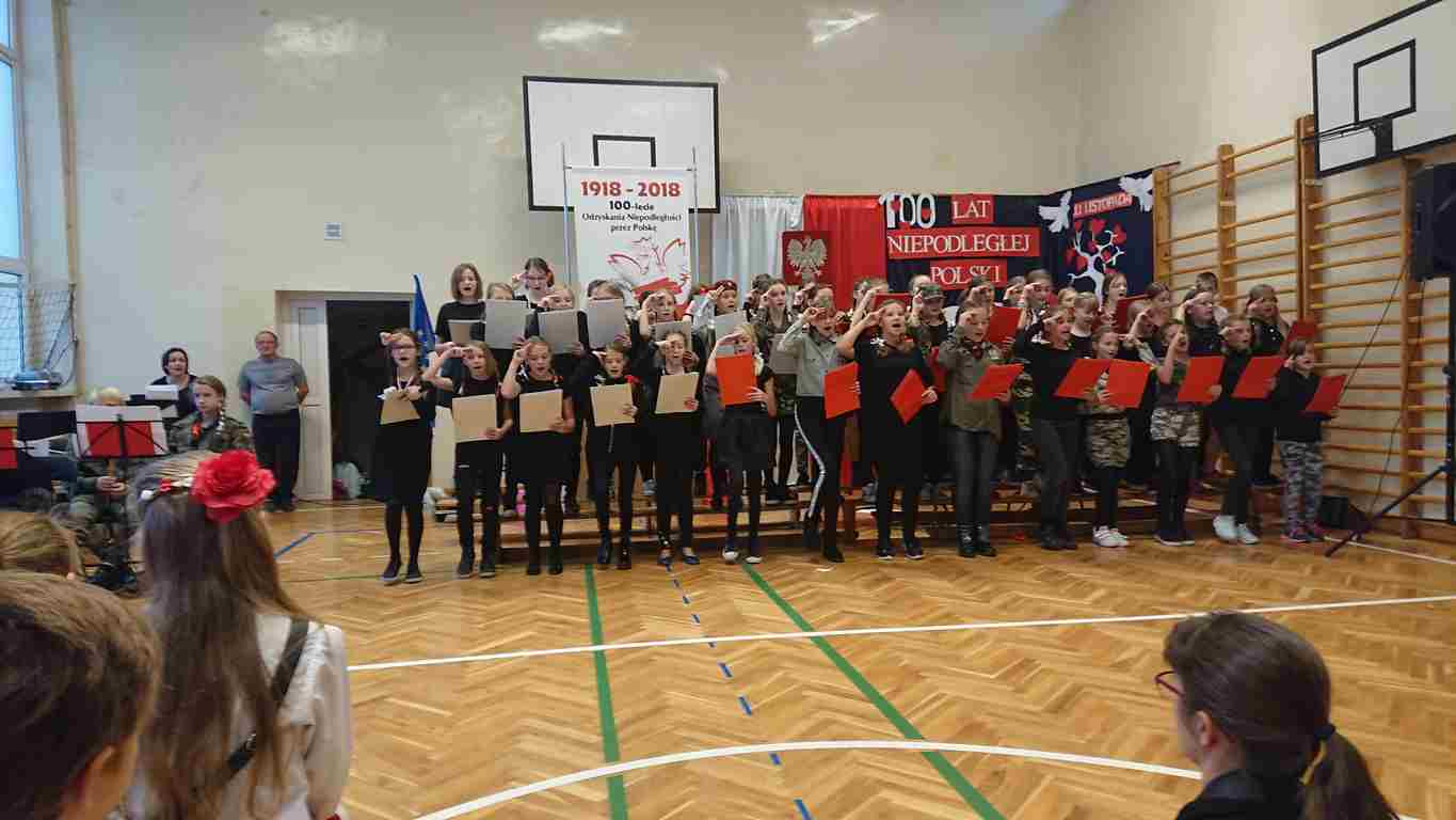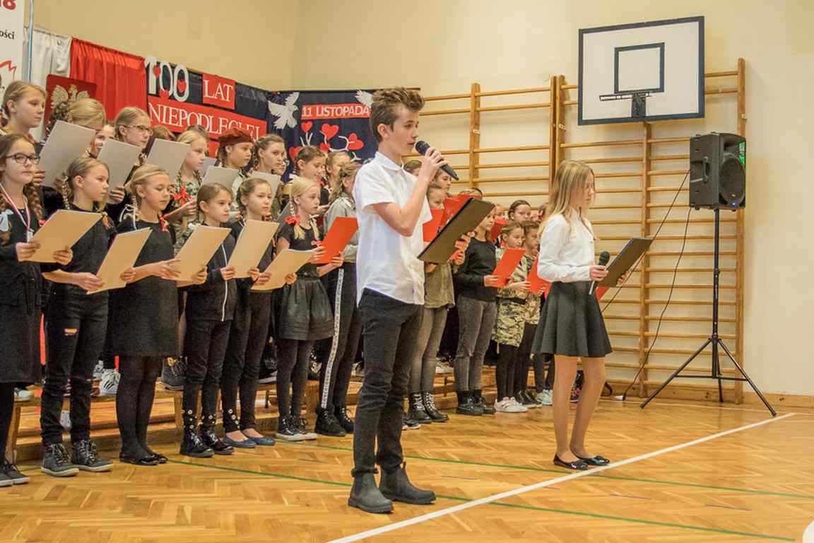 Uwieńczeniem obchodów był koncert „Dla Niepodległej”, podczas którego chór i zespół instrumentalny pod kierunkiem pani Marii Nawrott wykonał sztandarowe pieśni i piosenki patriotyczne, w tym średniowieczne hymny Polski: ”Gaude Mater Polonia” i „Bogurodzicę”. W podniosły nastrój zebranych wprowadzili konferansjerzy i recytatorzy z klasy VIIa. Publiczność zgromadzona na koncercie z wielkim wzruszeniem i zaangażowaniem wtórowała młodym śpiewakom.