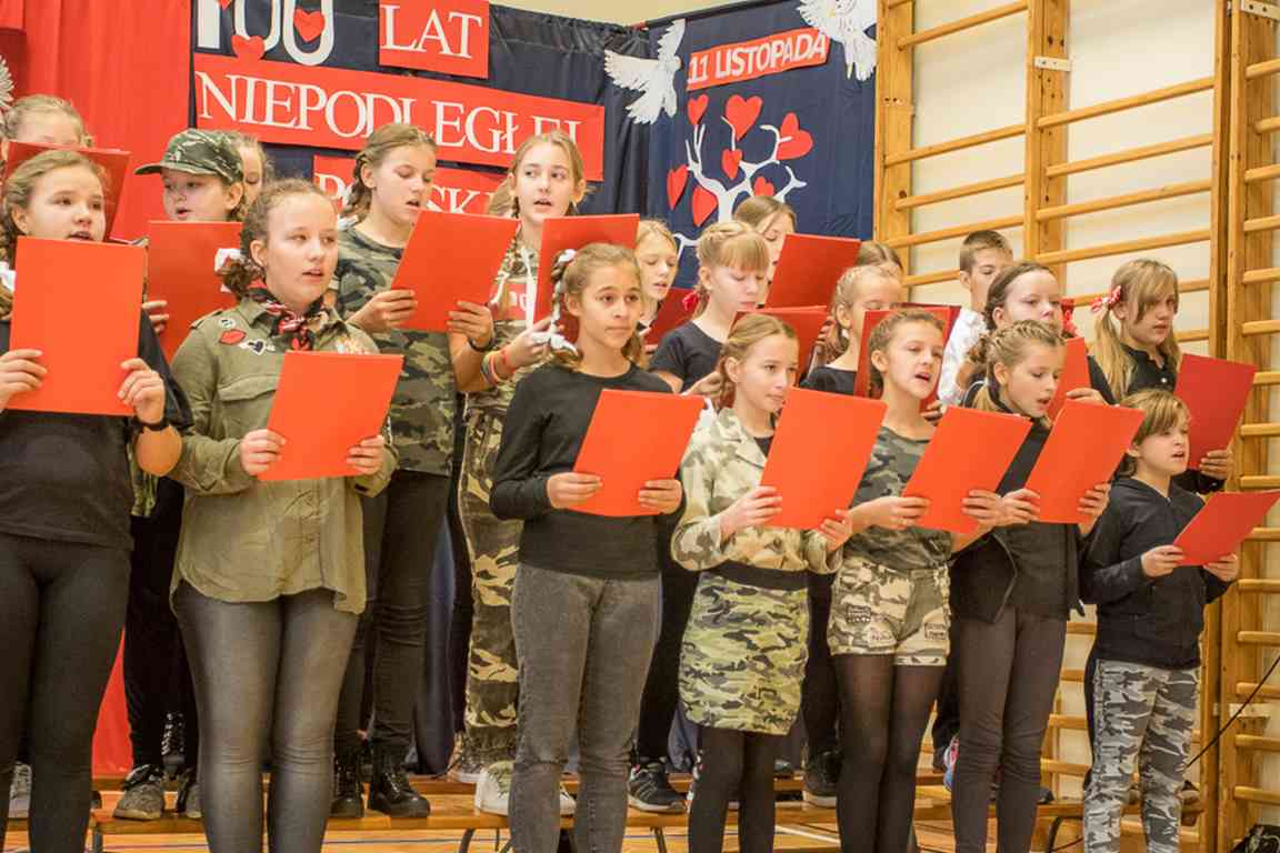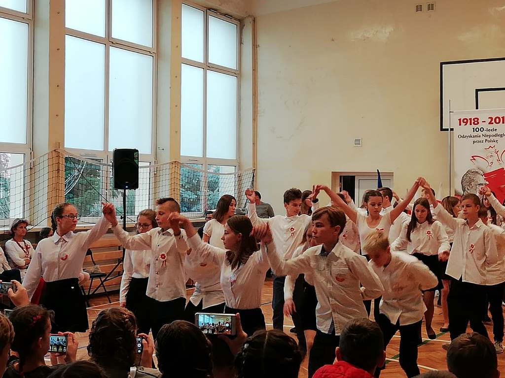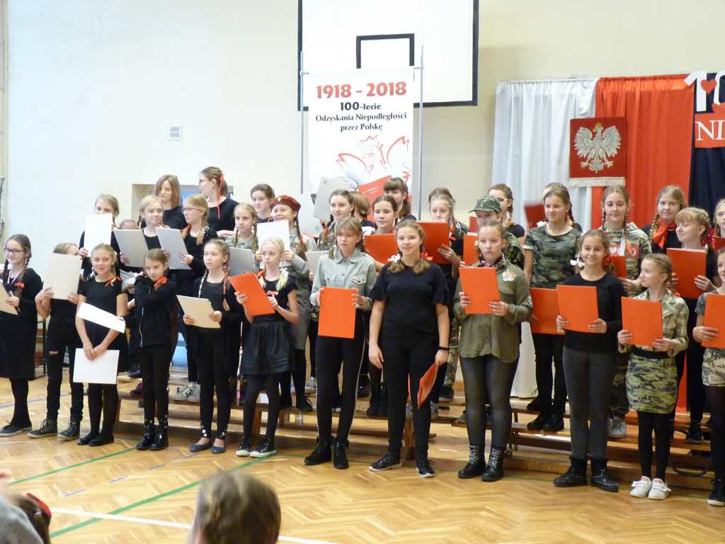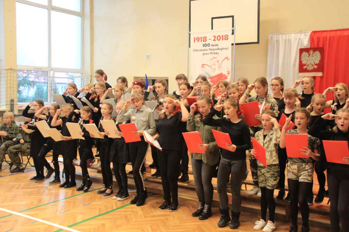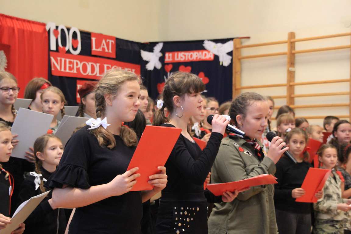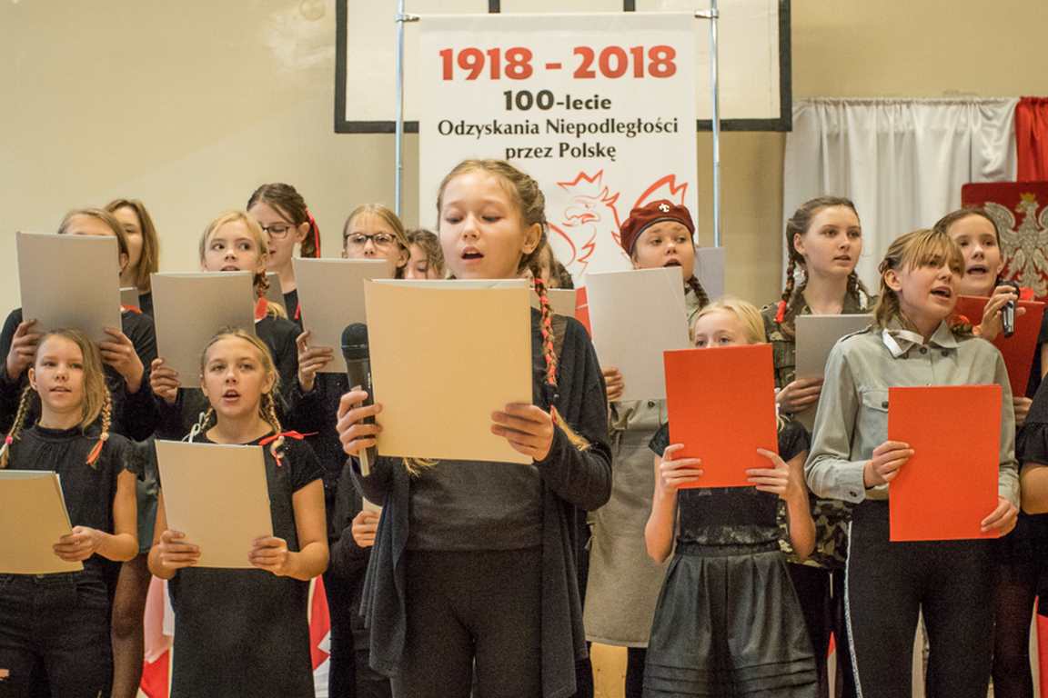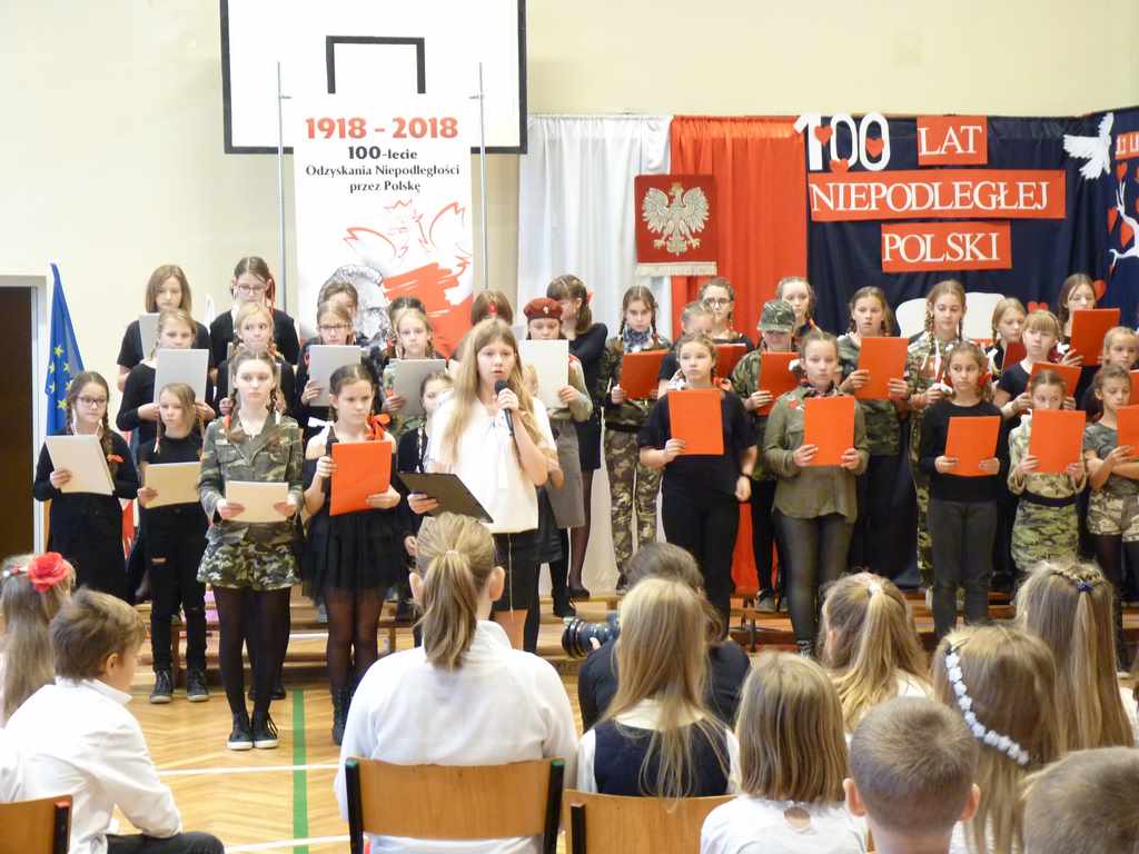 Uwieńczeniem obchodów był koncert „Dla Niepodległej”, podczas którego chór i zespół instrumentalny pod kierunkiem pani Marii Nawrott wykonał sztandarowe pieśni i piosenki patriotyczne, w tym średniowieczne hymny Polski: ”Gaude Mater Polonia” i „Bogurodzicę”. W podniosły nastrój zebranych wprowadzili konferansjerzy i recytatorzy z klasy VIIa. Publiczność zgromadzona na koncercie z wielkim wzruszeniem i zaangażowaniem wtórowała młodym śpiewakom.