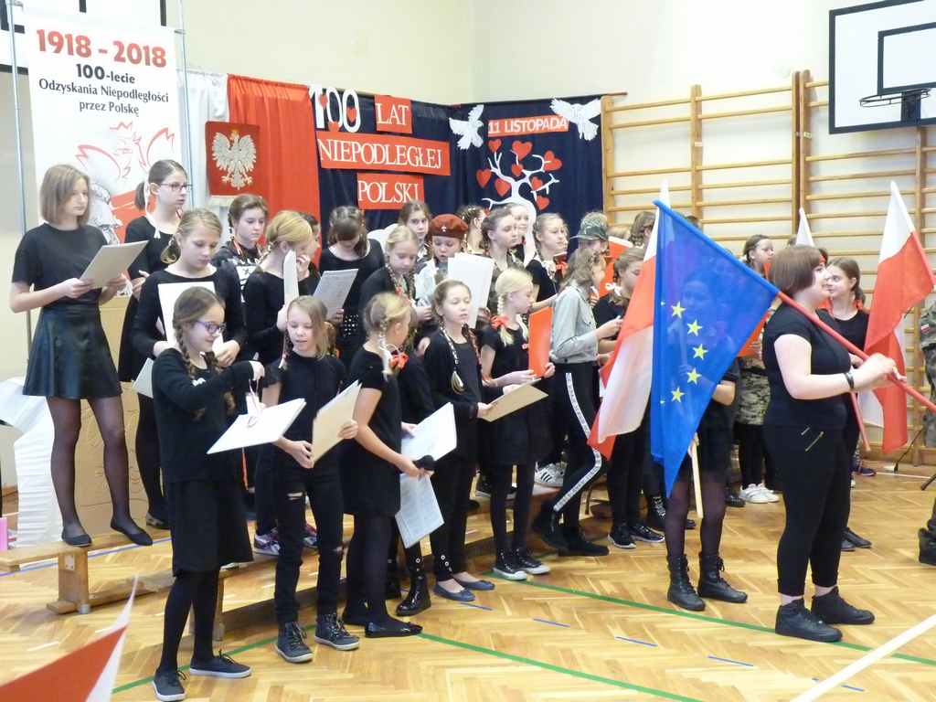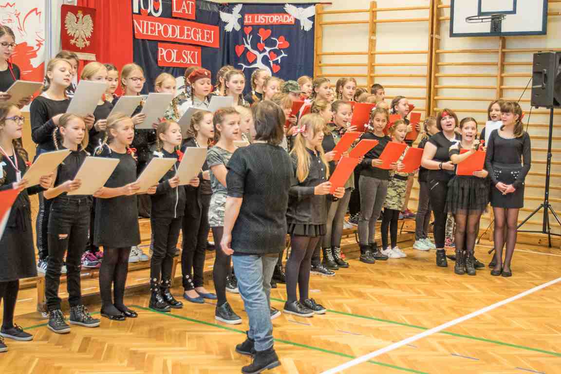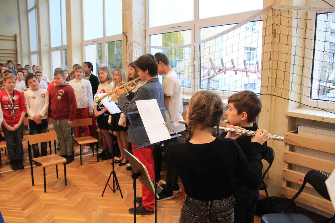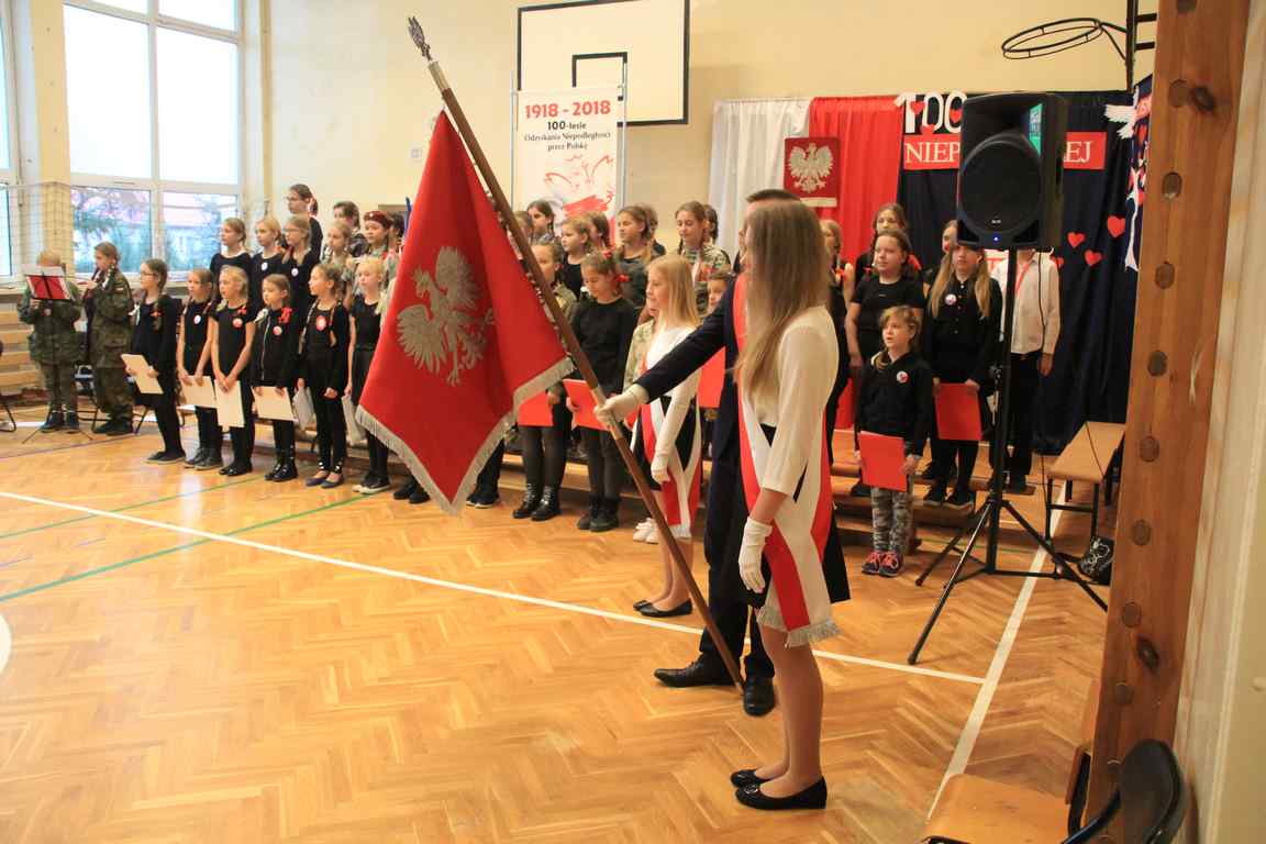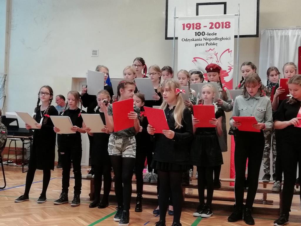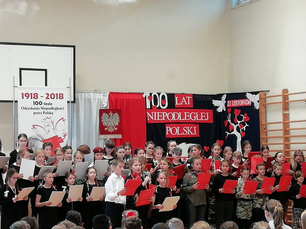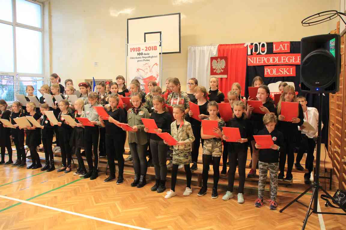 Uwieńczeniem obchodów był koncert „Dla Niepodległej”, podczas którego chór i zespół instrumentalny pod kierunkiem pani Marii Nawrott wykonał sztandarowe pieśni i piosenki patriotyczne, w tym średniowieczne hymny Polski: ”Gaude Mater Polonia” i „Bogurodzicę”. W podniosły nastrój zebranych wprowadzili konferansjerzy i recytatorzy z klasy VIIa. Publiczność zgromadzona na koncercie z wielkim wzruszeniem i zaangażowaniem wtórowała młodym śpiewakom.
