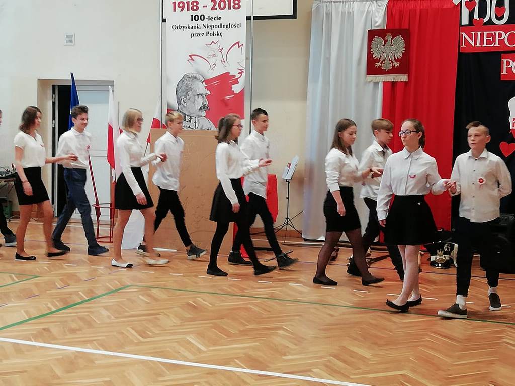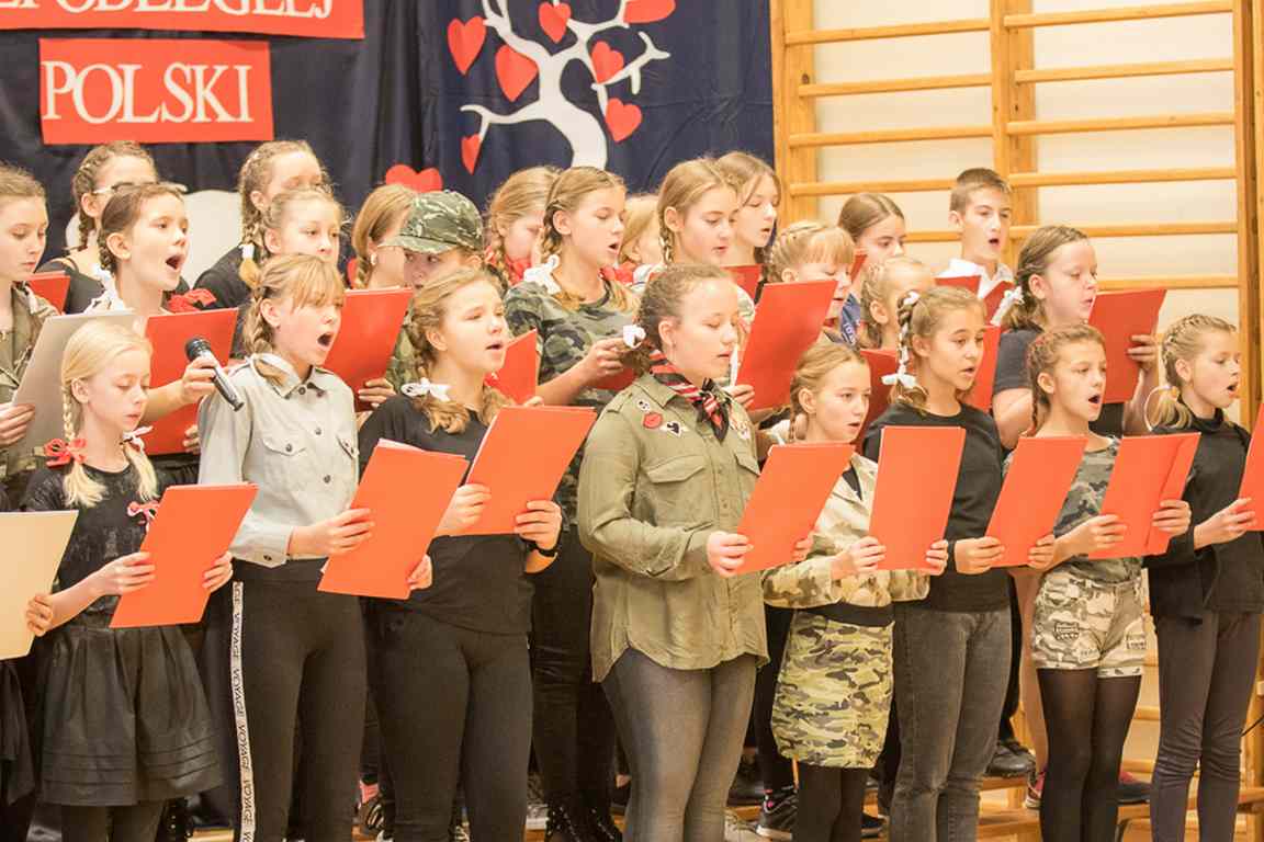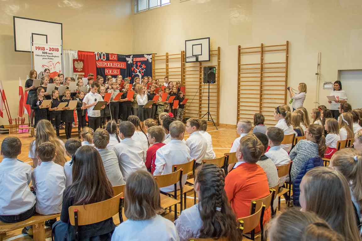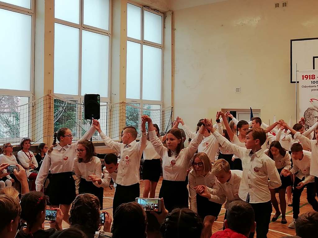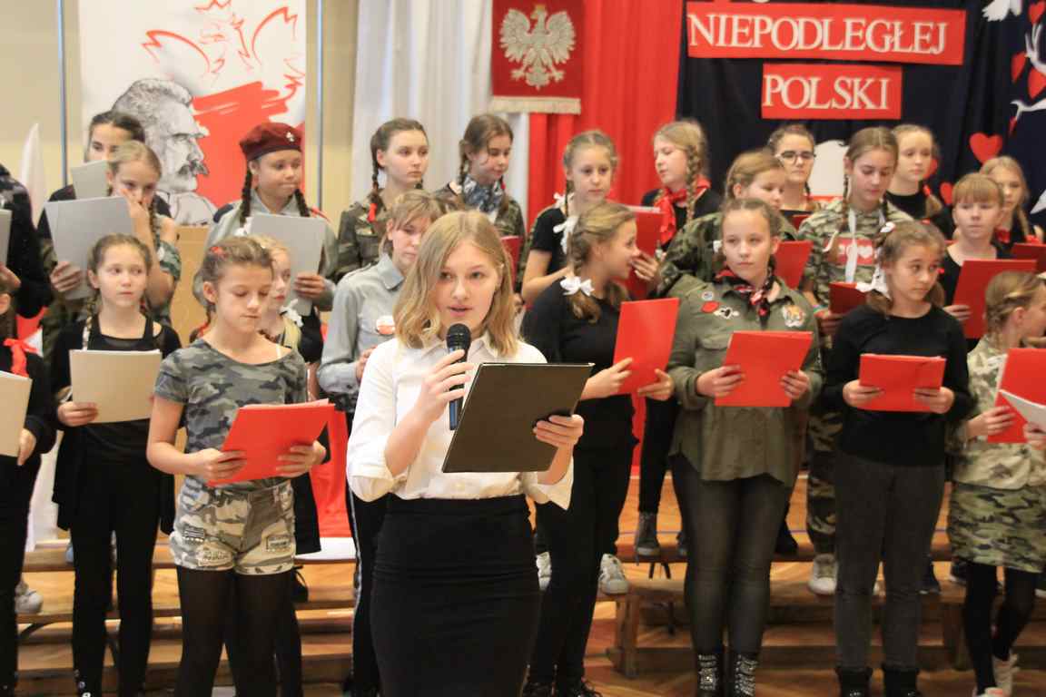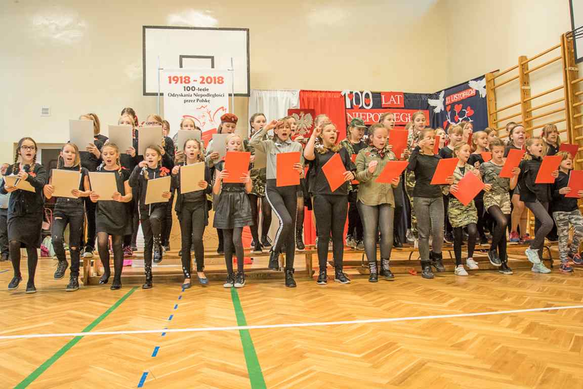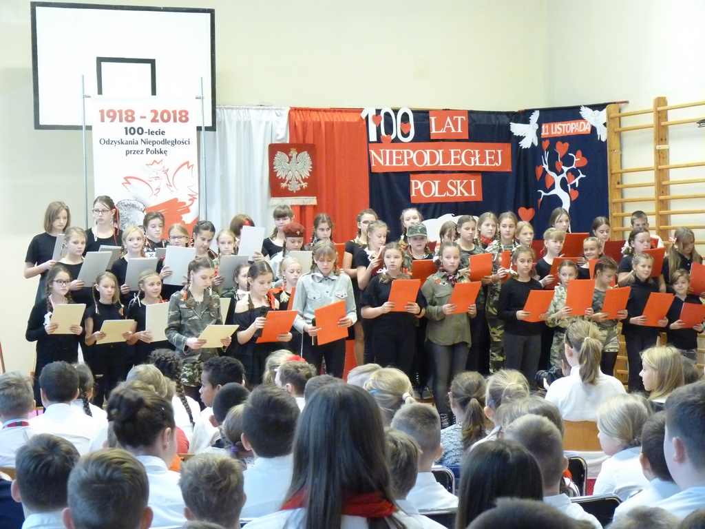 Uwieńczeniem obchodów był koncert „Dla Niepodległej”, podczas którego chór i zespół instrumentalny pod kierunkiem pani Marii Nawrott wykonał sztandarowe pieśni i piosenki patriotyczne, w tym średniowieczne hymny Polski: ”Gaude Mater Polonia” i „Bogurodzicę”. W podniosły nastrój zebranych wprowadzili konferansjerzy i recytatorzy z klasy VIIa. Publiczność zgromadzona na koncercie z wielkim wzruszeniem i zaangażowaniem wtórowała młodym śpiewakom.