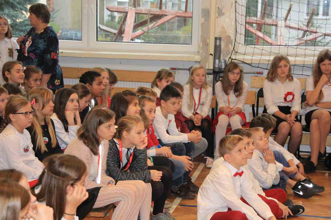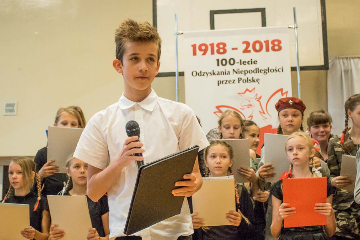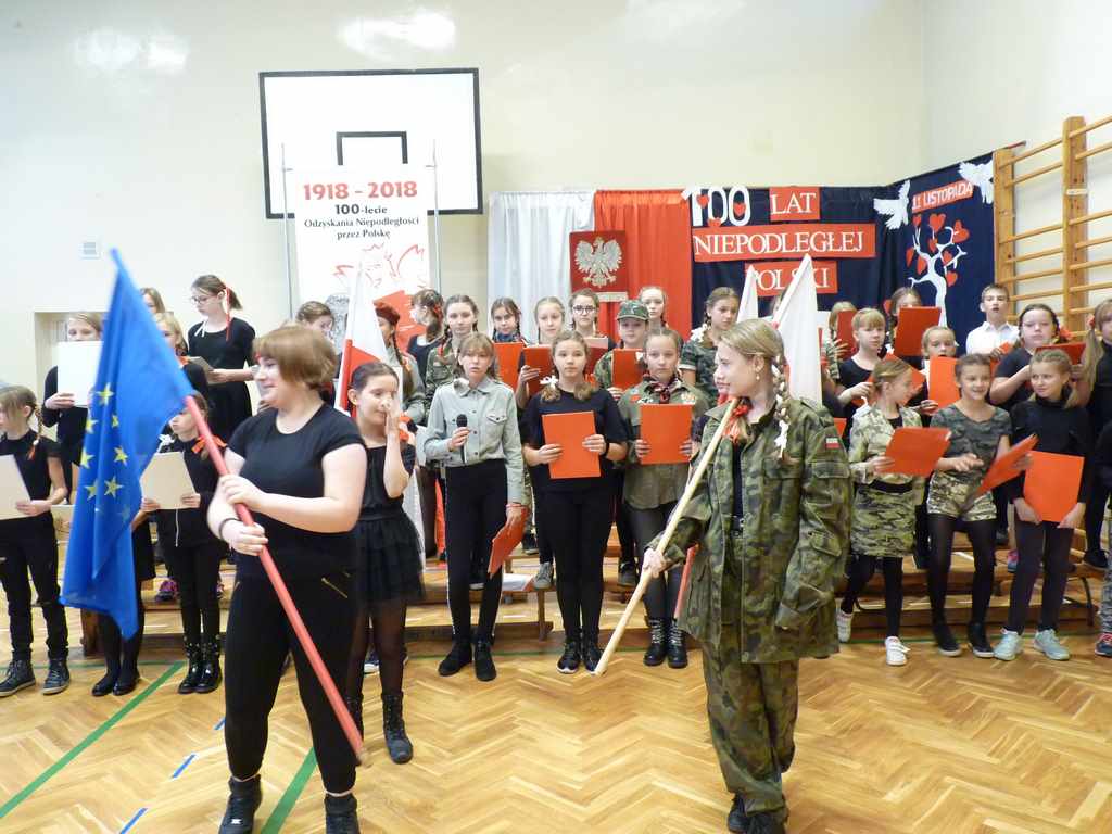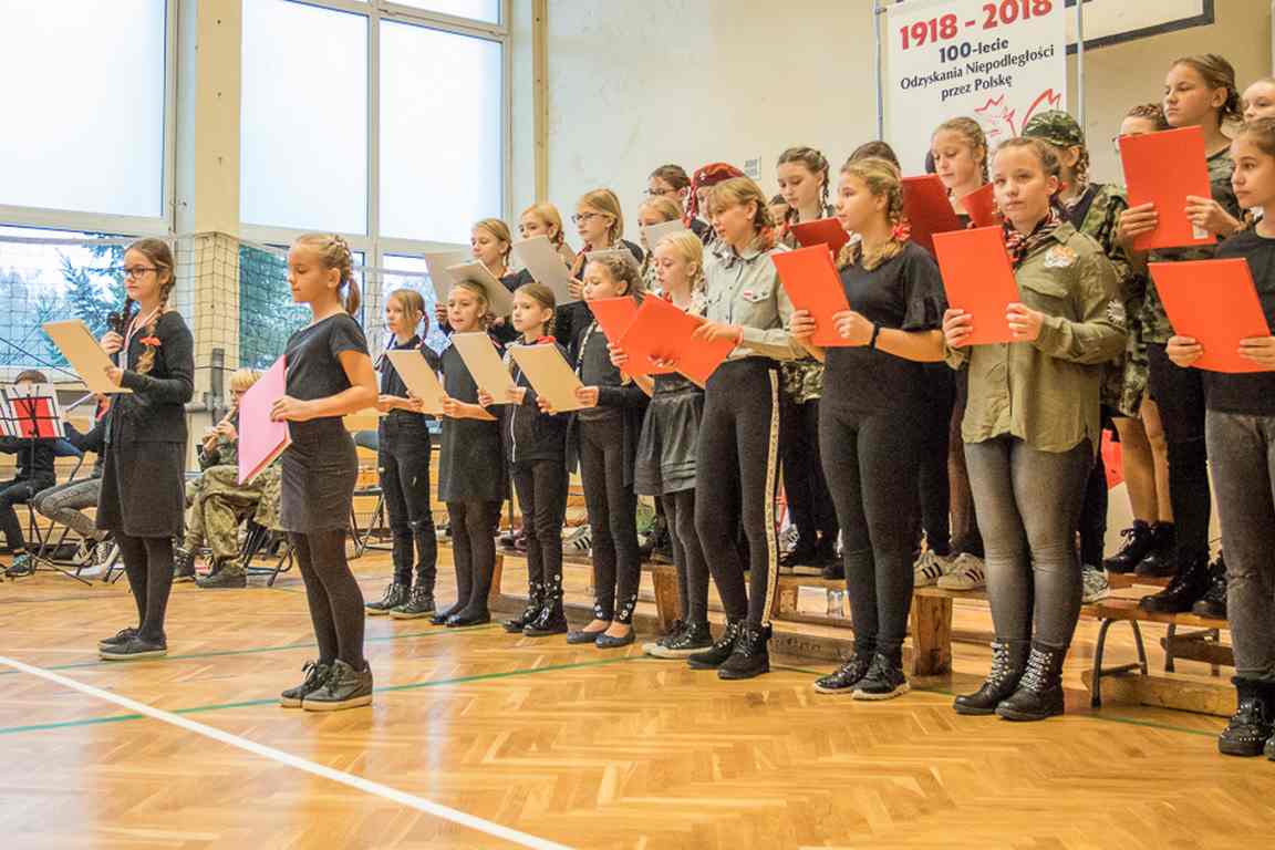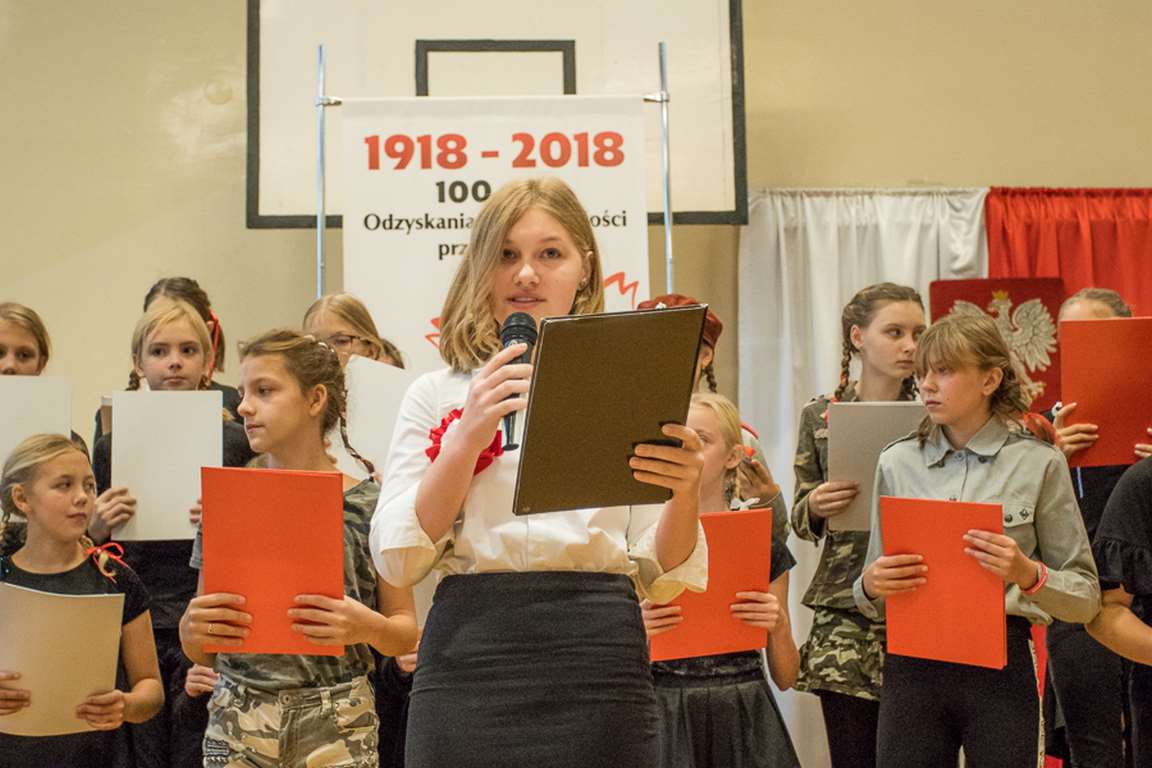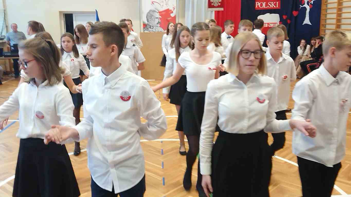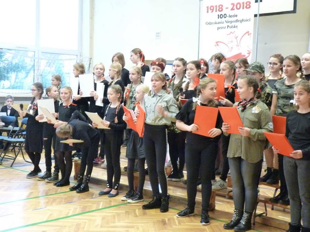 Uwieńczeniem obchodów był koncert „Dla Niepodległej”, podczas którego chór i zespół instrumentalny pod kierunkiem pani Marii Nawrott wykonał sztandarowe pieśni i piosenki patriotyczne, w tym średniowieczne hymny Polski: ”Gaude Mater Polonia” i „Bogurodzicę”. W podniosły nastrój zebranych wprowadzili konferansjerzy i recytatorzy z klasy VIIa. Publiczność zgromadzona na koncercie z wielkim wzruszeniem i zaangażowaniem wtórowała młodym śpiewakom.