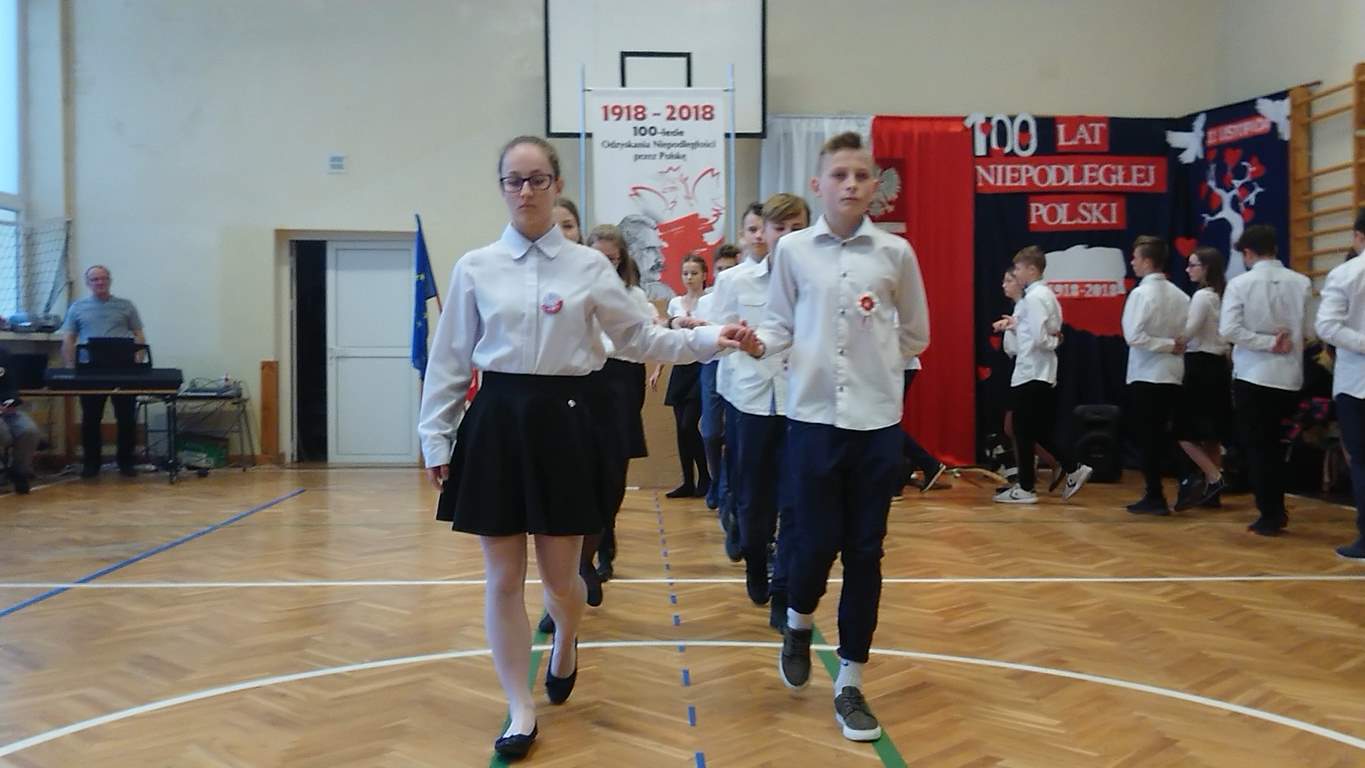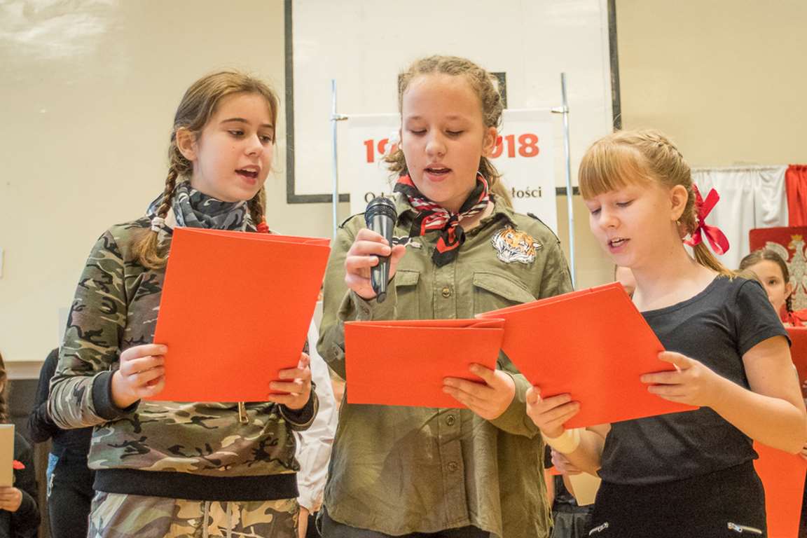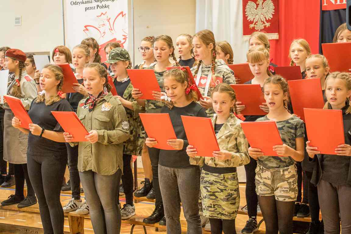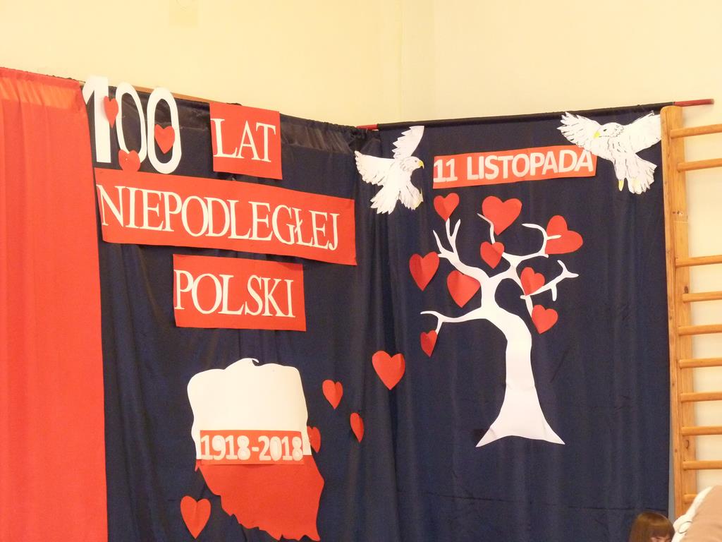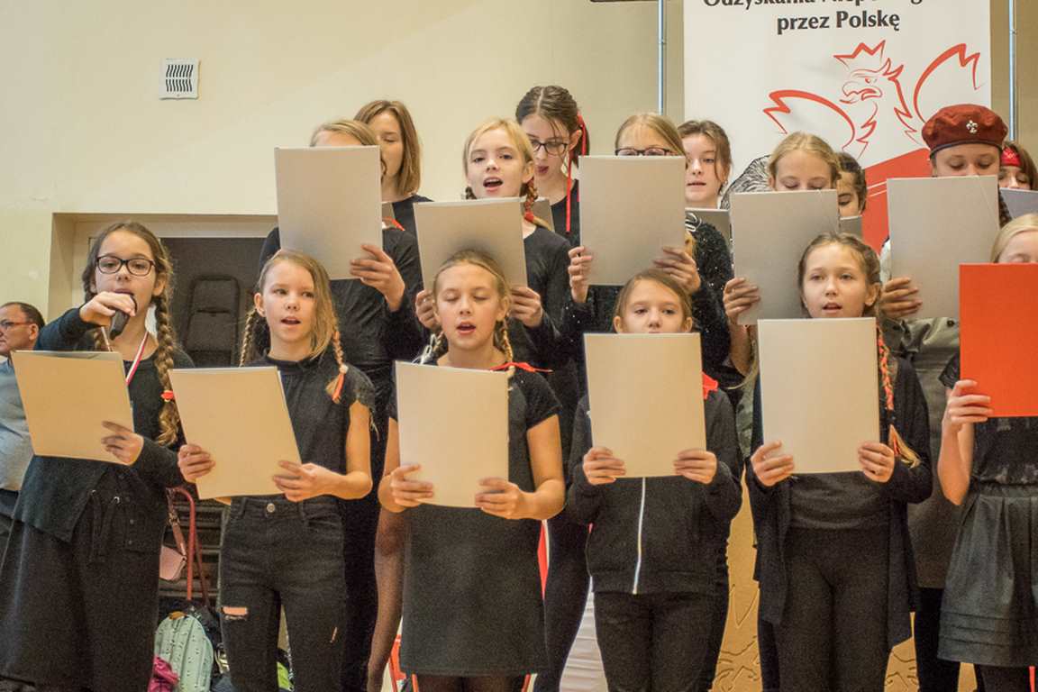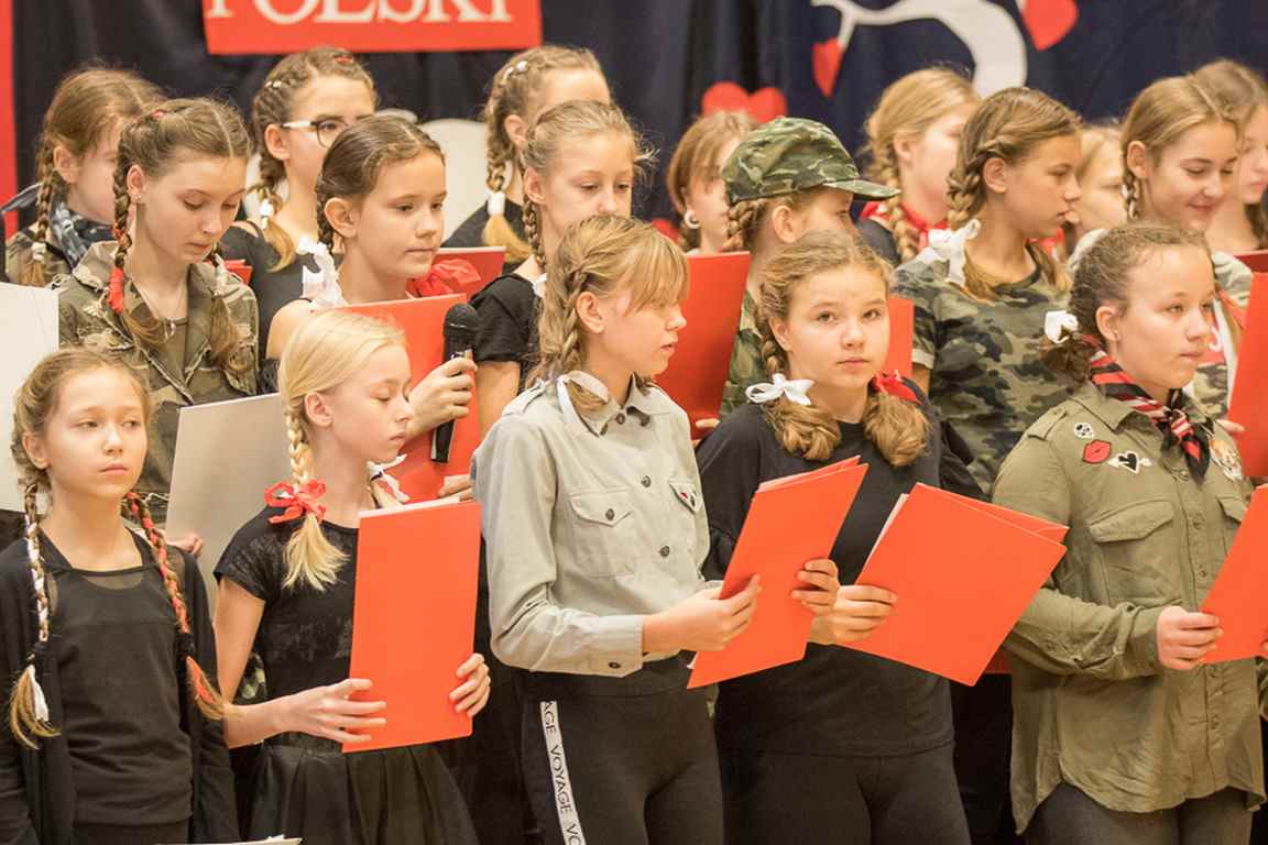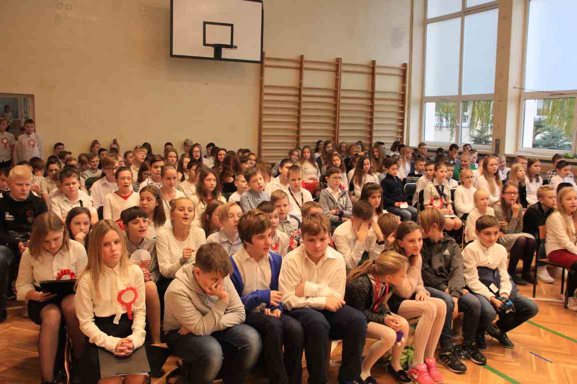 Uwieńczeniem obchodów był koncert „Dla Niepodległej”, podczas którego chór i zespół instrumentalny pod kierunkiem pani Marii Nawrott wykonał sztandarowe pieśni i piosenki patriotyczne, w tym średniowieczne hymny Polski: ”Gaude Mater Polonia” i „Bogurodzicę”. W podniosły nastrój zebranych wprowadzili konferansjerzy i recytatorzy z klasy VIIa. Publiczność zgromadzona na koncercie z wielkim wzruszeniem i zaangażowaniem wtórowała młodym śpiewakom.