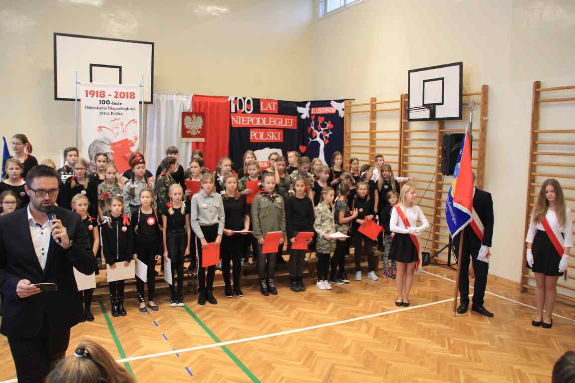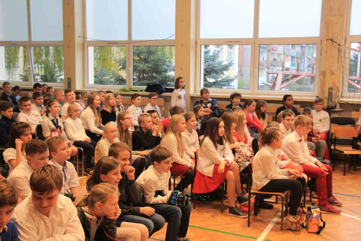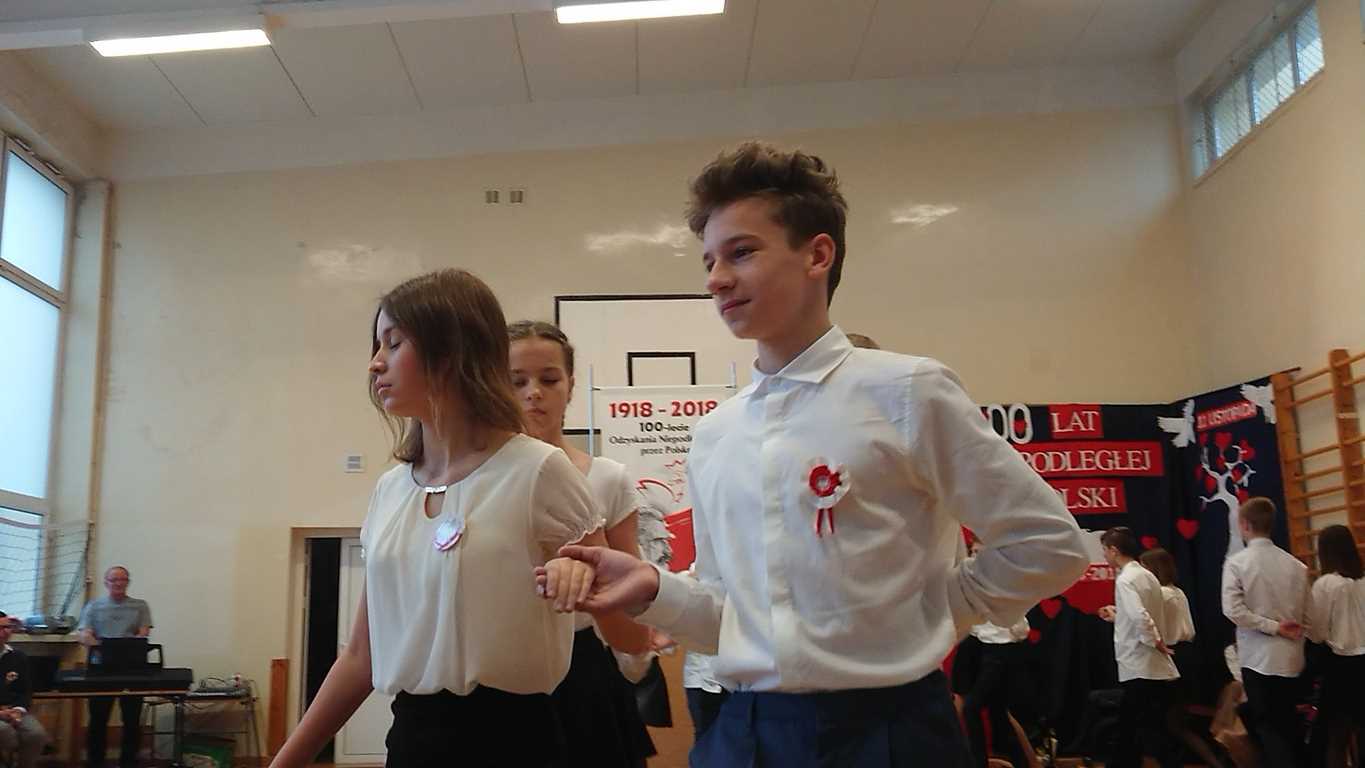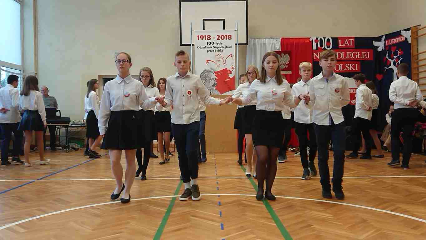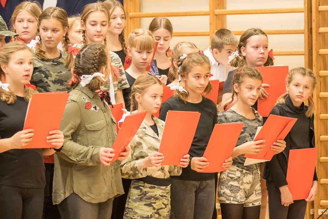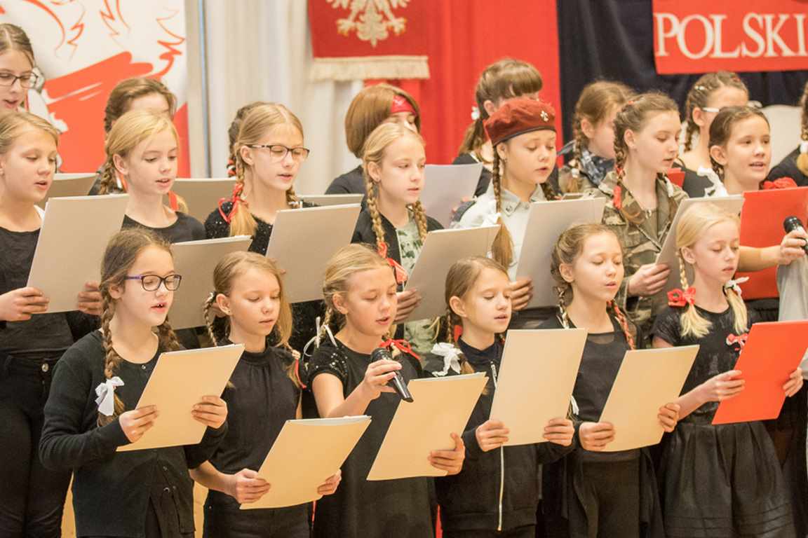 Uwieńczeniem obchodów był koncert „Dla Niepodległej”, podczas którego chór i zespół instrumentalny pod kierunkiem pani Marii Nawrott wykonał sztandarowe pieśni i piosenki patriotyczne, w tym średniowieczne hymny Polski: ”Gaude Mater Polonia” i „Bogurodzicę”. W podniosły nastrój zebranych wprowadzili konferansjerzy i recytatorzy z klasy VIIa. Publiczność zgromadzona na koncercie z wielkim wzruszeniem i zaangażowaniem wtórowała młodym śpiewakom.