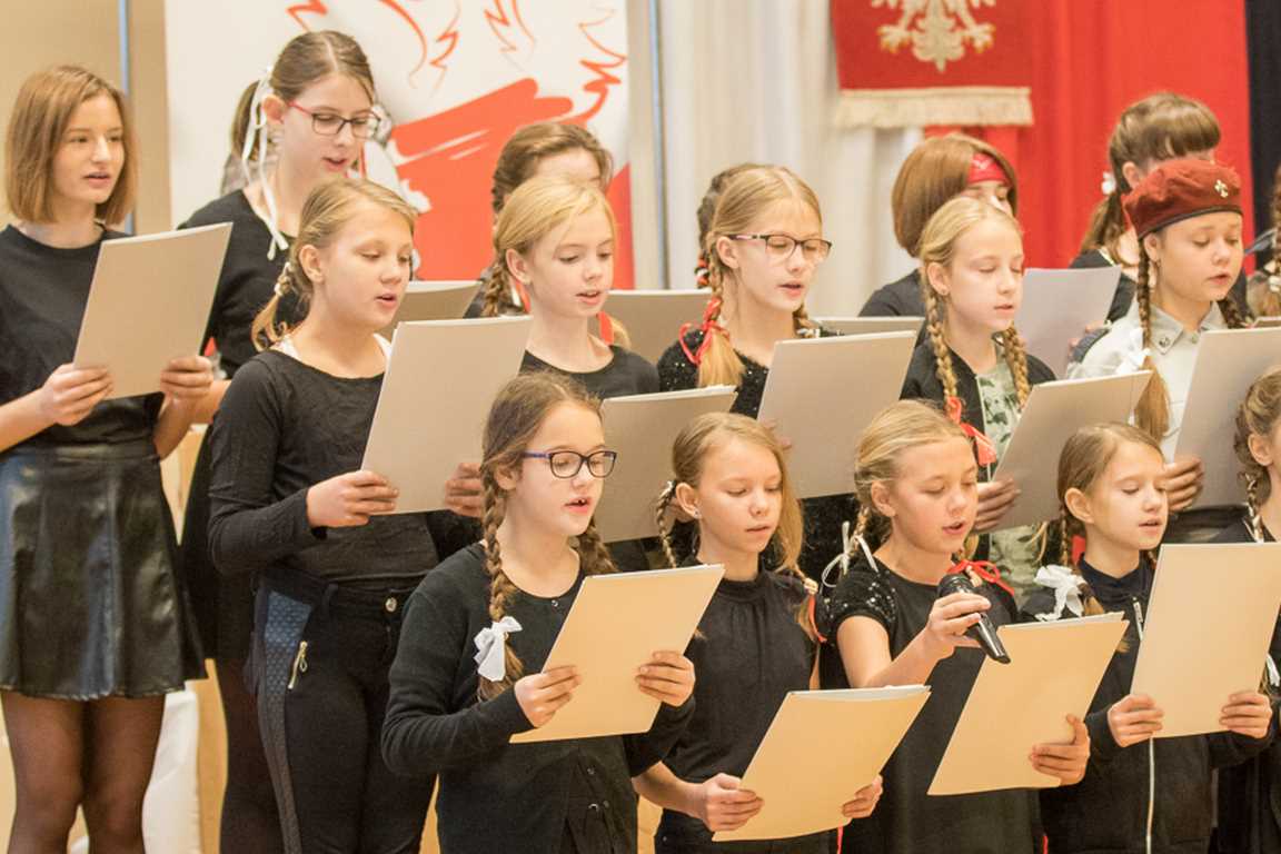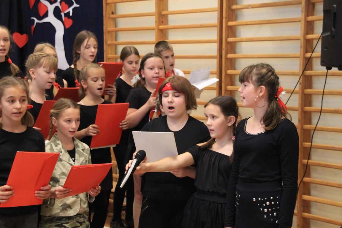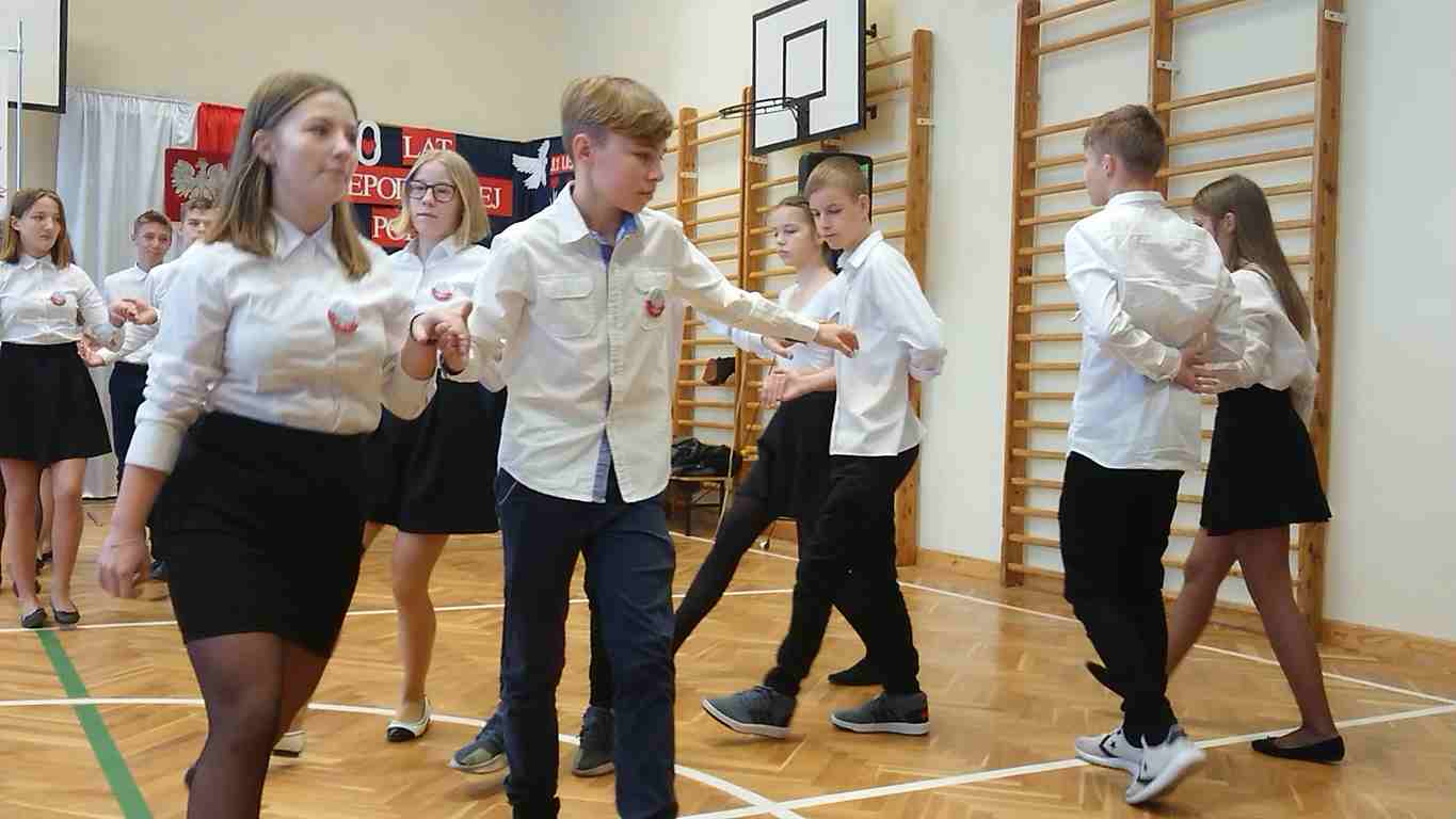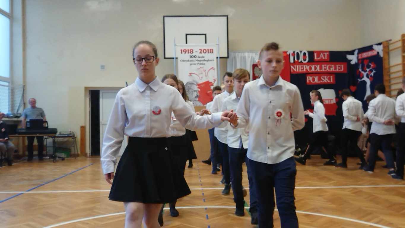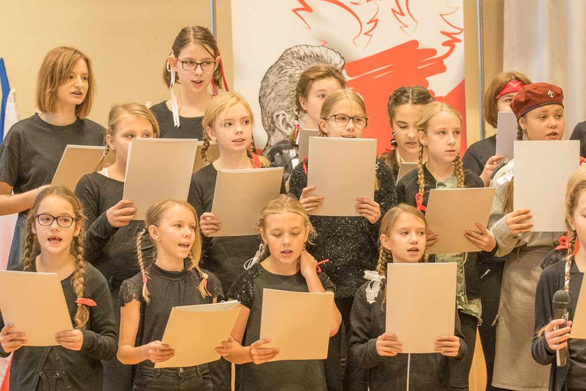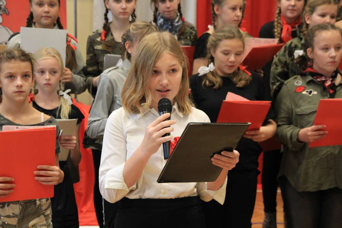 Uwieńczeniem obchodów był koncert „Dla Niepodległej”, podczas którego chór i zespół instrumentalny pod kierunkiem pani Marii Nawrott wykonał sztandarowe pieśni i piosenki patriotyczne, w tym średniowieczne hymny Polski: ”Gaude Mater Polonia” i „Bogurodzicę”. W podniosły nastrój zebranych wprowadzili konferansjerzy i recytatorzy z klasy VIIa. Publiczność zgromadzona na koncercie z wielkim wzruszeniem i zaangażowaniem wtórowała młodym śpiewakom.