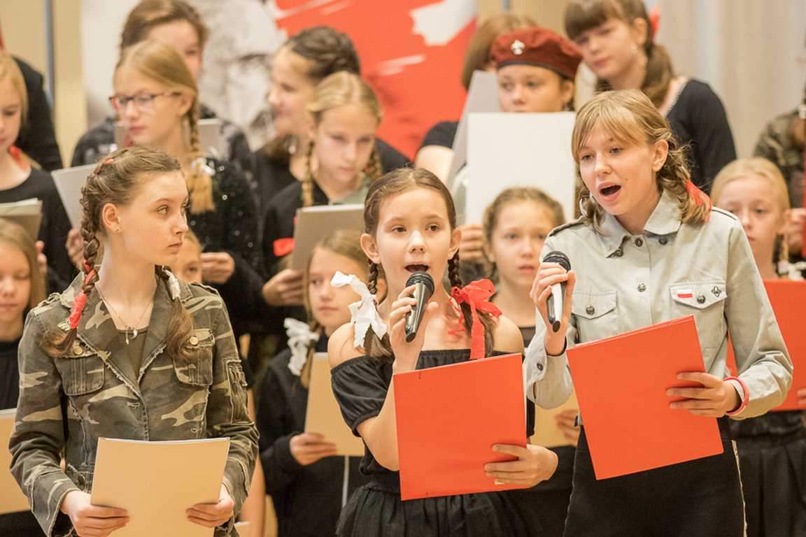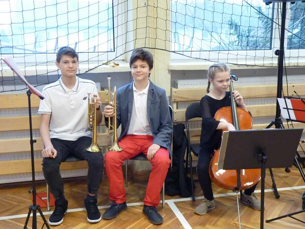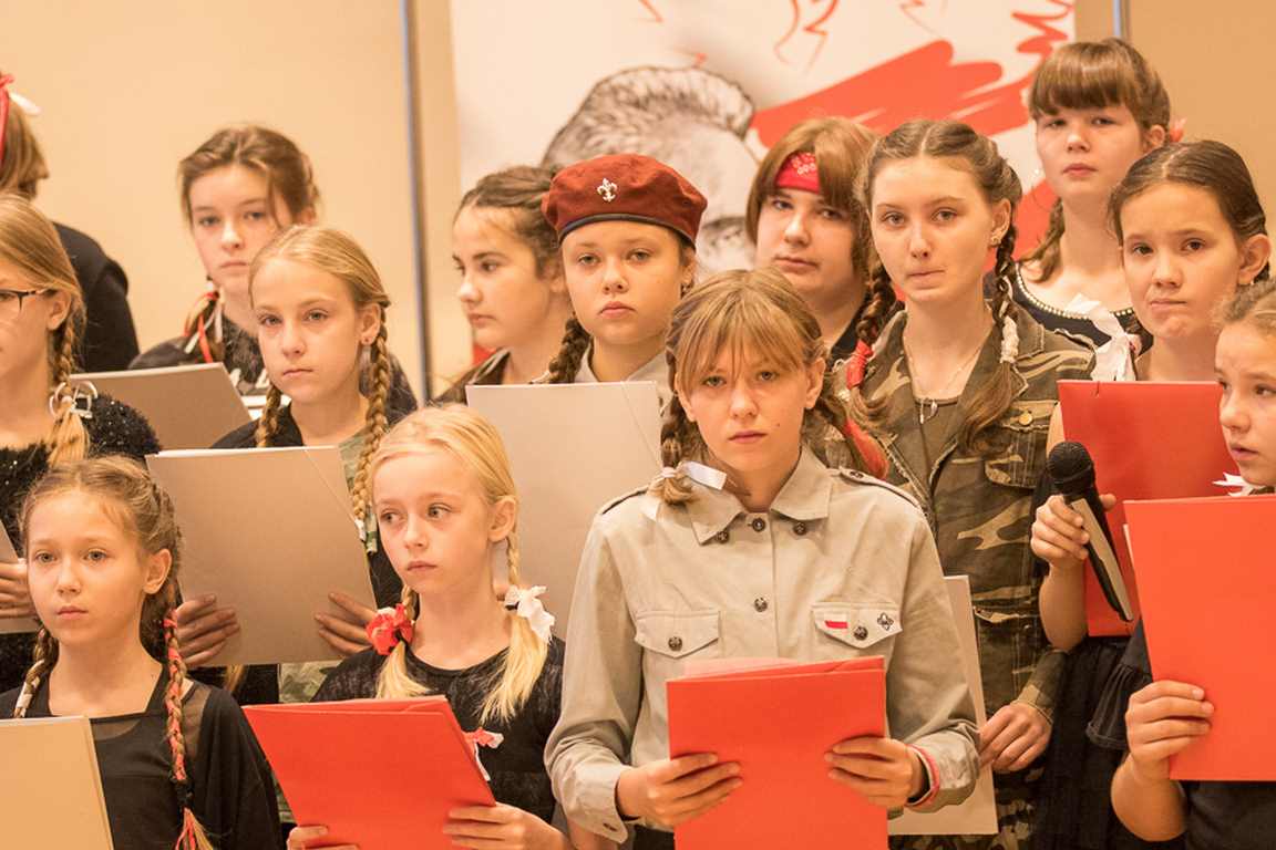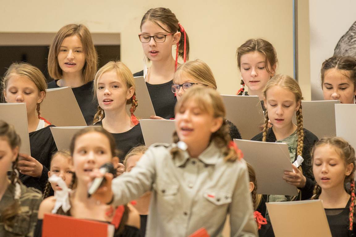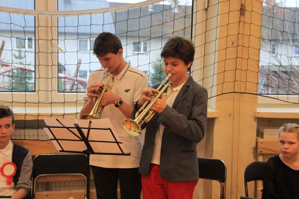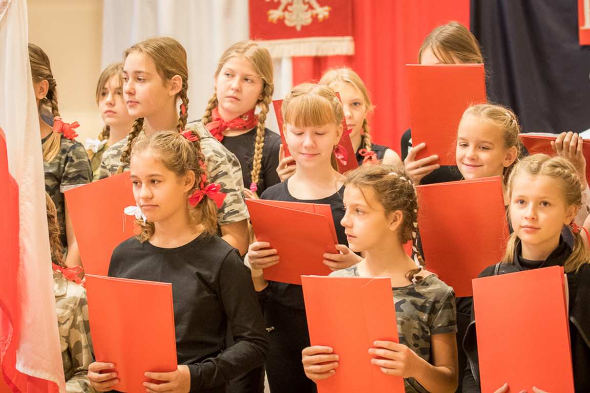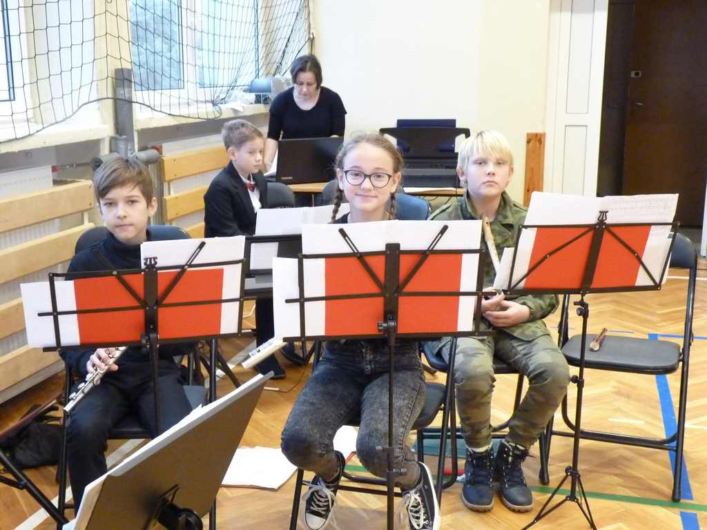 Uwieńczeniem obchodów był koncert „Dla Niepodległej”, podczas którego chór i zespół instrumentalny pod kierunkiem pani Marii Nawrott wykonał sztandarowe pieśni i piosenki patriotyczne, w tym średniowieczne hymny Polski: ”Gaude Mater Polonia” i „Bogurodzicę”. W podniosły nastrój zebranych wprowadzili konferansjerzy i recytatorzy z klasy VIIa. Publiczność zgromadzona na koncercie z wielkim wzruszeniem i zaangażowaniem wtórowała młodym śpiewakom.