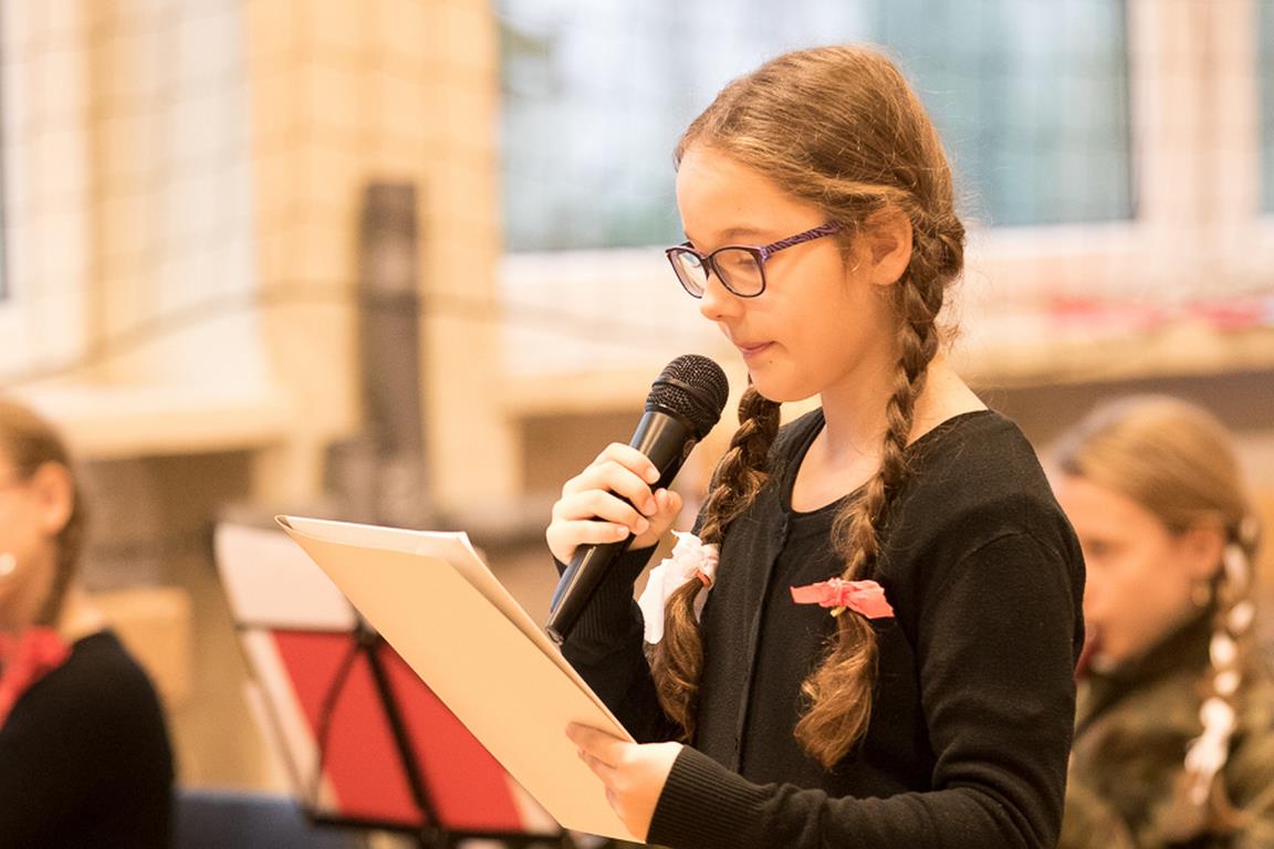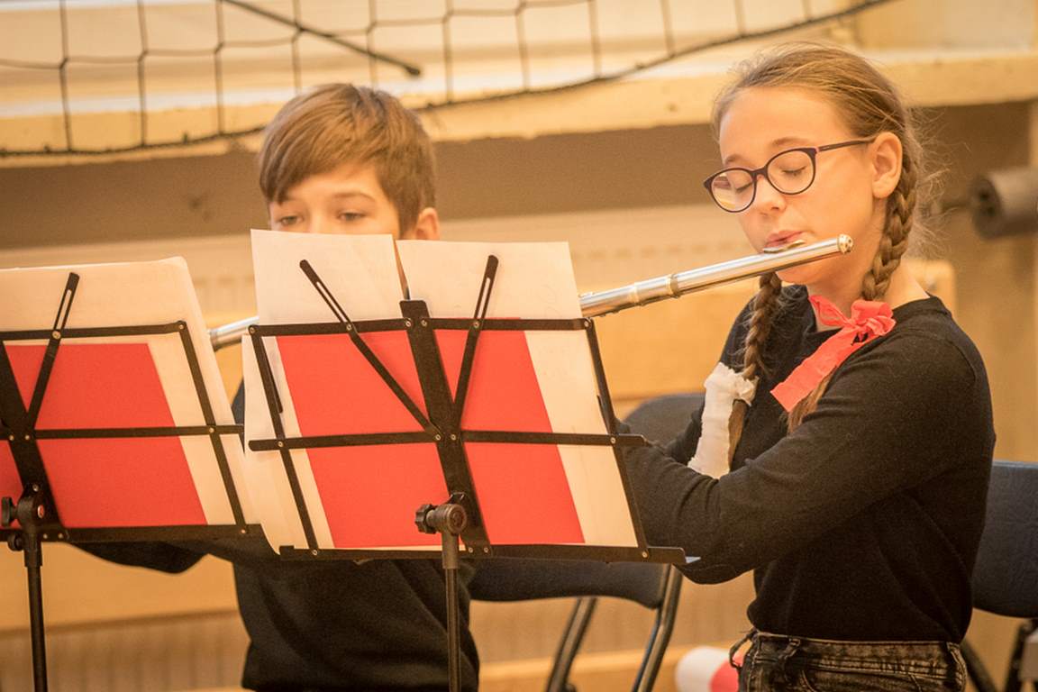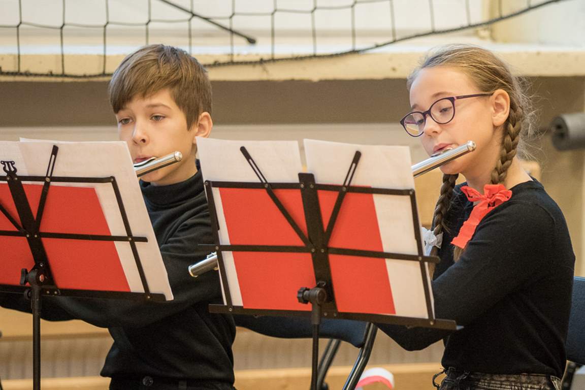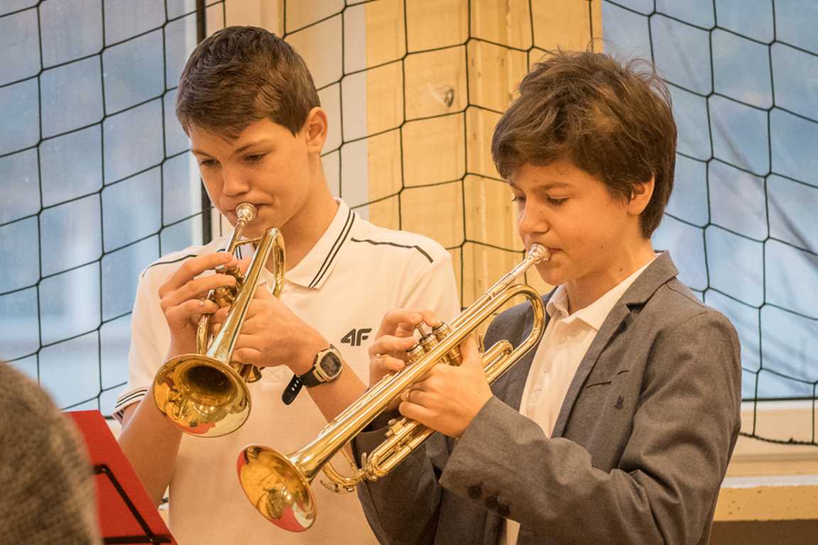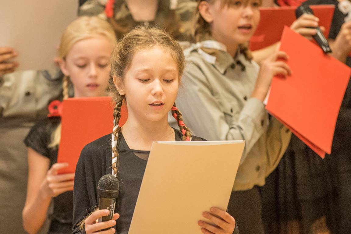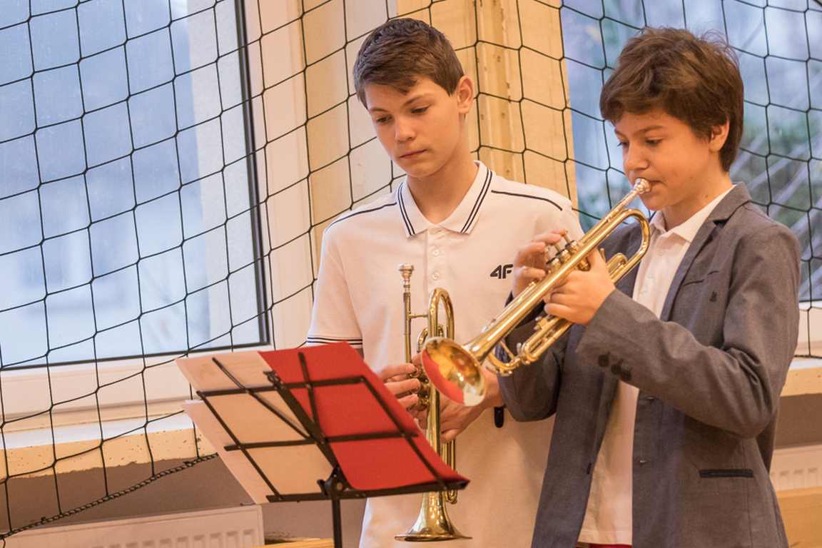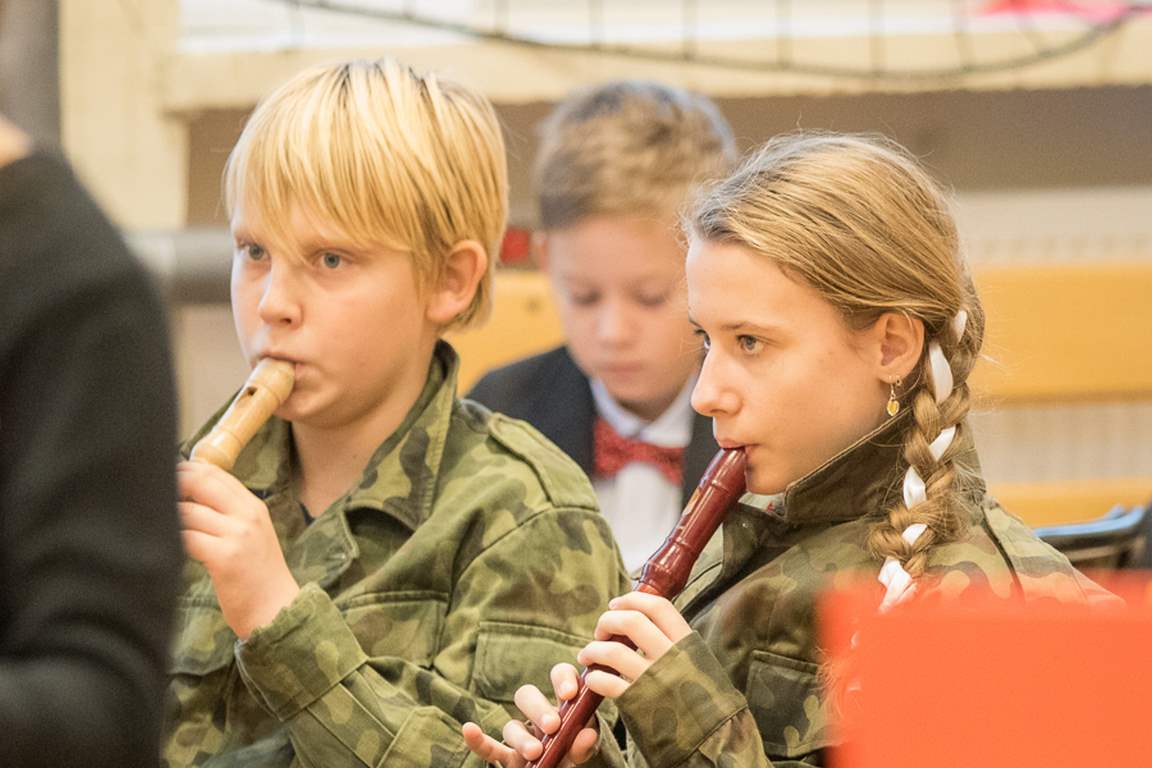 Uwieńczeniem obchodów był koncert „Dla Niepodległej”, podczas którego chór i zespół instrumentalny pod kierunkiem pani Marii Nawrott wykonał sztandarowe pieśni i piosenki patriotyczne, w tym średniowieczne hymny Polski: ”Gaude Mater Polonia” i „Bogurodzicę”. W podniosły nastrój zebranych wprowadzili konferansjerzy i recytatorzy z klasy VIIa. Publiczność zgromadzona na koncercie z wielkim wzruszeniem i zaangażowaniem wtórowała młodym śpiewakom.