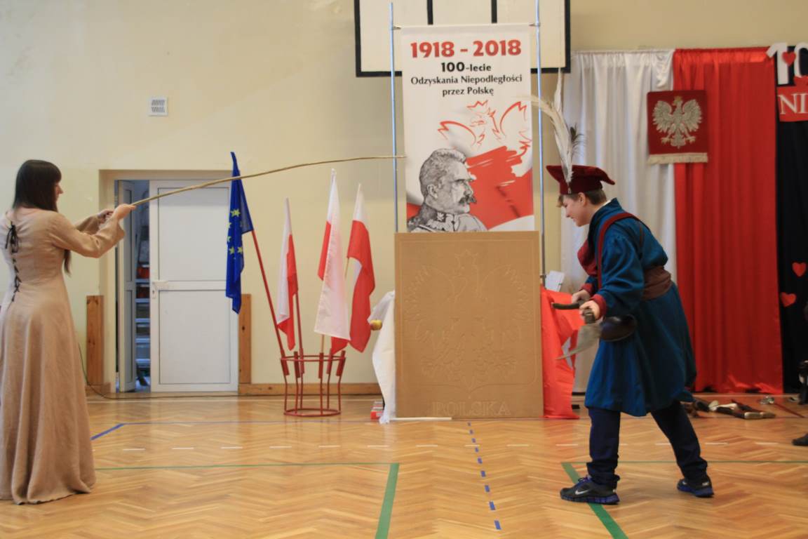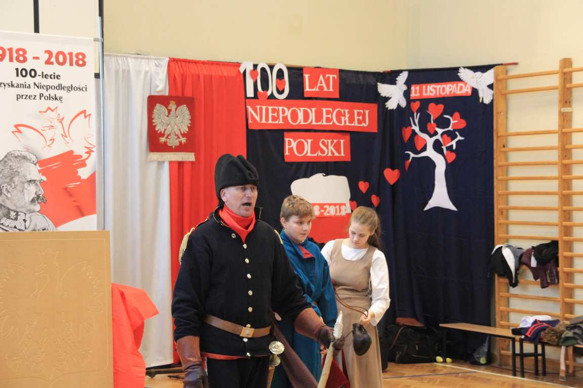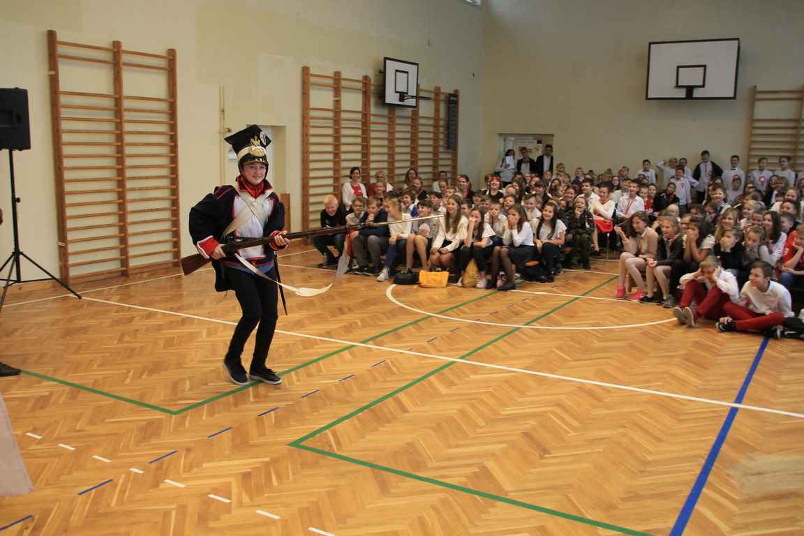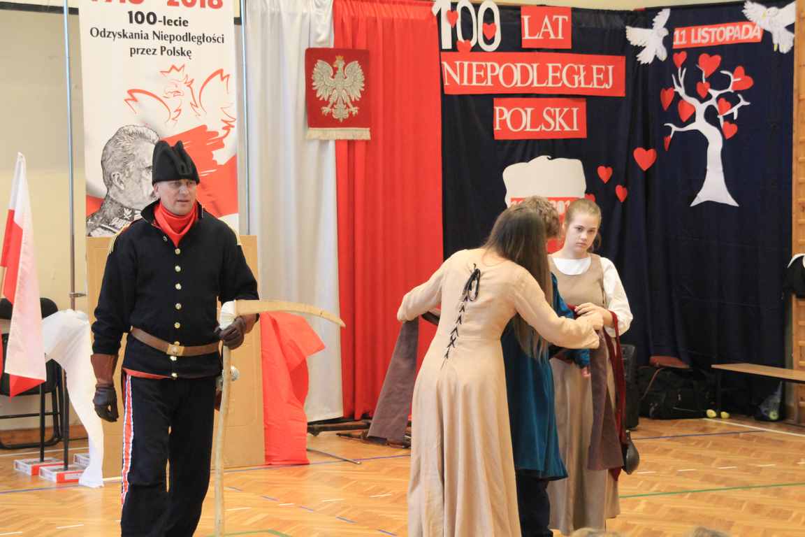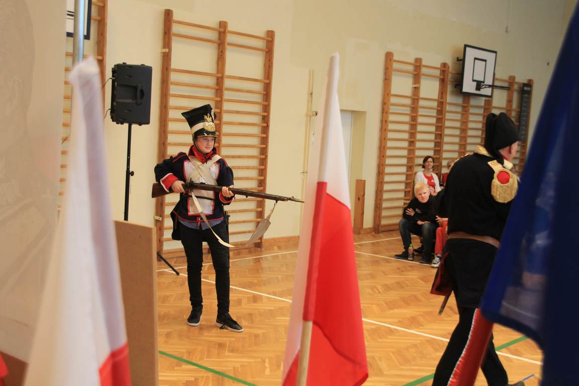 Obchody tego radosnego wydarzenia otworzyła „Żywa lekcja historii” zaprezentowana przez Chorągiew Zaciężną APIS z Gniewu. Głównym przesłaniem historycznej wędrówki w przeszłość było ukazanie społeczności szkolnej trudów drogi ku niepodległości oraz uczczenie pamięci wielu pokoleń Polaków walczących i umierających w imię najważniejszej w życiu wartości – WOLNOŚCI!