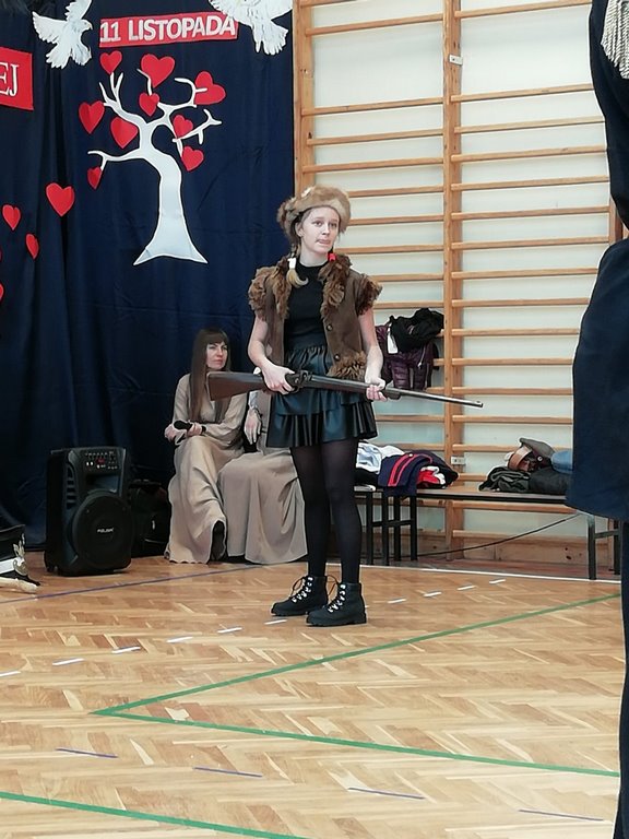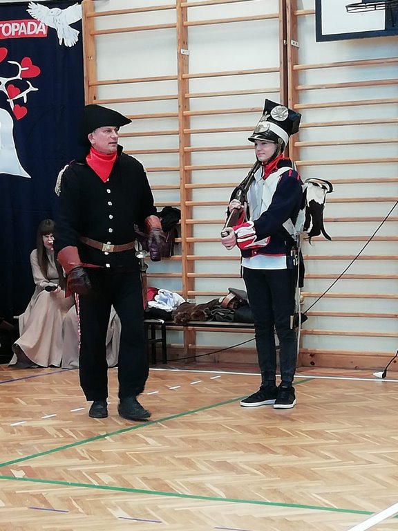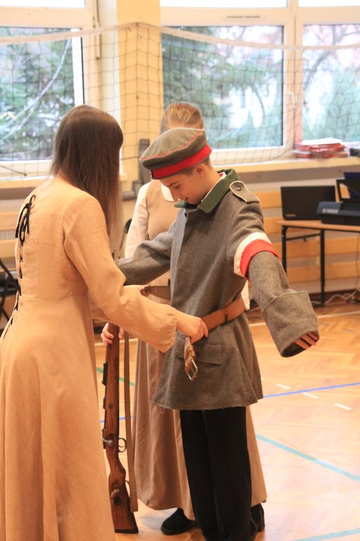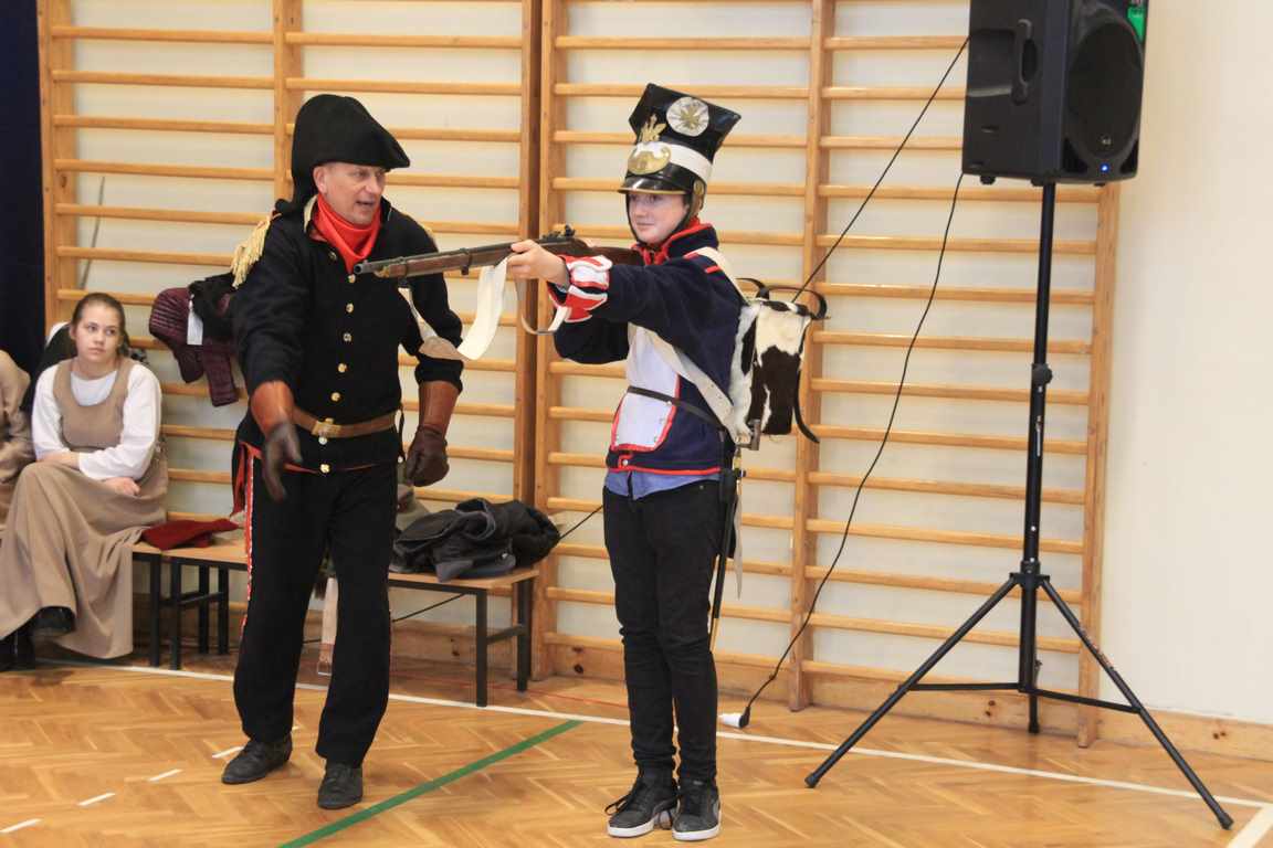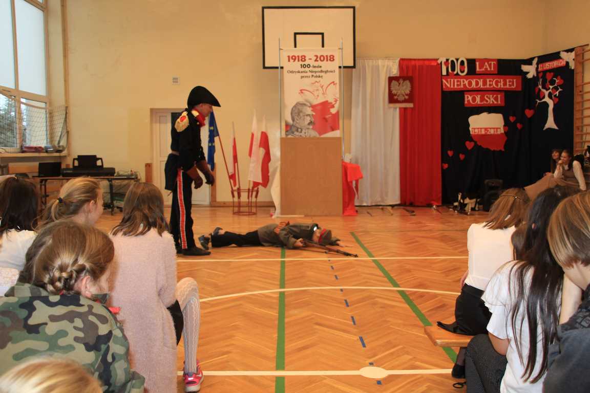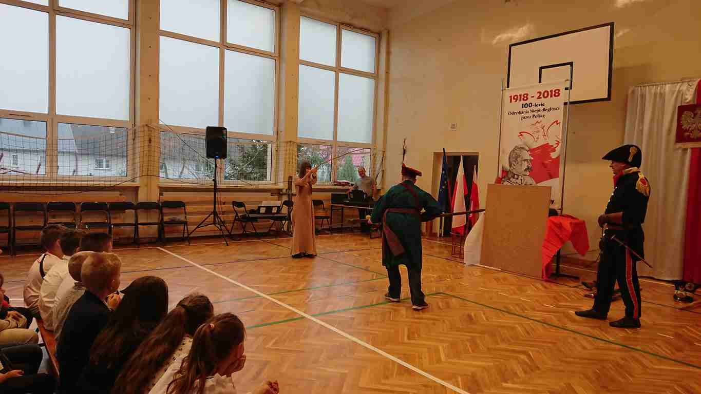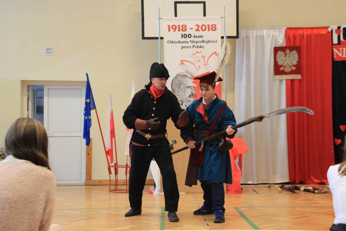 Obchody tego radosnego wydarzenia otworzyła „Żywa lekcja historii” zaprezentowana przez Chorągiew Zaciężną APIS z Gniewu. Głównym przesłaniem historycznej wędrówki w przeszłość było ukazanie społeczności szkolnej trudów drogi ku niepodległości oraz uczczenie pamięci wielu pokoleń Polaków walczących i umierających w imię najważniejszej w życiu wartości – WOLNOŚCI!