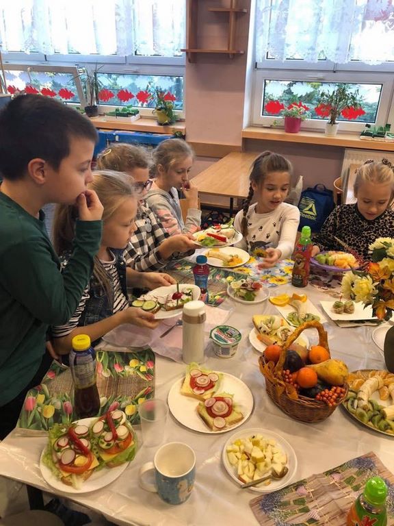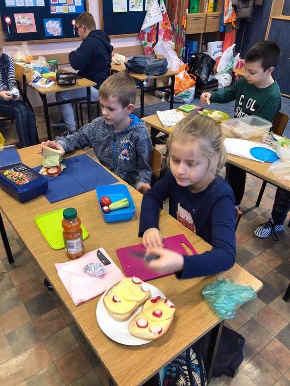 8 listopada 2018 roku uczniowie klas I-III przystąpili do akcji „Śniadanie daje moc”. Tego dnia dzieci samodzielnie przygotowały swoje drugie śniadanie, które później z wielkim apetytem zjadły. Dowiedziały się również dlaczego tak ważne jest spożywanie zdrowego i urozmaiconego jedzenia. Po analizie piramidy zdrowego odżywiania się uczniowie przyrzekli, że będą przestrzegać omówionych zasad.
