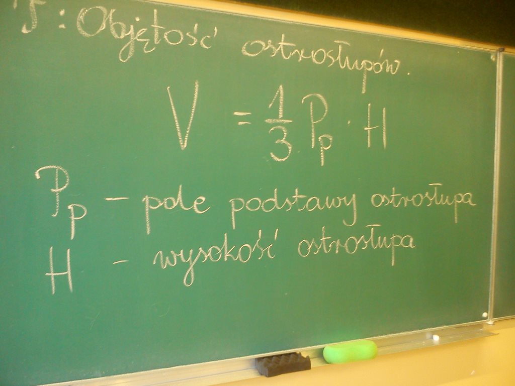 Otrzymaliśmy tajemnicze zadanie. Mieliśmy sprawdzić ile miarek ostrosłupów mieści się w graniastosłupie o takiej samej podstawie i takiej samej wysokości.