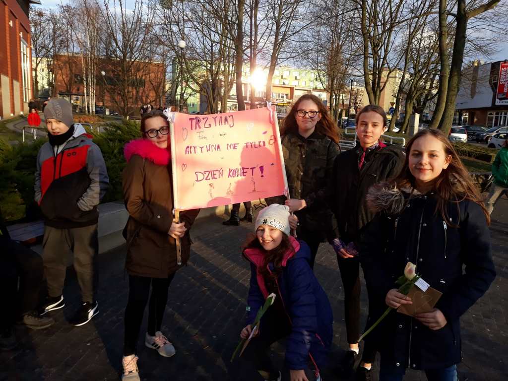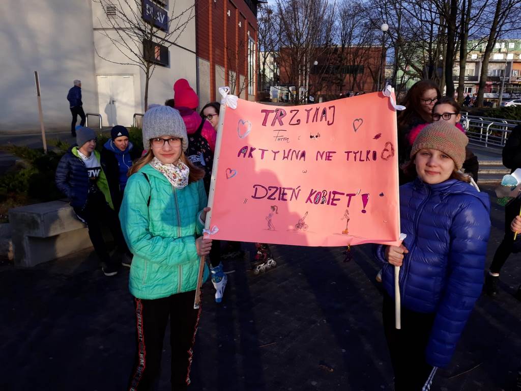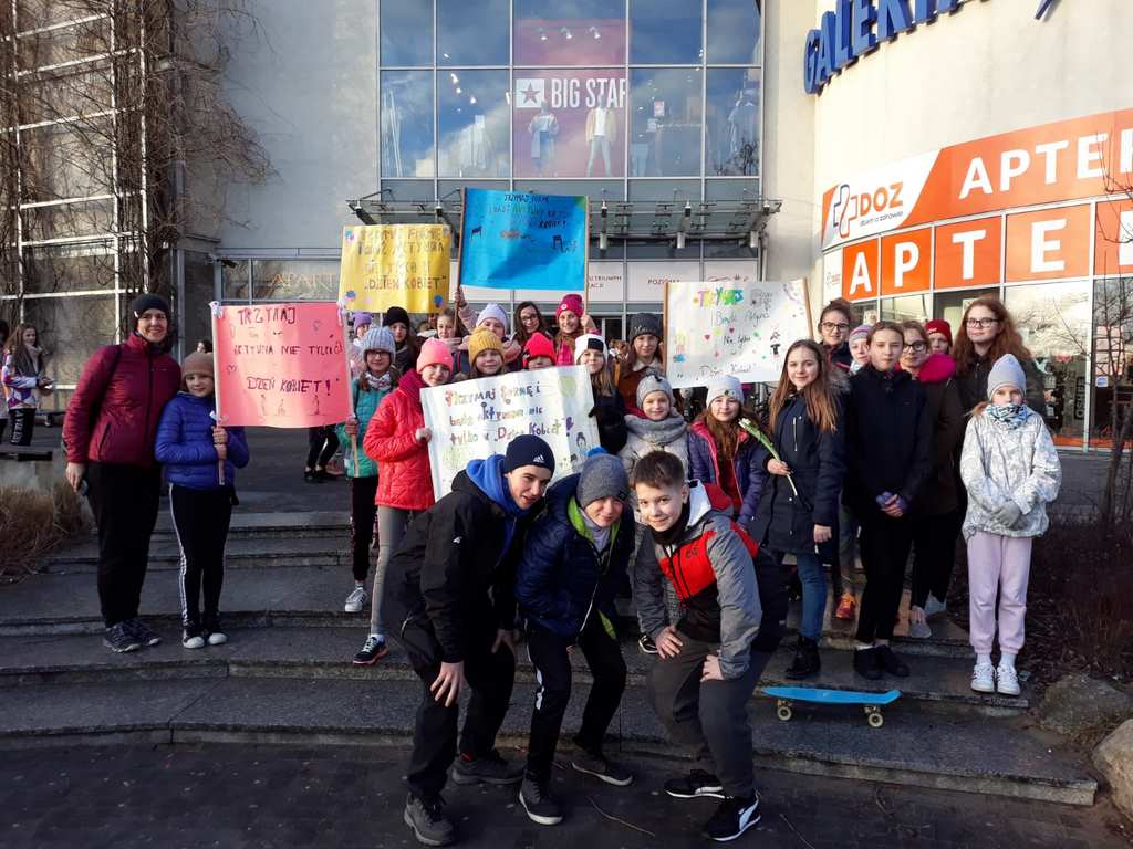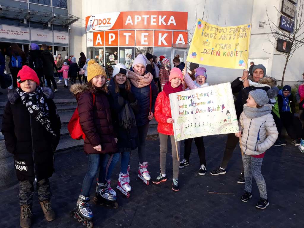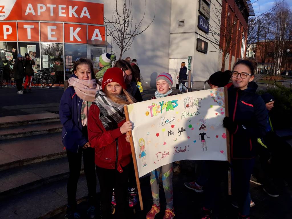 Kolejny raz 8 marca trzydziestoosobowa grupa uczennic z naszej szkoły, wspierana przez kilku chłopców z 6a, wzięła udział w happeningu z okazji Dnia Kobiet. Dziewczęta, biegnąc lub jadąc na rolkach, pokonały trasę o długości 2,5 km. Swoją postawą reklamowały szkolną akcję „Trzymaj formę”, której celem jest propagowanie aktywności fizycznej i zdrowego odżywiania wśród uczniów.