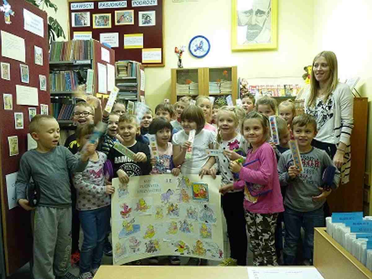 W dniach 16 – 20 listopada 2015 roku nauczyciele biblioteki szkolnej przeprowadzili pasowanie uczniów klas pierwszych na czytelnika. Panie z biblioteki i dziewczynki z Koła Bibliotecznego przeczytały dzieciom bajki z serii „Kubuś Puchatek i przyjaciele”. Następnie uczniowie tworzyli dzieło sztuki (kolorowanie postaci przyjaciół Kubusia, wycinanie, naklejanie).