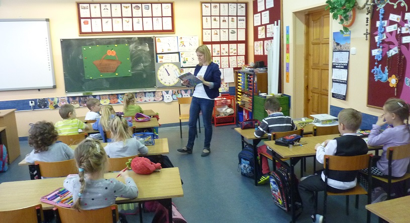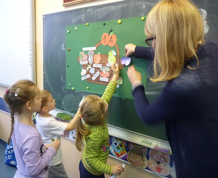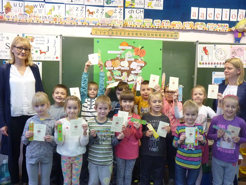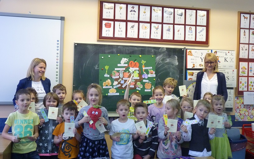 W środę 23 listopada 2016 r. najmłodsi uczniowie klas I a i I b naszej szkoły zostali uroczyście przyjęci w poczet czytelników Biblioteki Szkolnej. Nauczycielki biblioteki – p. Daria Zielińska i p. Bernadeta Szurgot wprowadziły pierwszoklasistów w świat wierszy Jana Brzechwy. Dzieci wysłuchały utworów pt. „Na straganie”, „Pomidor” i „Arbuz”. Następnie ich zadaniem było kolorowanie obrazków owoców i warzyw oraz dopasowanie do nich odpowiedniego podpisu. Z gotowych kolorowanek powstały piękne plakaty przedstawiające kosze z owocami i warzywami.