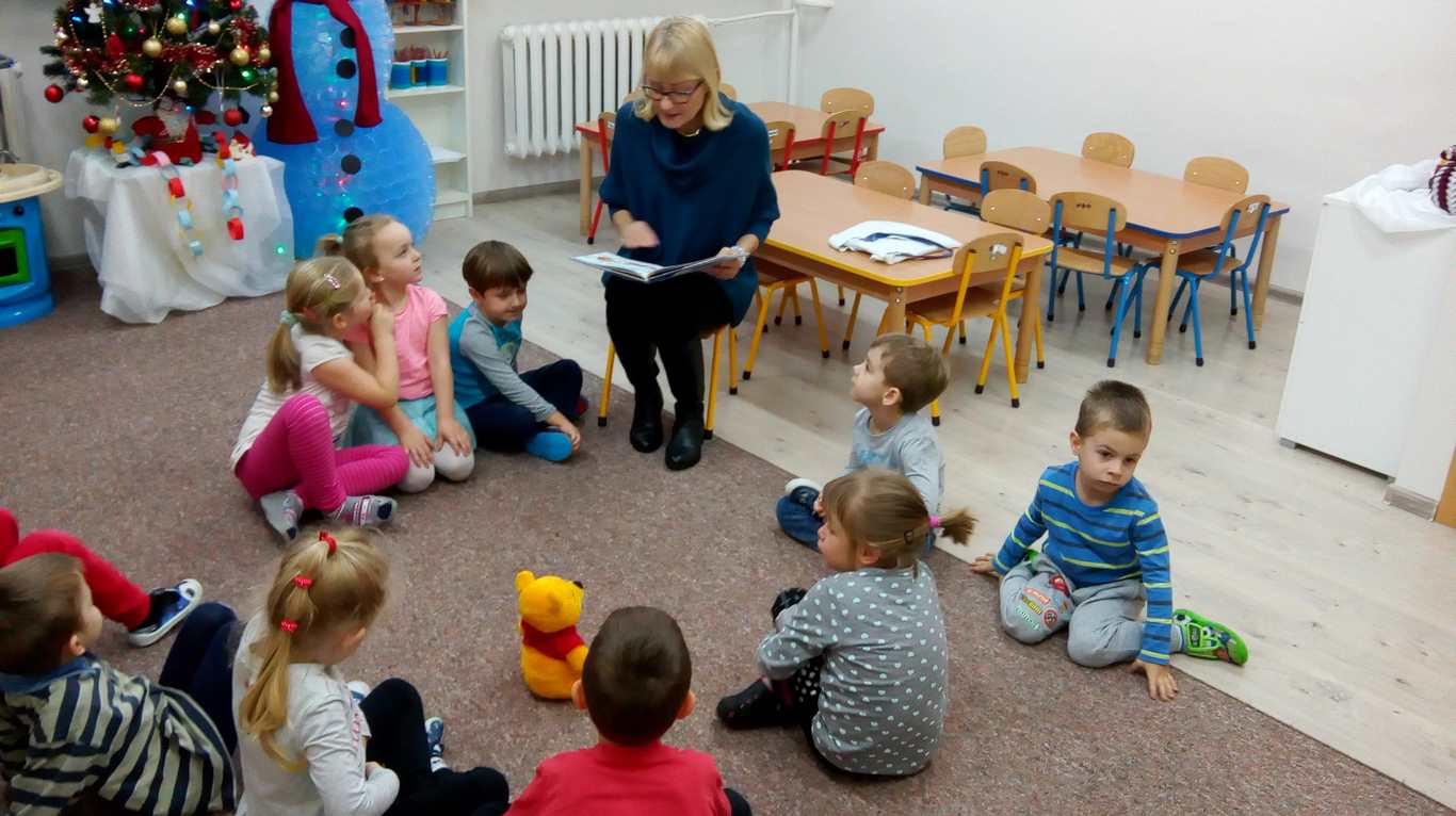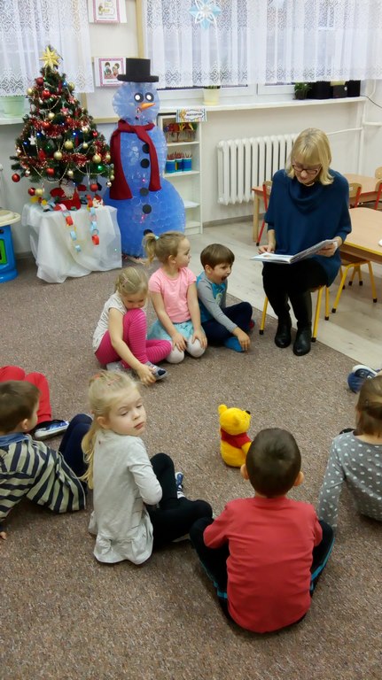 Dnia 8 grudnia 2017 roku nauczyciel biblioteki szkolnej – p. Daria Zielińska odwiedziła dzieci z Miejskiego przedszkola nr 6 w Iławie. Trzy i czterolatkom czytała bajkę Walta Disneya pt. „Gwiazdka Kubusia Puchatka”. Podczas wizyty u przedszkolaków towarzyszył również pluszowy Kubuś Puchatek. Dzieci z zainteresowaniem słuchały przygód tego wspaniałego i lubianego misia. W nagrodę otrzymały do pokolorowania obrazki przedstawiające choinkę i Mikołaja. Swoją wdzięczność okazały wręczając gościowi miłą niespodziankę. Z niecierpliwością czekają na kolejne spotkanie.