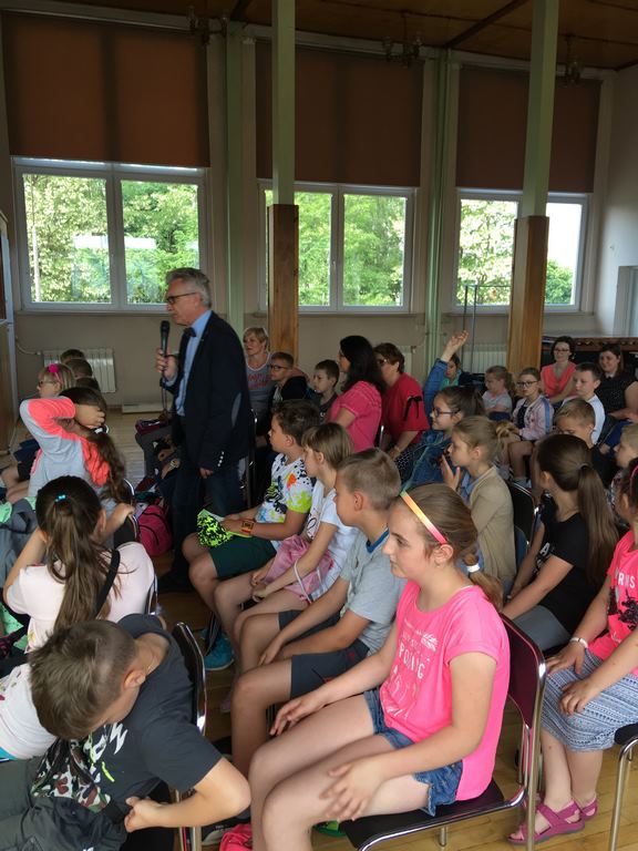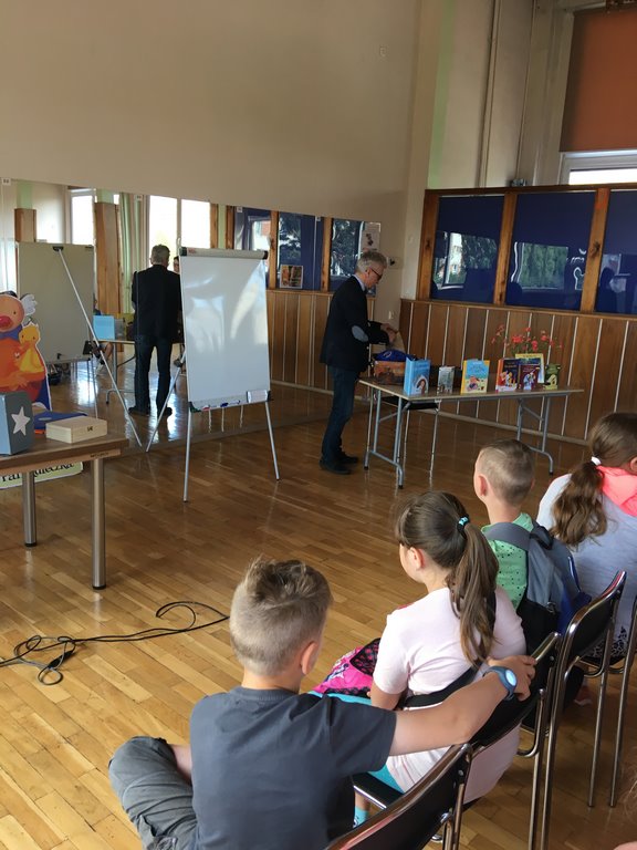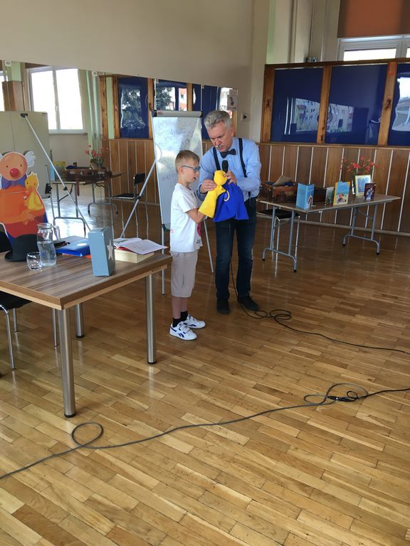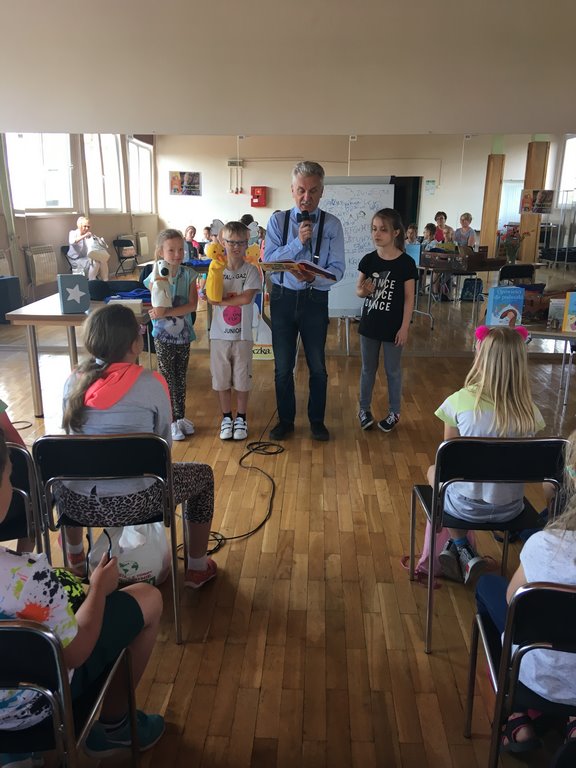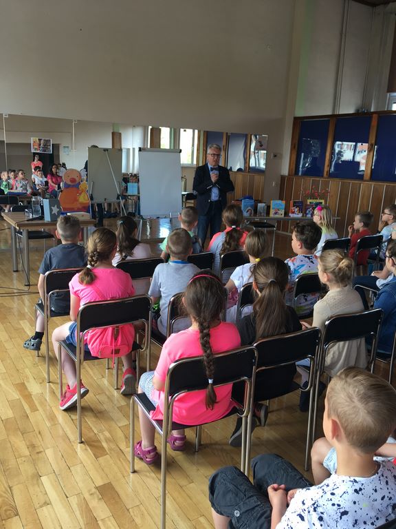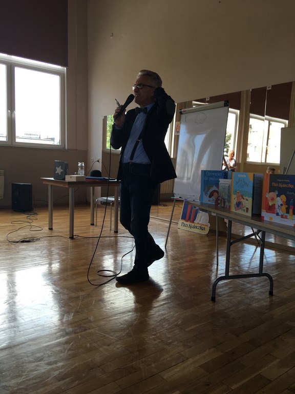 25 maja 2018 roku uczniowie klasy III c wraz z wychowawczynią panią Katarzyną Romanowską i nauczycielką biblioteki panią Darią Zielińską wzięli udział w spotkaniu z pisarzem książek dla dzieci -panem Wojciechem Widłakiem. To autor serii opowieści „Pan Kuleczka”. W bardzo sympatyczny sposób opowiedział dzieciom jak powstają jego książki. Jego opowiadanie zmieniło się w dialog poprzez nawiązanie wspaniałego kontaktu ze słuchaczami. Dziękujemy organizatorom spotkania Filii nr 2 MBP w Iławie za możliwość uczestniczenia w spotkaniu.