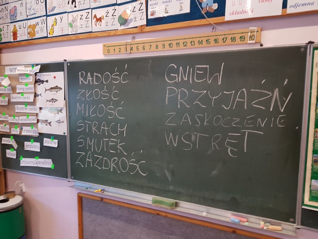 Pod koniec maja uczniowie wszystkich klas 2 uczestniczyli w zajęciach psychoedukacyjnych „Emocje – znam, nazywam, rozpoznaję”. Zajęcia prowadziła p. Aleksandra Podwalska psycholog z PCRE Poradni Psychologiczno - Pedagogicznej w Iławie. Głównym celem spotkania z gościem było omówienie czterech podstawowych emocji: radości, złości, smutku, lęku oraz doskonalenie umiejętności nazywania i konstruktywnego wyrażania emocji. Uczniowie bawiąc się kształtowali także takie zdolności jak: współpraca, tolerancja i akceptacja innych, nawiązywanie pozytywnych relacji.
