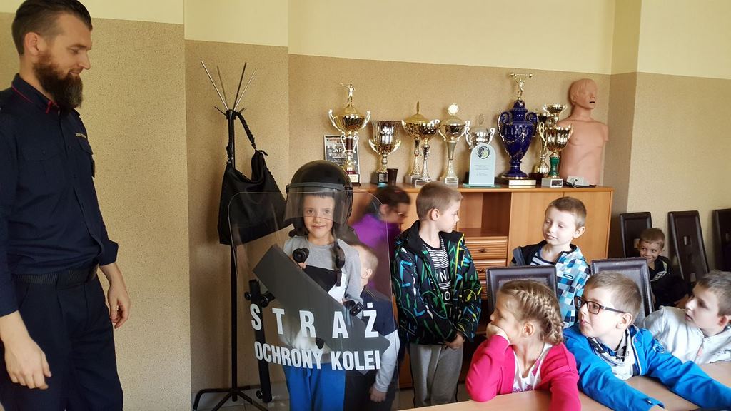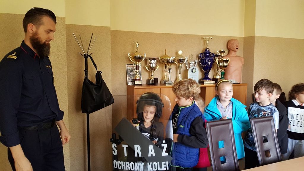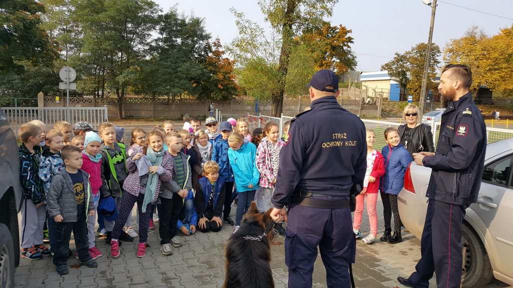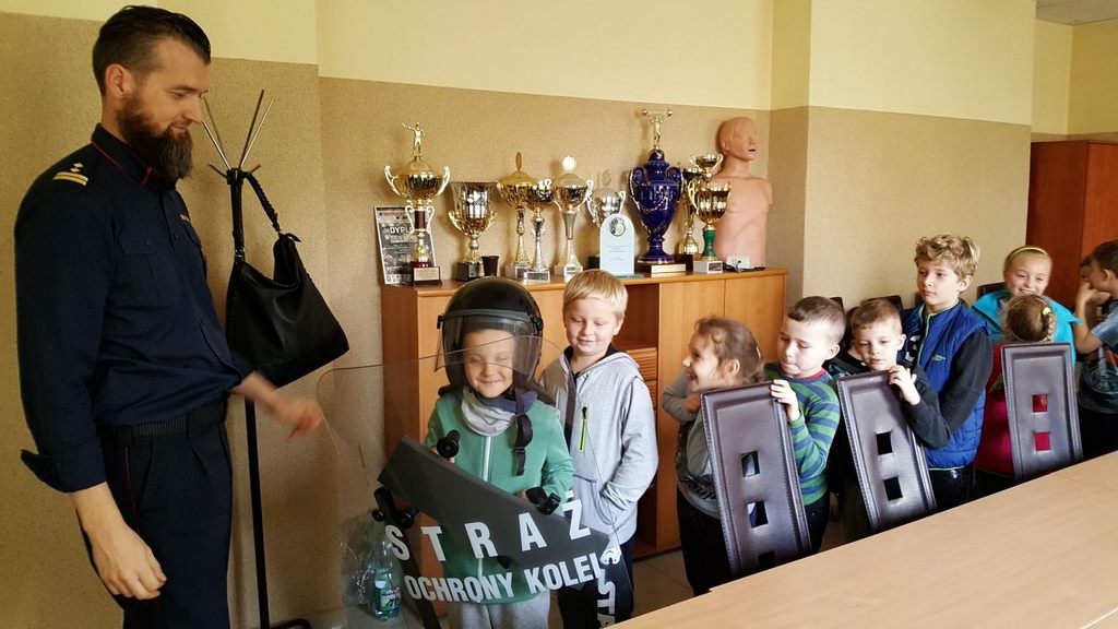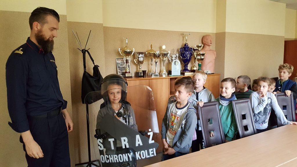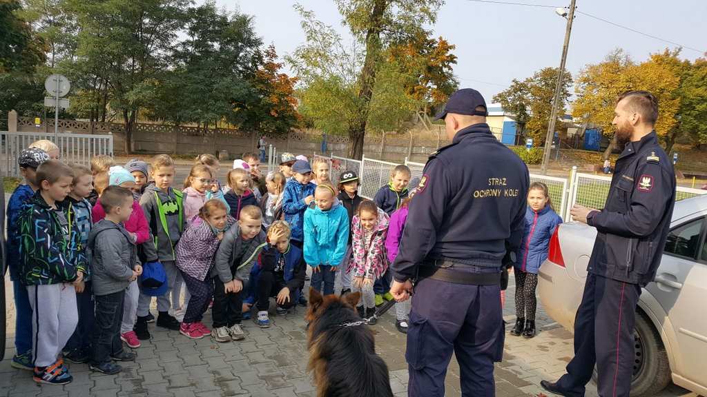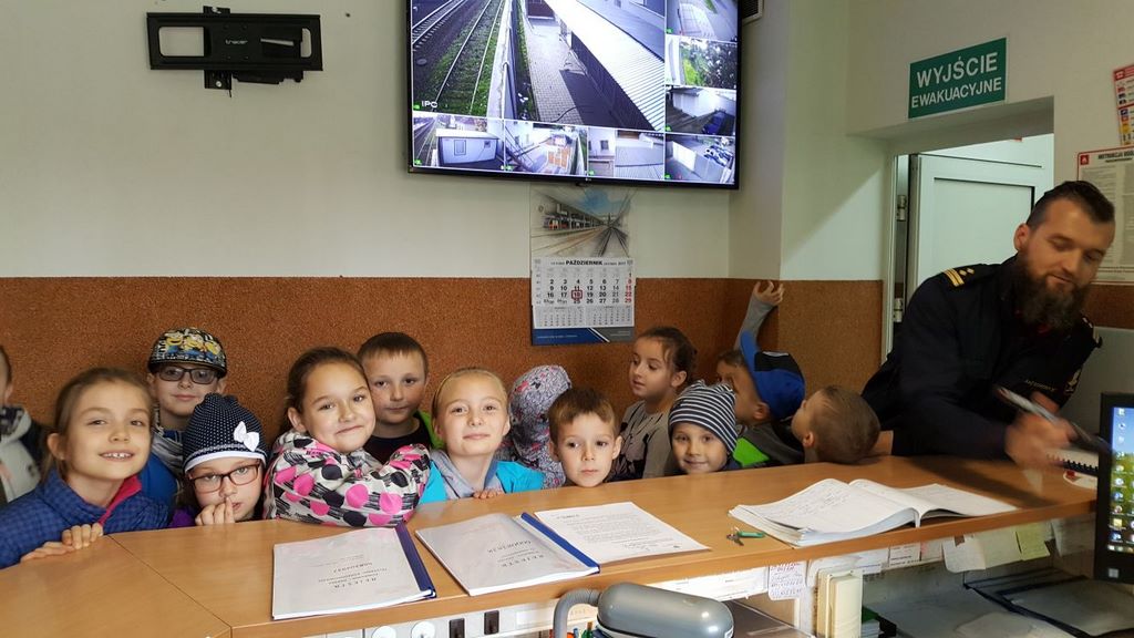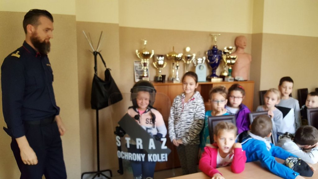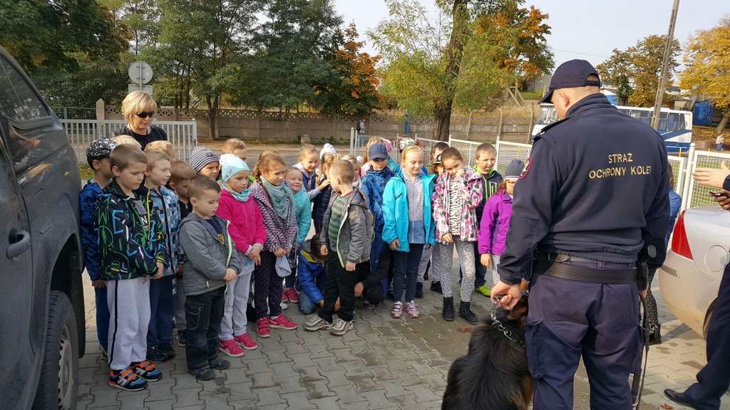 18 października klasy II a i III c, w ramach kontynuacji akcji „Bezpieczny przejazd kolejowy”, udały się na spotkanie z przedstawicielami PKP. Dzieci miały okazję poznać na jakich zasadach działa ochrona pasażerów i mienia PKP. Okazało się, że oprócz ludzi w działaniach biorą udział wyszkolone psy. Na dzieciach duże wrażenie zrobiło wyposażenie funkcjonariuszy ochrony. Uczniowie utrwalali zasady bezpieczeństwa podczas przebywania na dworcu, a także podczas przechodzenia przez przejazd kolejowy. Po zwiedzaniu budynku dworca, obdarowani upominkami, dzieci w doskonałych humorach wróciły do szkoły.