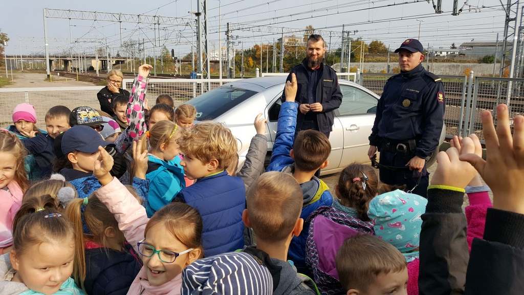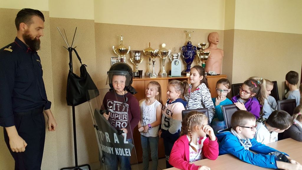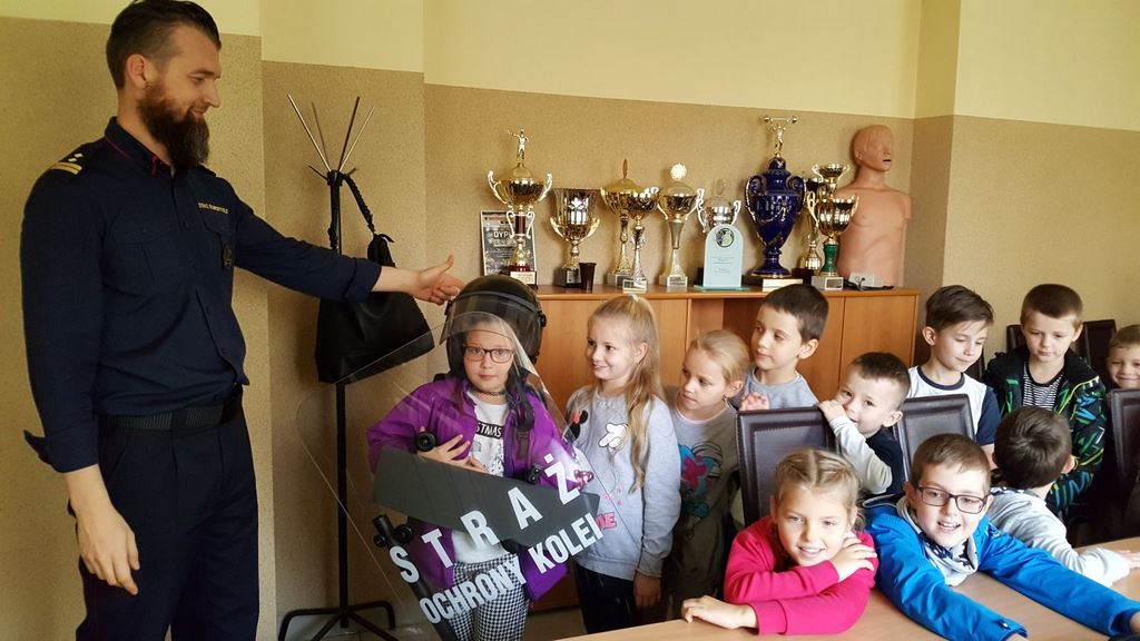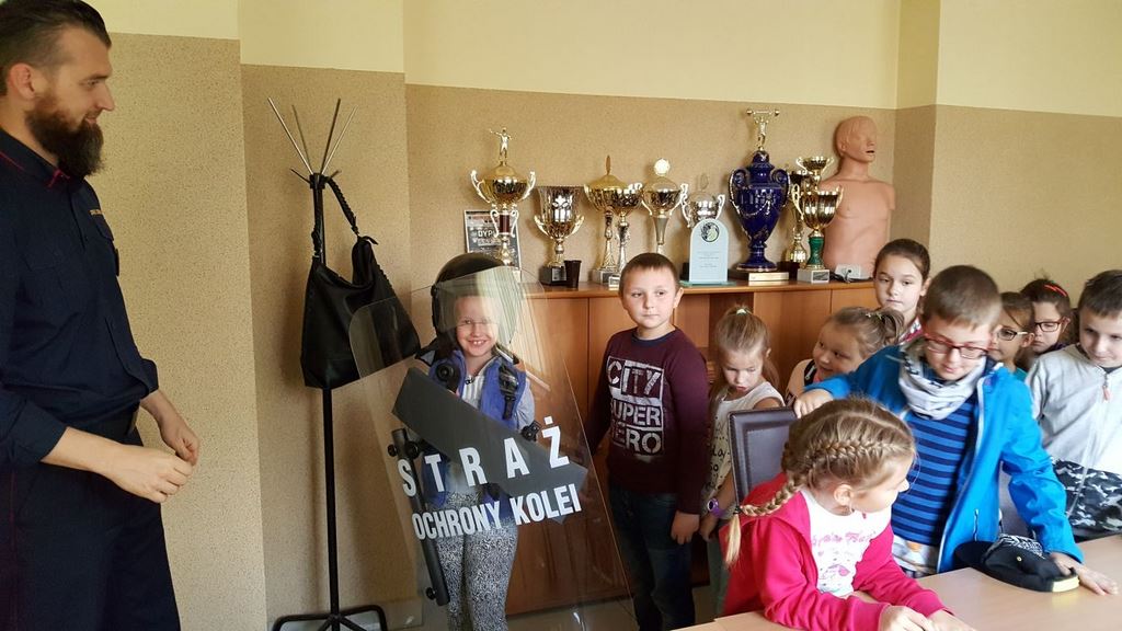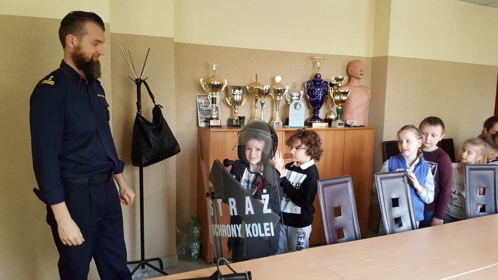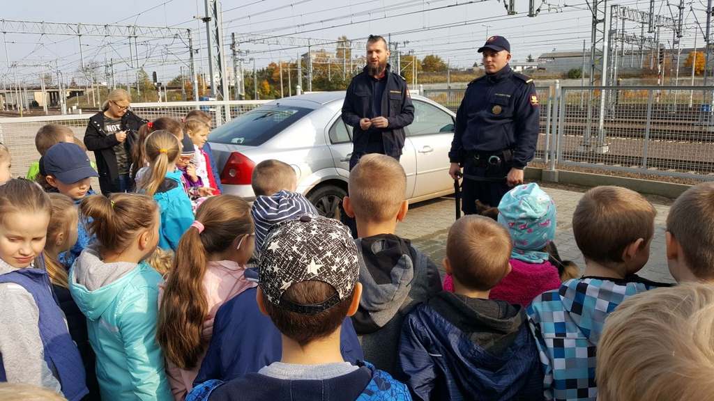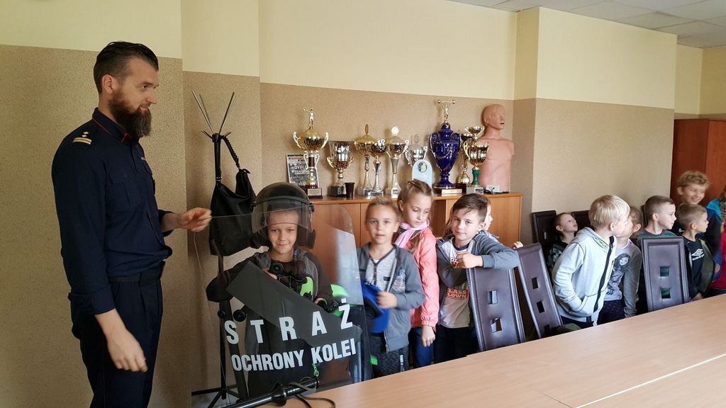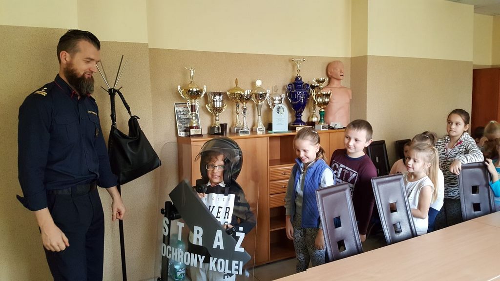18 października klasy II a i III c, w ramach kontynuacji akcji „Bezpieczny przejazd kolejowy”, udały się na spotkanie z przedstawicielami PKP. Dzieci miały okazję poznać na jakich zasadach działa ochrona pasażerów i mienia PKP. Okazało się, że oprócz ludzi w działaniach biorą udział wyszkolone psy. Na dzieciach duże wrażenie zrobiło wyposażenie funkcjonariuszy ochrony. Uczniowie utrwalali zasady bezpieczeństwa podczas przebywania na dworcu, a także podczas przechodzenia przez przejazd kolejowy. Po zwiedzaniu budynku dworca, obdarowani upominkami, dzieci w doskonałych humorach wróciły do szkoły.