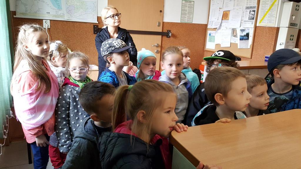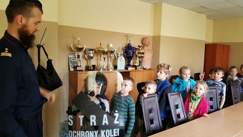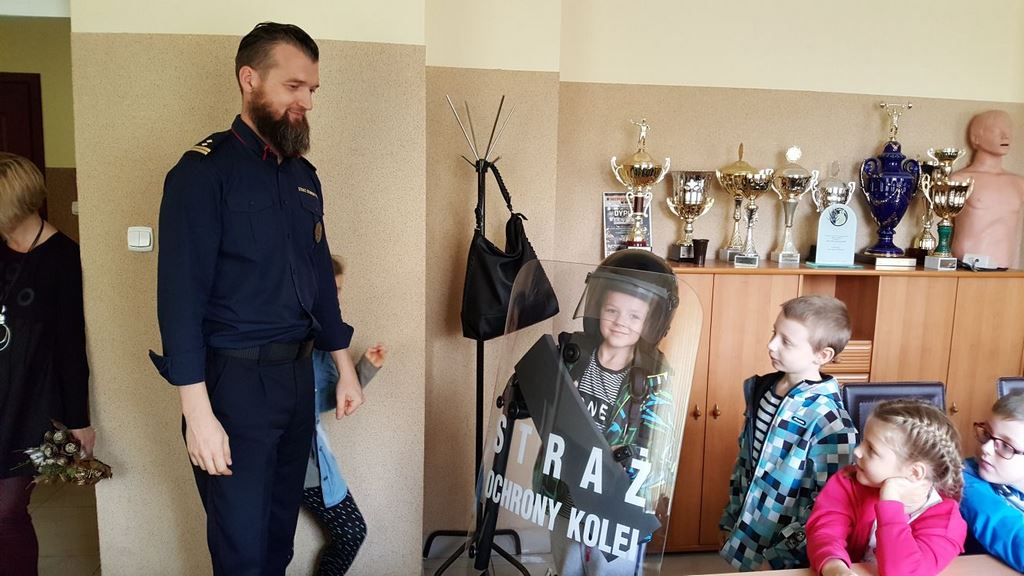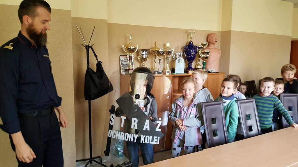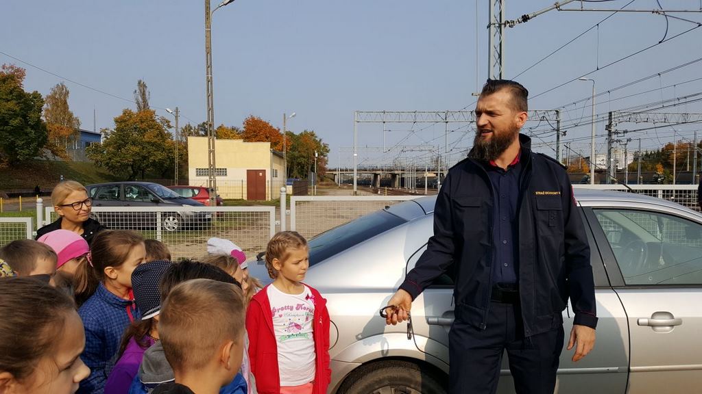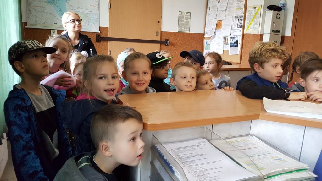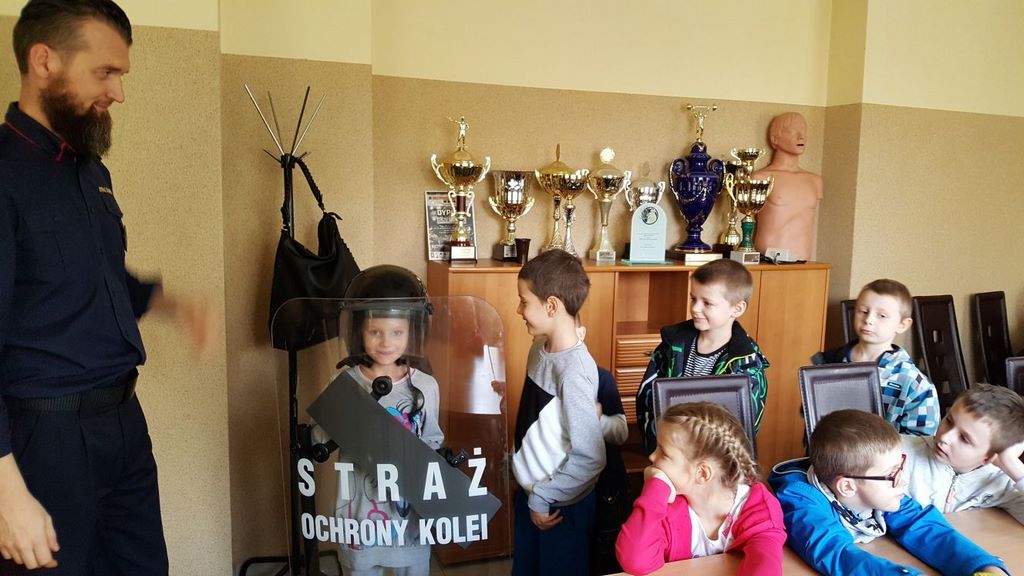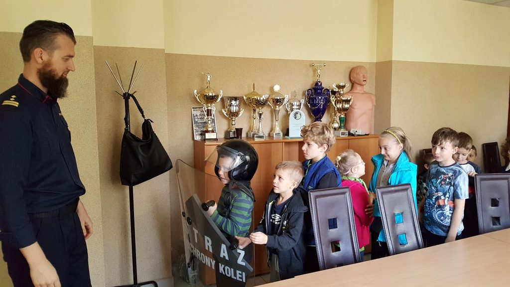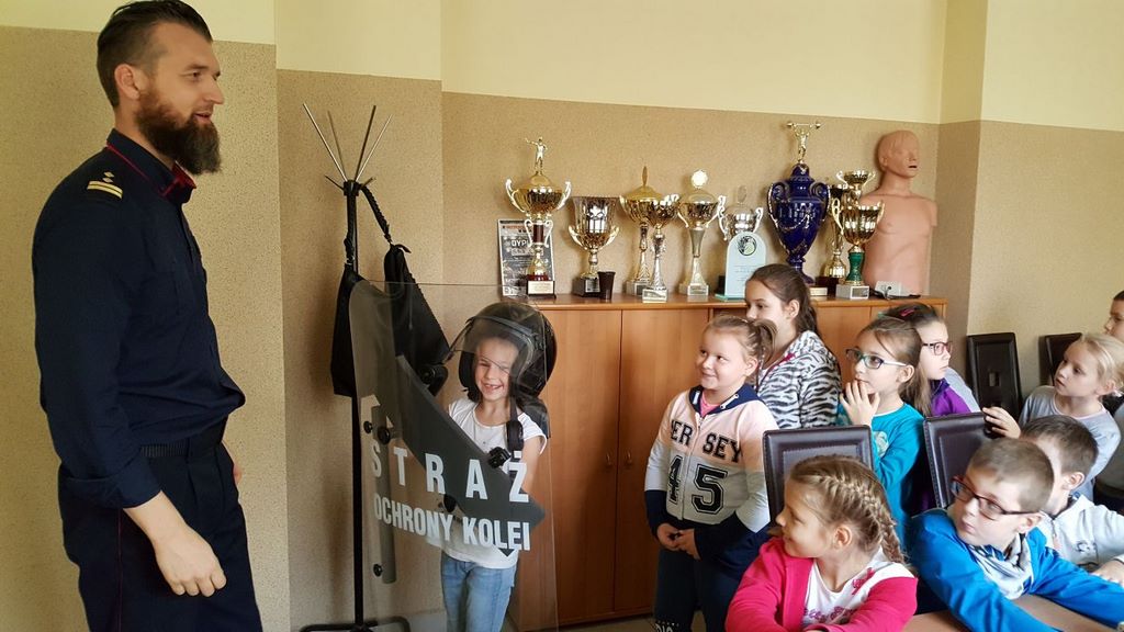 18 października klasy II a i III c, w ramach kontynuacji akcji „Bezpieczny przejazd kolejowy”, udały się na spotkanie z przedstawicielami PKP. Dzieci miały okazję poznać na jakich zasadach działa ochrona pasażerów i mienia PKP. Okazało się, że oprócz ludzi w działaniach biorą udział wyszkolone psy. Na dzieciach duże wrażenie zrobiło wyposażenie funkcjonariuszy ochrony. Uczniowie utrwalali zasady bezpieczeństwa podczas przebywania na dworcu, a także podczas przechodzenia przez przejazd kolejowy. Po zwiedzaniu budynku dworca, obdarowani upominkami, dzieci w doskonałych humorach wróciły do szkoły.