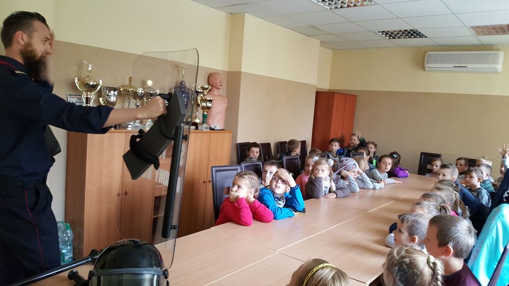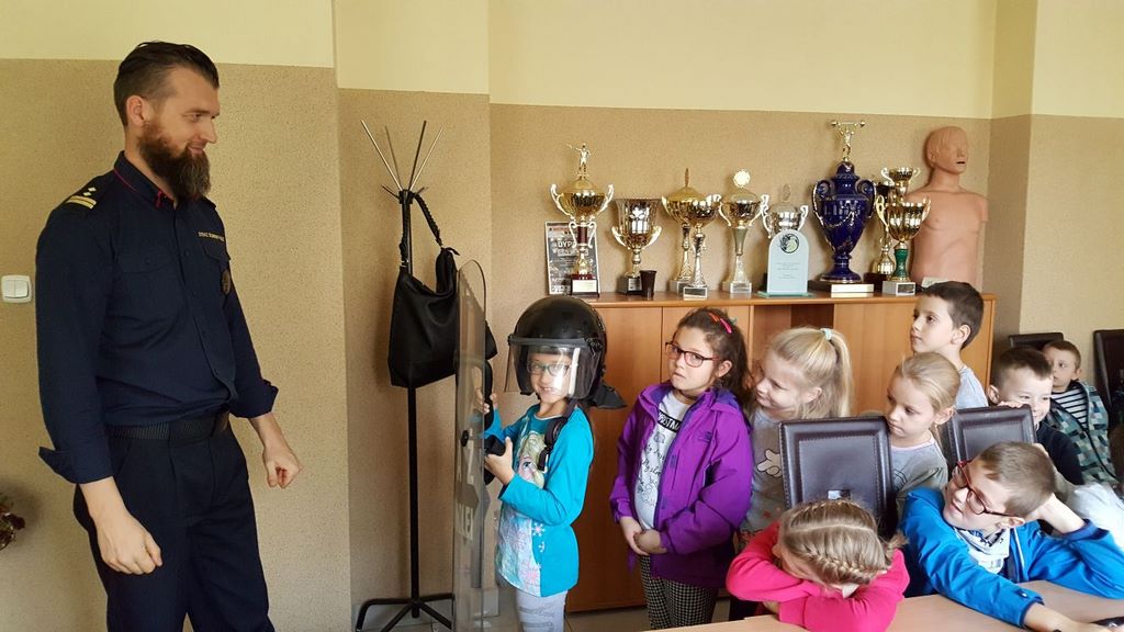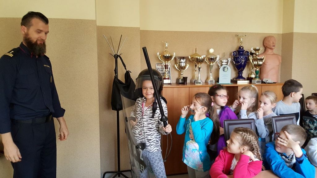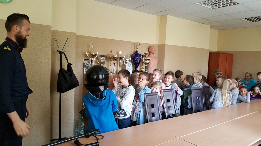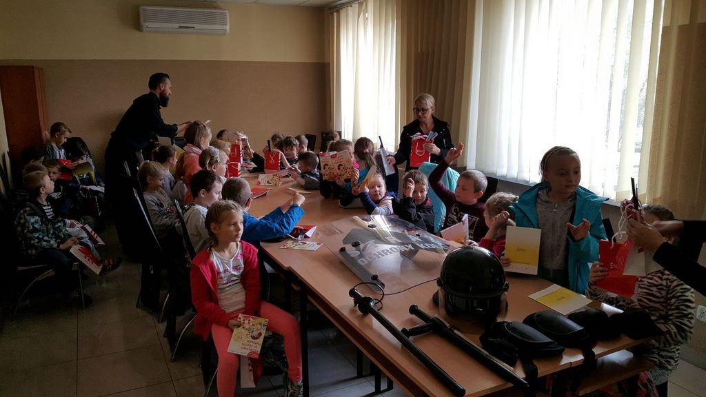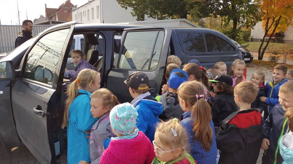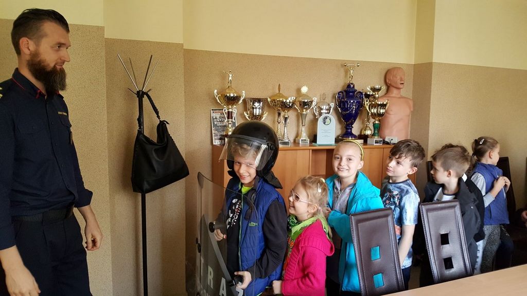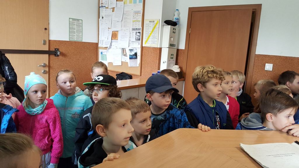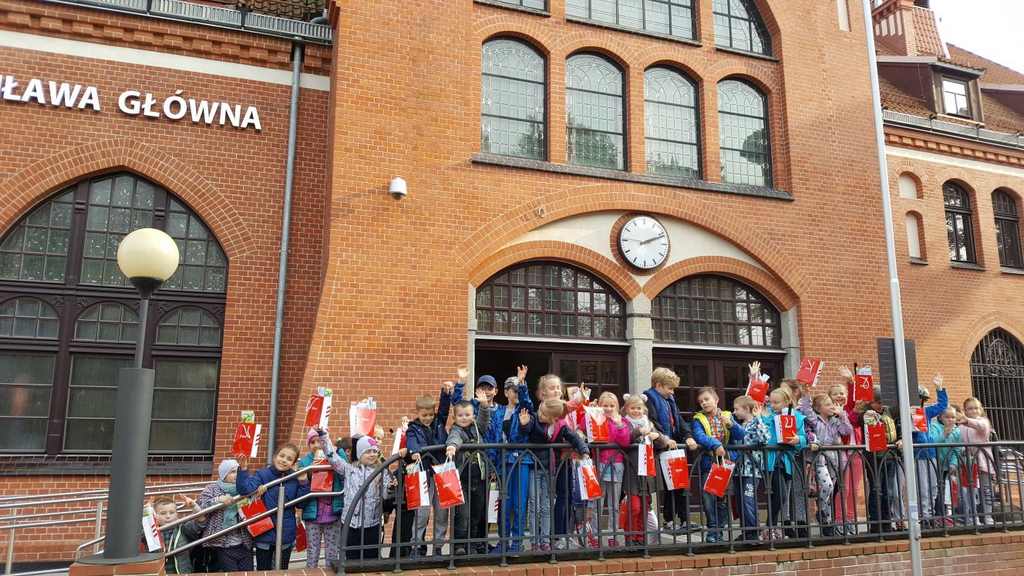 18 października klasy II a i III c, w ramach kontynuacji akcji „Bezpieczny przejazd kolejowy”, udały się na spotkanie z przedstawicielami PKP. Dzieci miały okazję poznać na jakich zasadach działa ochrona pasażerów i mienia PKP. Okazało się, że oprócz ludzi w działaniach biorą udział wyszkolone psy. Na dzieciach duże wrażenie zrobiło wyposażenie funkcjonariuszy ochrony. Uczniowie utrwalali zasady bezpieczeństwa podczas przebywania na dworcu, a także podczas przechodzenia przez przejazd kolejowy. Po zwiedzaniu budynku dworca, obdarowani upominkami, dzieci w doskonałych humorach wróciły do szkoły.