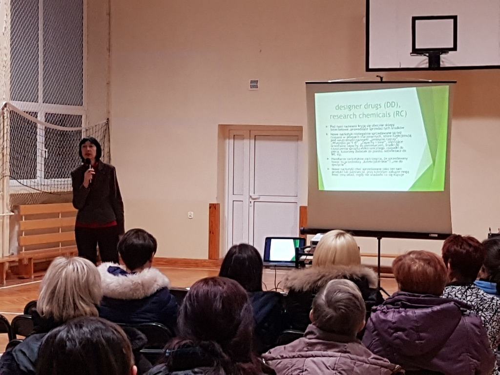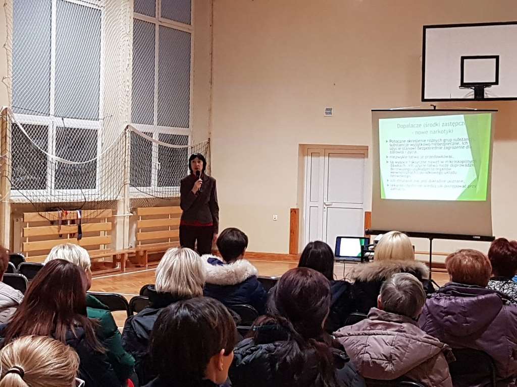 W związku z istniejącym zagrożeniem rozpowszechniania i zażywania tzw. „dopalaczy” wśród dzieci i młodzieży, w styczniu w naszej szkole zorganizowano dla rodziców uczniów kl. V-VII i nauczycieli prelekcję, dotyczącą szkodliwości używania „dopalaczy”. Pani mgr Iwona Marchlewska pracownik Promocji Zdrowia i Oświaty Zdrowotnej Powiatowej Stacji Sanitarno-Epidemiologicznej w Iławie omówiła temat zapobiegania i szkodliwości zażywania tzw. „dopalaczy” w oparciu o prezentację multimedialną. Tematyka, która została poruszona spotkała się z dużym zainteresowaniem rodziców.