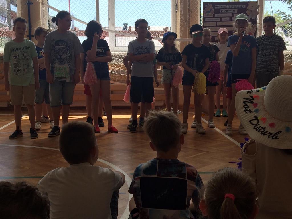 W naszej szkole od 16 lat w maju realizowany jest program wychowawczy „Będę Czwartakiem”. Celem głównym podjętych działań w ramach tego programu jest złagodzenie obaw trzecioklasistów przed zmianami jakie czekają na nich w klasie IV. Realizacja jego została zakończona imprezą kulturalno-rozrywkową „Czwartaki prezentują”, która odbyła się w tym roku szkolnym 05.06.2019 r.