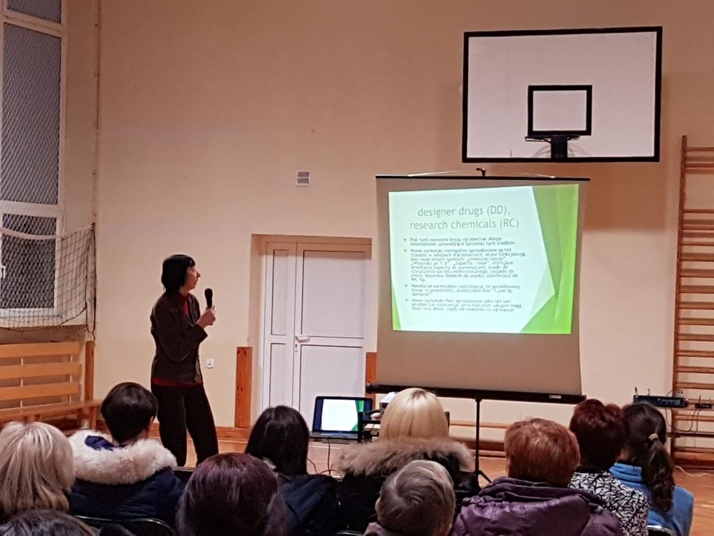 W związku z istniejącym zagrożeniem rozpowszechniania i zażywania tzw. „dopalaczy” wśród dzieci i młodzieży, w styczniu w naszej szkole zorganizowano dla rodziców uczniów kl. V-VII i nauczycieli prelekcję, dotyczącą szkodliwości używania „dopalaczy”. Pani mgr Iwona Marchlewska pracownik Promocji Zdrowia i Oświaty Zdrowotnej Powiatowej Stacji Sanitarno-Epidemiologicznej w Iławie omówiła temat zapobiegania i szkodliwości zażywania tzw. „dopalaczy” w oparciu o prezentację multimedialną. Tematyka, która została poruszona spotkała się z dużym zainteresowaniem rodziców.