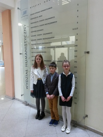 31 marca 2017 roku w Olsztynie na Uniwersytecie Warmińsko-Mazurskim odbył się trzeci finałowy etap ogólnopolskich konkursów humanistycznych. Uczestniczyli w nim finaliści z naszej szkoły: Zofia Kozibska z klasy 3 b, Aleksandra Wacławska z klasy 3 d i Krzysztof Karwat z klasy 3 d.