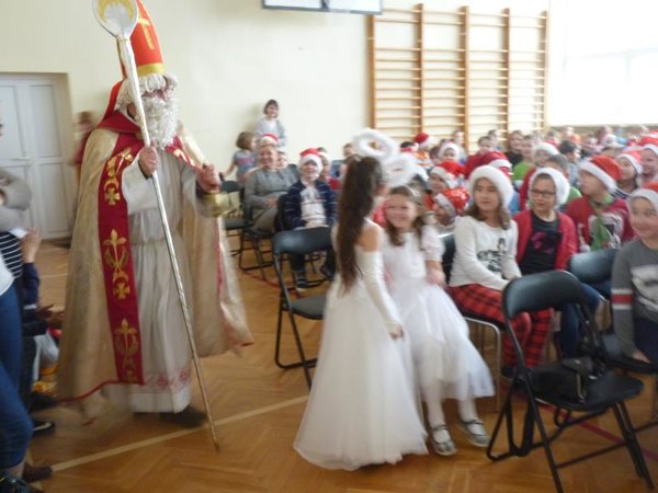 Klasy I-III obejrzały piękne przedstawienie przygotowane przez kl. III c pod opieką p. Pauliny Smolińskiej i również odwiedził je Święty Mikołaj. Dzieci z radością go przywitały i chętnie dla niego zaśpiewały. Św. Mikołaj otrzymał też od dzieci własnoręcznie wykonane laurki, które bardzo go ucieszyły.