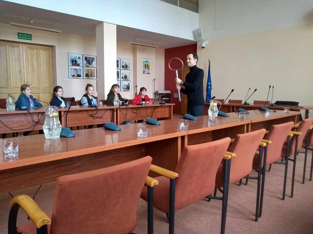 w Kamieńcu. Punktem kulminacyjnym wycieczki było zwiedzanie iławskiego ratusza. W sali sesyjnej Przewodniczący Rady Miasta, Pan Michał Młotek opowiedział nam o historii siedziby władz miejskich. Obejrzeliśmy zdjęcia osób zasłużonych dla naszego miasta. Finał wycieczki to wejście na wieżę ratuszową. Przed nami kolejne wyprawy.