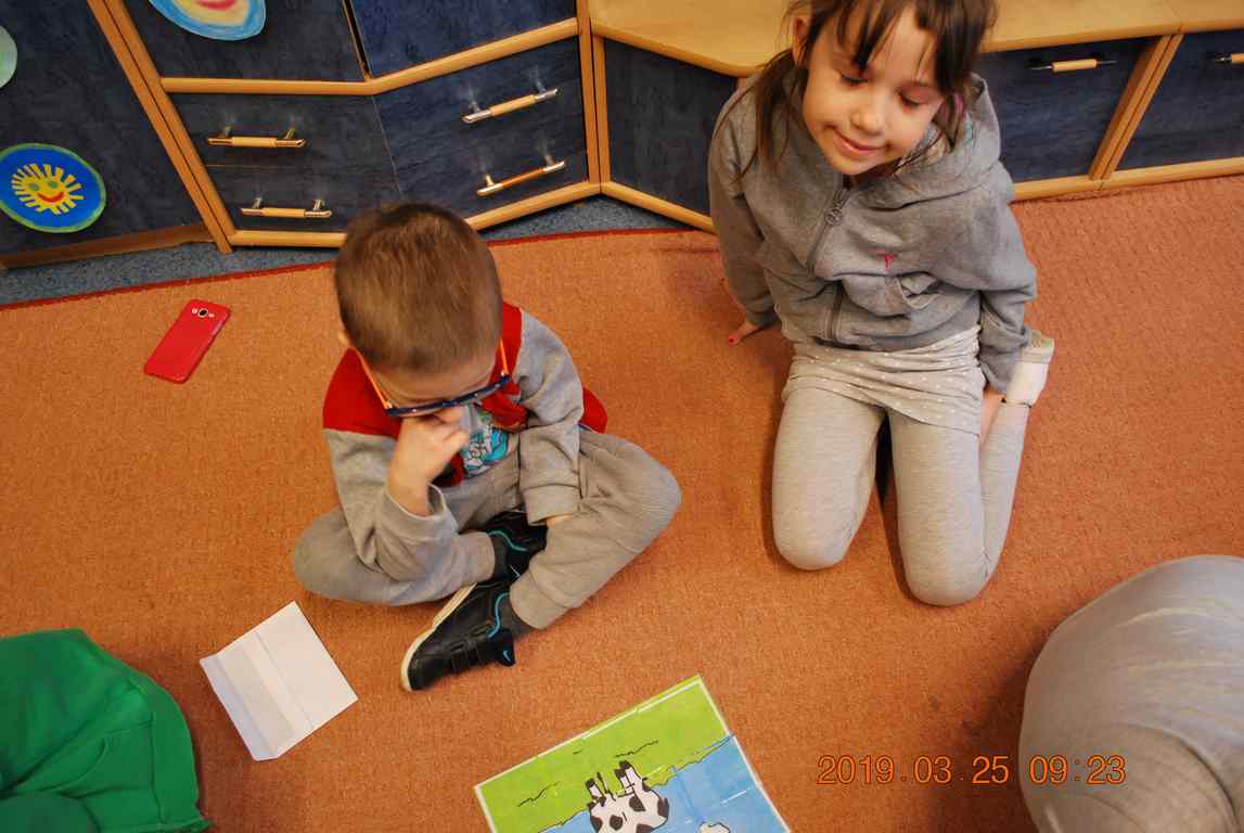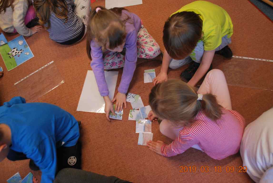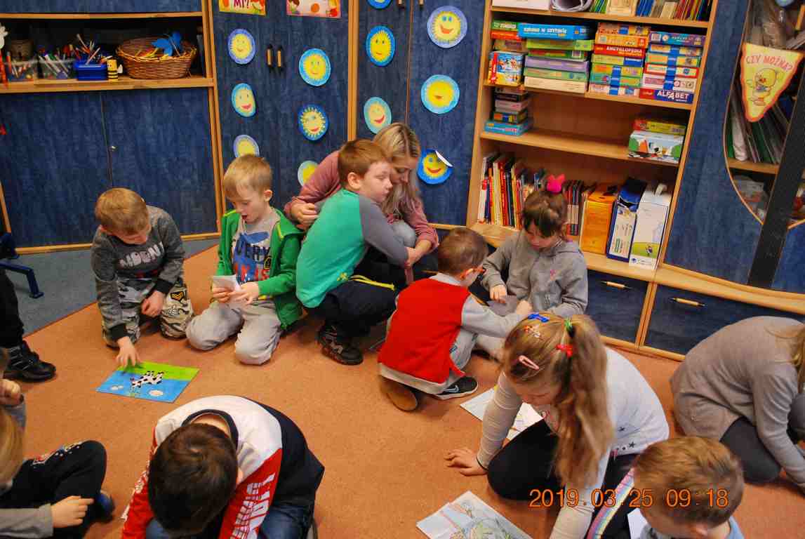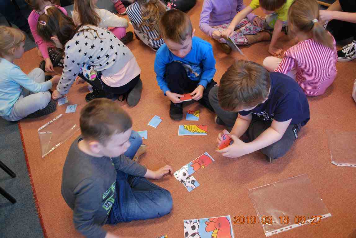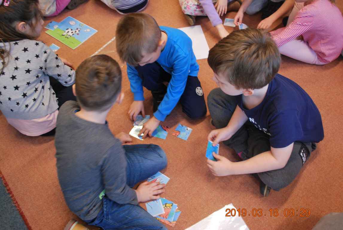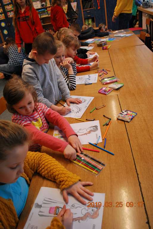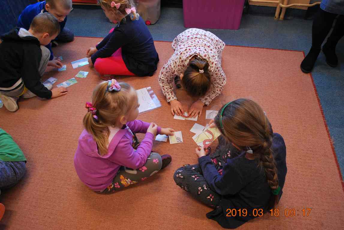 Na początku spotkania przedszkolaki wysłuchały z ogromną uwagą i zainteresowaniem „Legendy o Smokach Jeziorakowych” autorstwa Natalii Brzozowskiej - uczennicy klasy 7a. Zaciekawienie i zaangażowanie towarzyszyły małym gościom przy wykonywaniu kolejnych zadań, które związane były z wcześniej poznaną historią o potworach. Puzzle, kolorowanki, zgadywanki, a także zabawę muzyczną przygotowali uczniowie z klasy 7a, niezwykle zaangażowani w ten projekt.