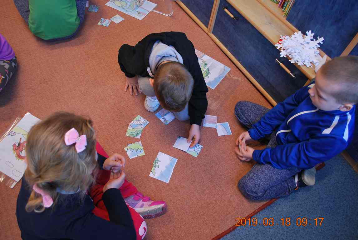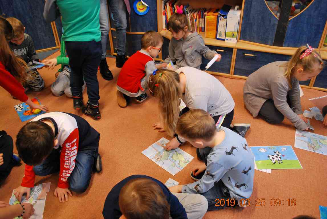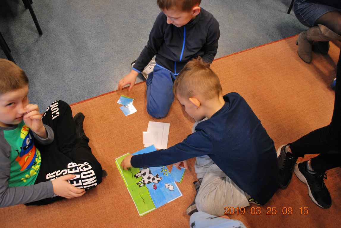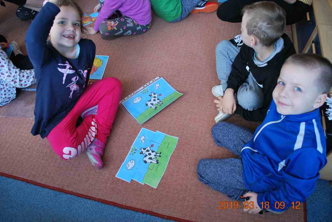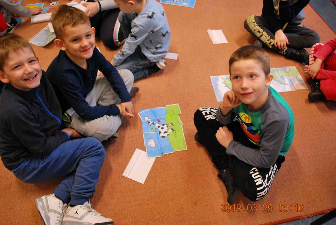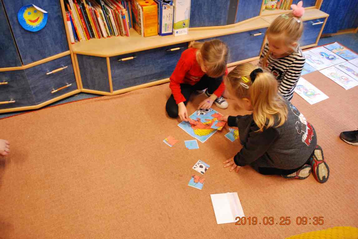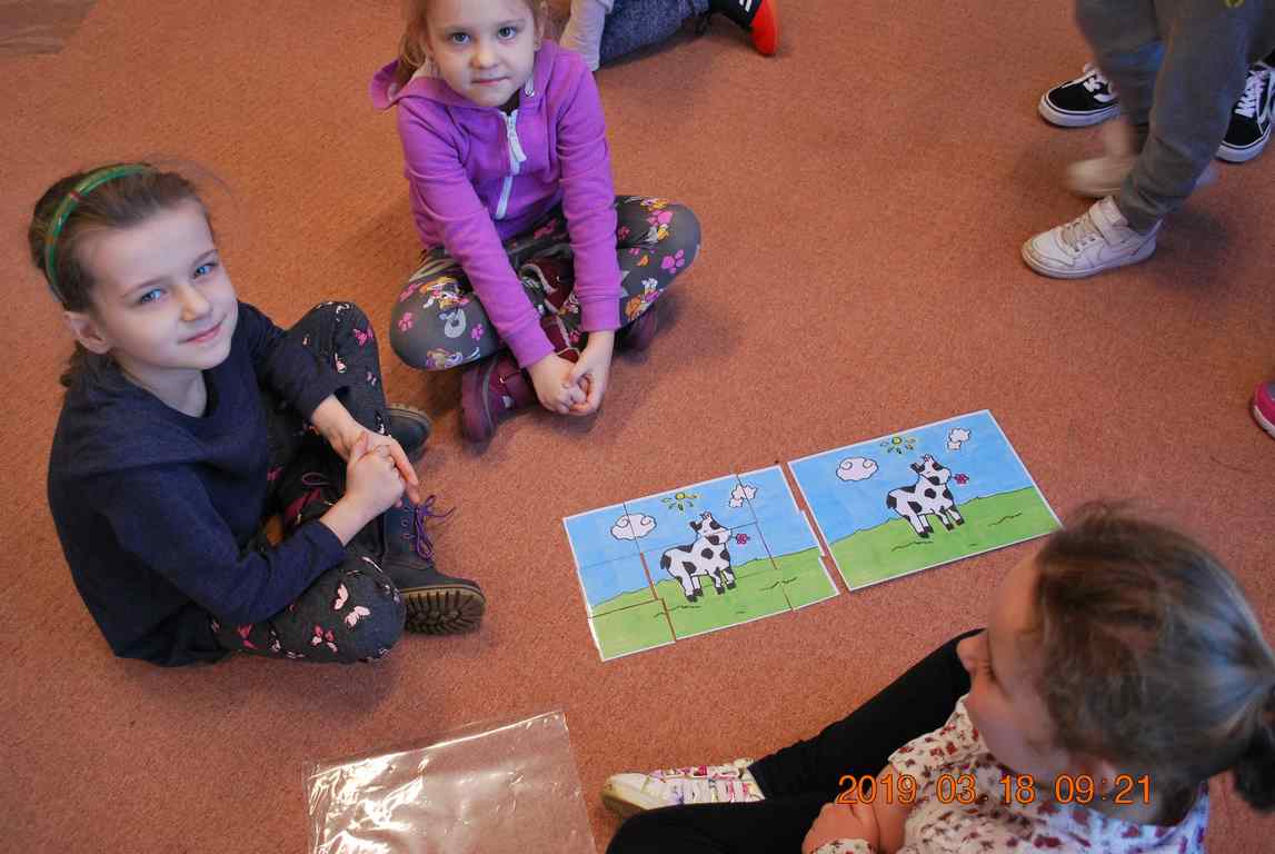 Na początku spotkania przedszkolaki wysłuchały z ogromną uwagą i zainteresowaniem „Legendy o Smokach Jeziorakowych” autorstwa Natalii Brzozowskiej - uczennicy klasy 7a. Zaciekawienie i zaangażowanie towarzyszyły małym gościom przy wykonywaniu kolejnych zadań, które związane były z wcześniej poznaną historią o potworach. Puzzle, kolorowanki, zgadywanki, a także zabawę muzyczną przygotowali uczniowie z klasy 7a, niezwykle zaangażowani w ten projekt.