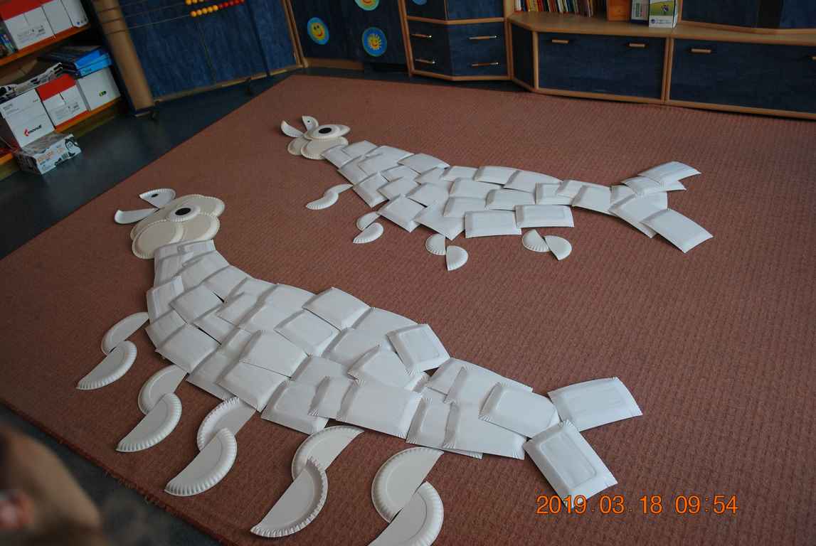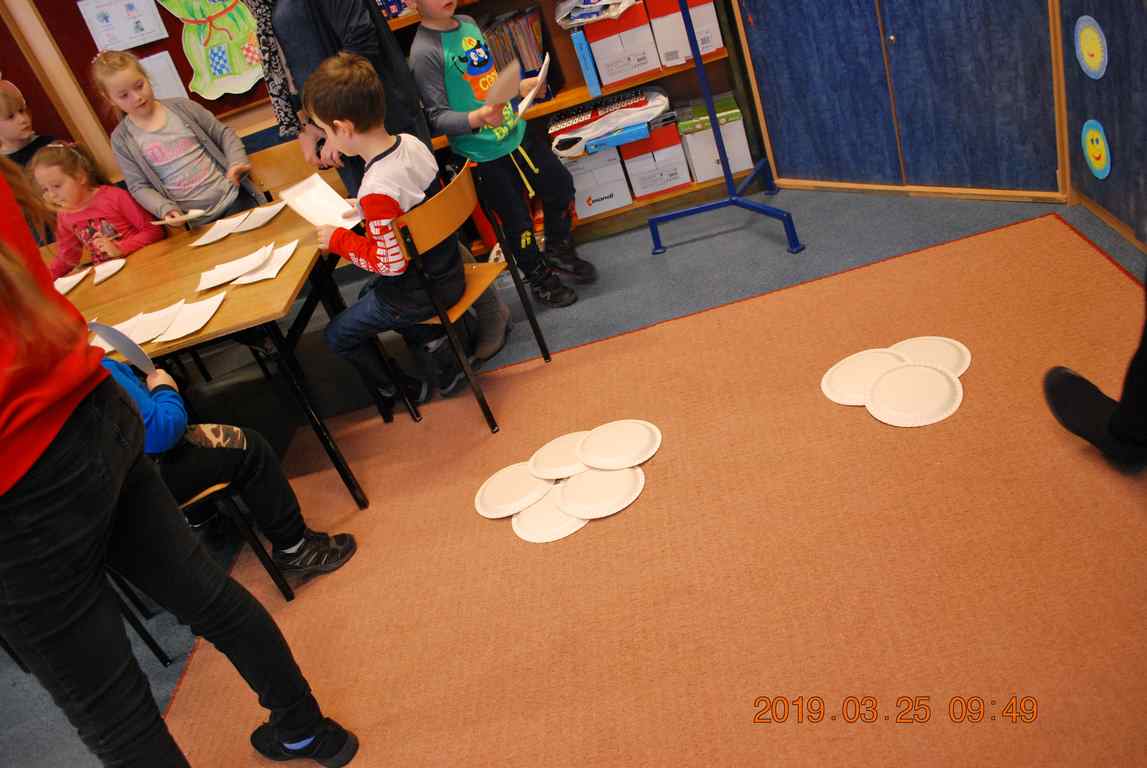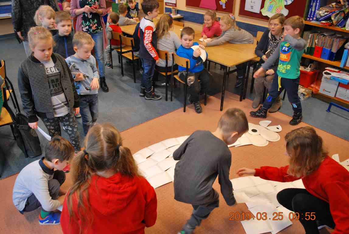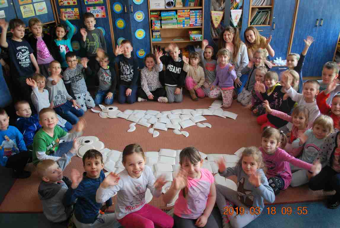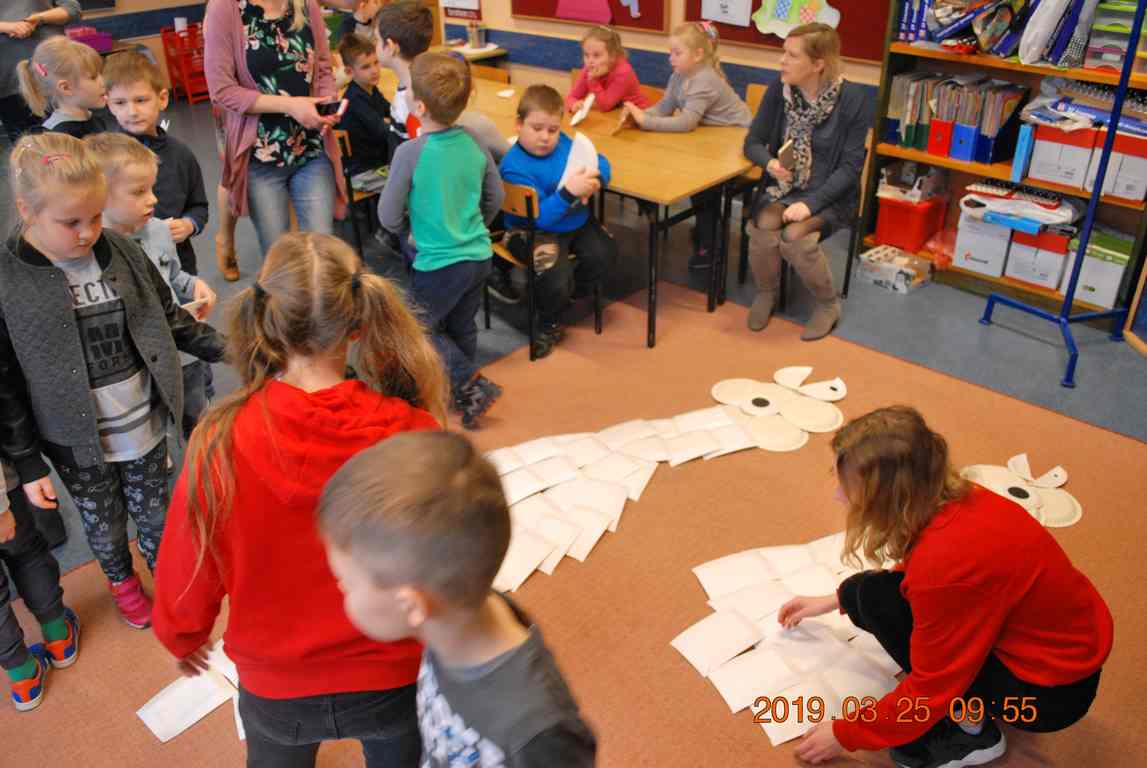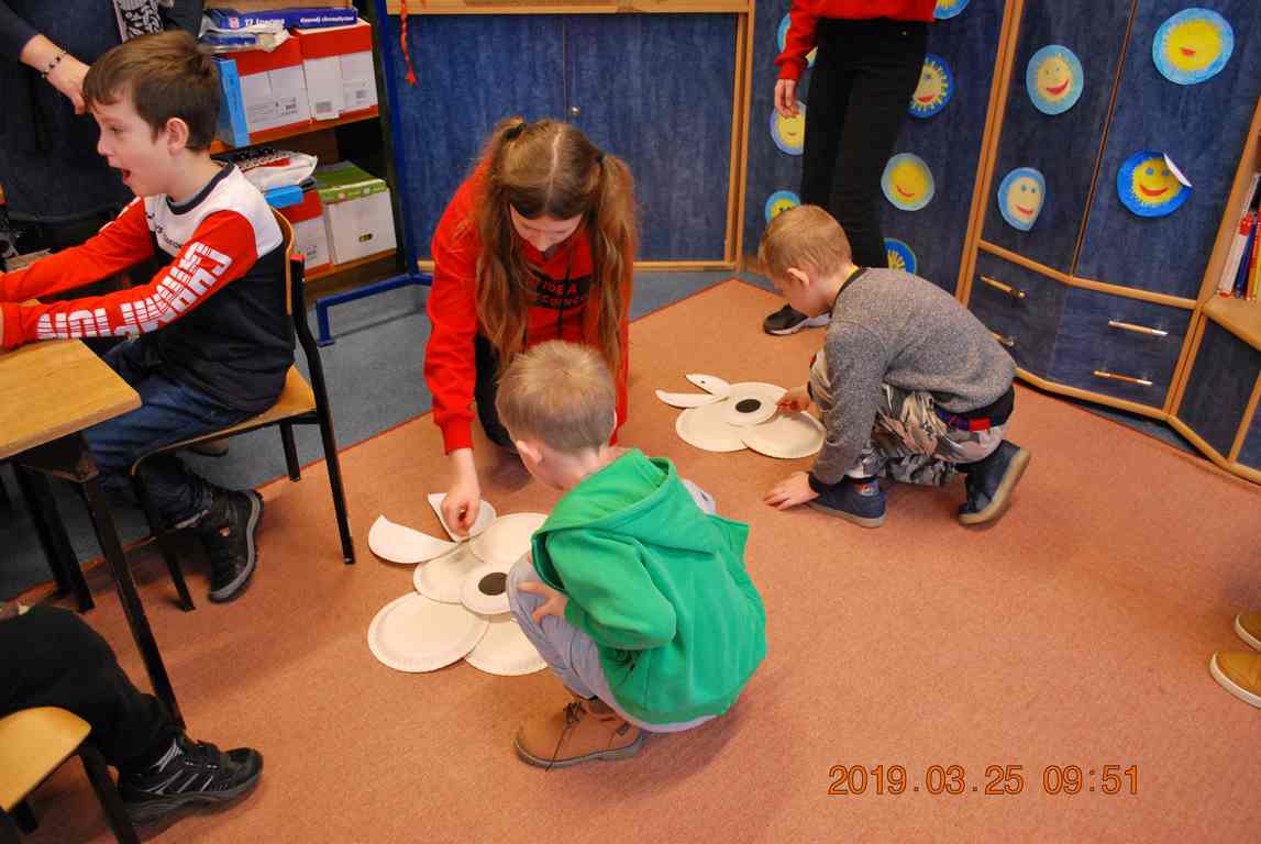Na koniec dzieci ułożyły z papierowych talerzyków dwa Smoki Jeziorakowe, a spotkania zostały utrwalone na pamiątkowych zdjęciach.