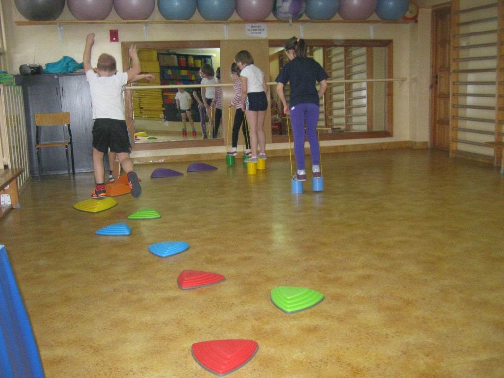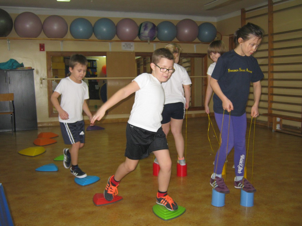 W naszej szkole prowadzone są zajęcia gimnastyki korekcyjnej. Uczestniczą w nich uczniowie klas I, którzy są kwalifikowani przez lekarza rodzinnego podczas badania okresowego – bilansu sześciolatka.