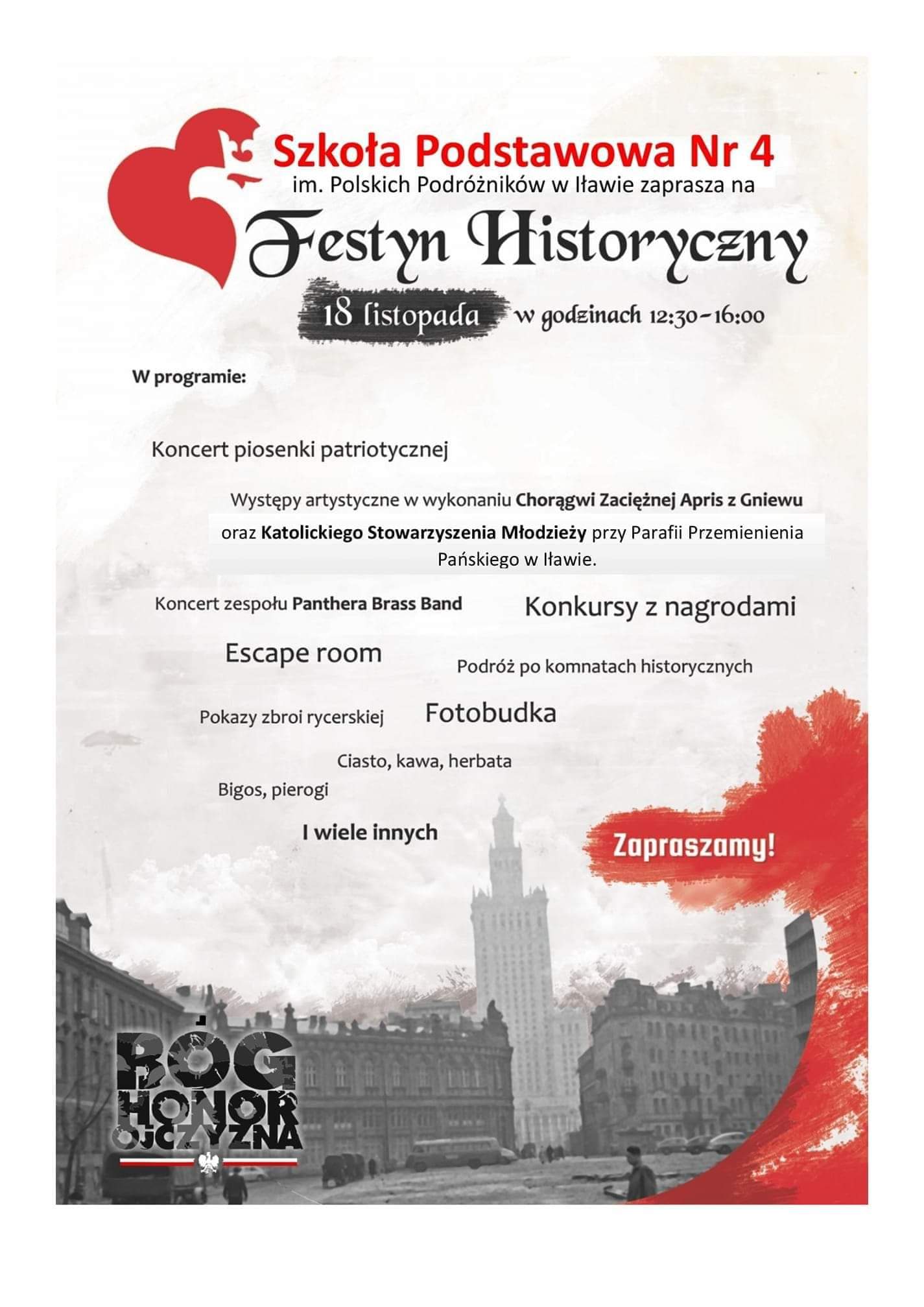Z okazji obchodów stulecia odzyskania niepodległości przez Polskę nauczyciel historii opracował i wykonał szatę graficzną czterech tablic pt.: