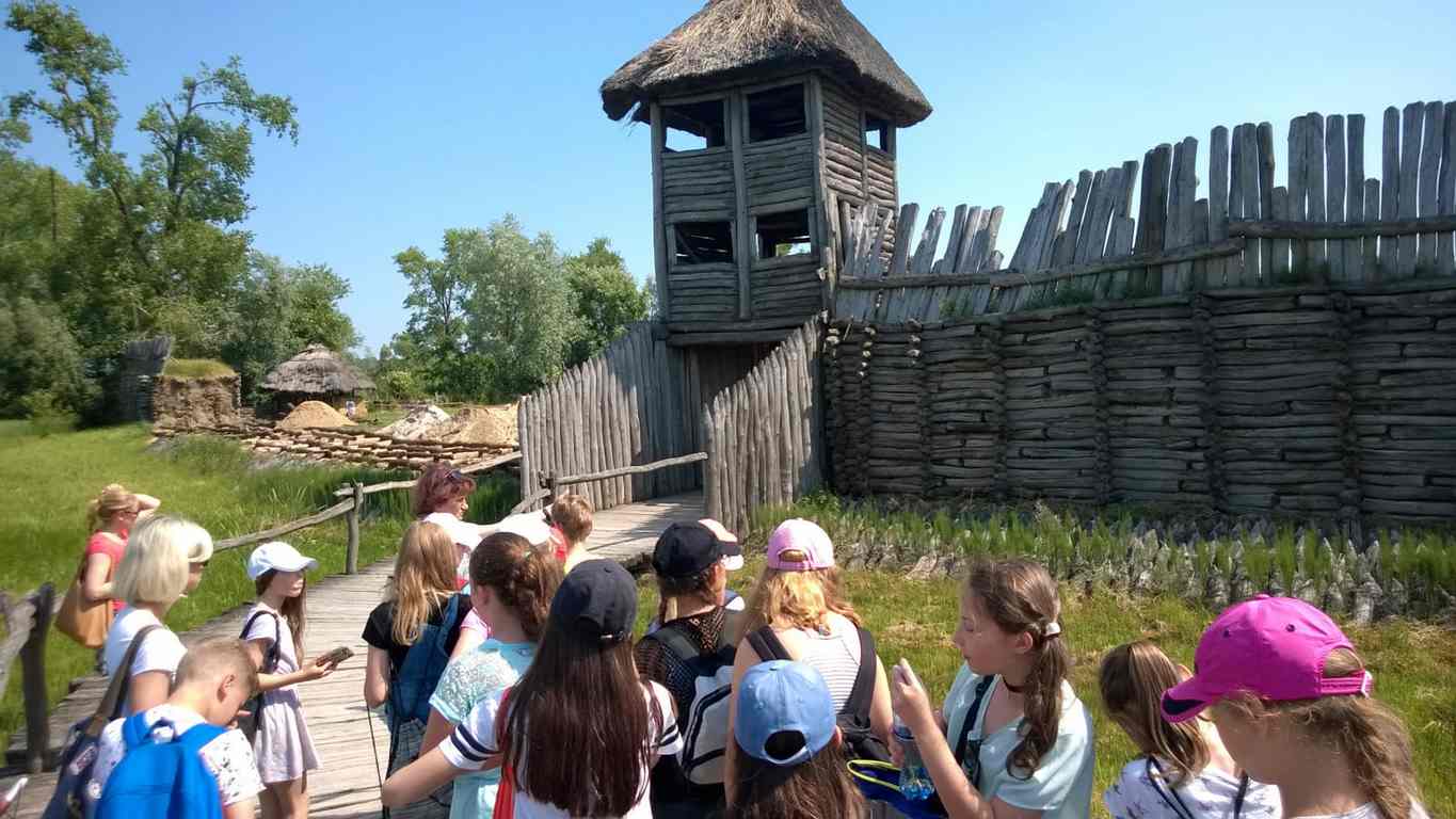 Z okazji obchodów stulecia odzyskania niepodległości przez Polskę 30.05.2018r. uczniowie klas Vb i Vc przenieśli się w czasie o ponad 1000 lat. Wędrówkę śladami legendarnych i historycznych twórców państwa polskiego rozpoczęli od przejazdu pociągiem z Muzeum Kolei Wąskotorowej w Wenecji do Biskupina. Tam zwiedzili Muzeum Archeologiczne i pradawną osadę słowiańską.