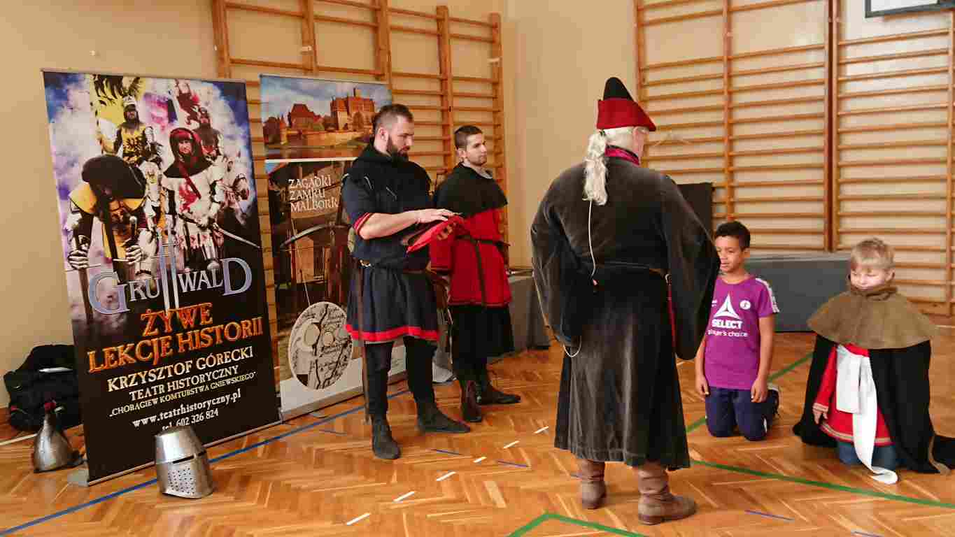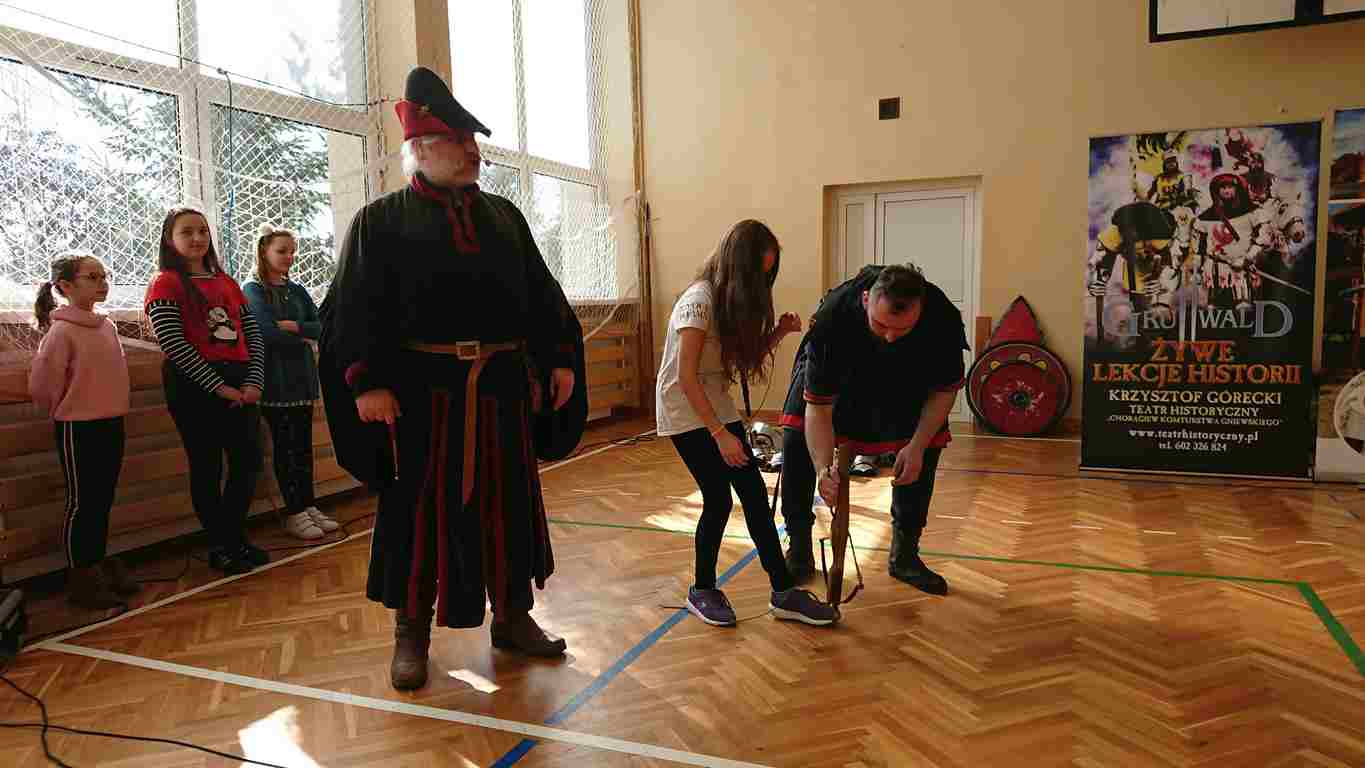 12.03.2019 r. odwiedzili nas panowie aktorzy Teatru historycznego – Chorągwi Komturstwa Gniewskiego. W zajęciach uczestniczyli uczniowie klas IV-VI. Lekcje oprócz treści merytorycznych zawierały także cele wychowawcze.