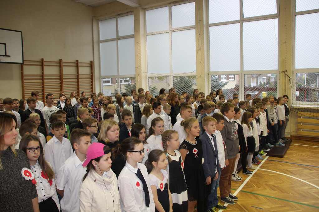 Uczniowie klasy 5a przy akompaniamencie zespołu wokalno – instrumentalnego przenieśli szkolną społeczność do czasów, gdy o wolność dla następnych pokoleń walczyli pełni oddania bohaterscy Polacy. Młodzi aktorzy oddali hołd tym, którzy polegli w boju lub podejmowali inne działania narodowowyzwoleńcze. Uświadomili także zebranym, że to w ich rękach złożony jest los naszego kraju i że każdy z nas ponosi za niego odpowiedzialność.